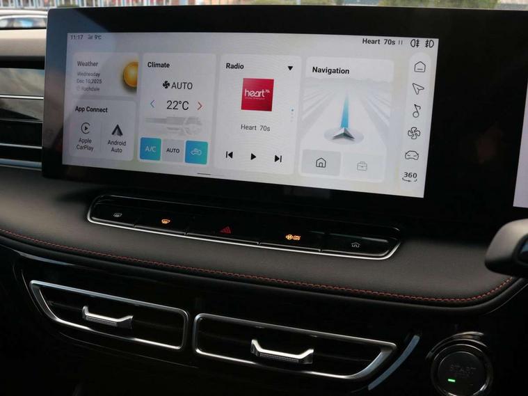 Driver attention alert, 12.3" colour touchscreen, 12.3" Virtual driver information display, 360 degree parking camera, Android Auto, Apple CarPlay, Blind spot detection, Bluetooth connectivity, Cruise control, Driver memory function, Emergency call service, Forward collision warning, Front parking sensors, iSmart, Lane change assist, Lane keep assist system (LAS) with Lane departure warning system (LDWS), Live services, PAS, Power tailgate, Rear cross traffic alert, Rear parking sensors, Satellite navigation system, Speed limit assist, Trip computer, Wireless charging, 4 USB ports 2 front and 2 rear, 8 Speaker audio system, DAB audio, Auto dimming rear view mirror, Automatic headlights, Electric adjustable/heated/folding door mirrors with memory, Follow me home headlights, Front and rear aero wiper, Front and rear electric windows with one-touch up/down, Front fog lights, Intelligent high beam, LED 3rd brake light, LED daytime running lights, LED Headlights, LED rear lights, Rain sensing wipers, Rear privacy glass, Rear side wing doors, Silver roof rails, Vehicle to Load, 12V power sockets, 2nd row 60/40 split fold seat, 3 rear headrests, 3 seat bench in 2nd row, 3 stage heated front seats, 4 way electric adjustable passenger seat, 6 way electric adjustable drivers seat + lumbar support, Dual zone automatic air conditioning, Front and rear reading lights, Front centre sliding armrest with storage compartment, Front headrests, Height and reach adjustable steering wheel, ISOFIX restraints on outer rear seats x2, Multi function steering wheel, Single passenger seat, 3x3 point rear seatbelts, ABS/EBD, Active emergency braking with pedestrian/Bicycle detection, Anti rolling protection, Door open warning, Drivers seatbelt reminder, Dual front airbags, Electric parking brake with auto hold function, ESP, Front and rear passenger seat belt reminder, Front centre airbag, Front passenger airbag deactivation switch, Front seat belt height adjuster, Front seatbelts (3-point + pretensioner + load limiter), Front side airbags, Hill descent control, Hill launch assist, Manual rear child locks, Rear outer seatbelt pretensioner and load limiter, Side curtain airbags, Tyre pressure monitoring system, Alarm system and engine immobiliser, Keyless entry and push button start system, Remote central locking, Speed sensing door locks, 19" Blade diamond cut alloy wheels, Tyre repair kit,