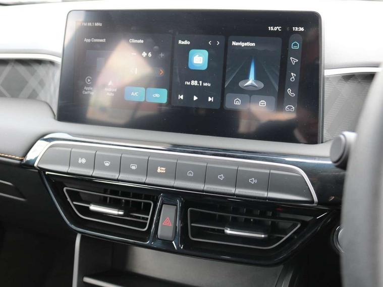 10.25" Colour touchscreen, 3 driving modes Normal, Eco, Sport, 3 Energy regeneration modes (1, 2, 3), 360 degree camera with rear sensor, 7" Driver display, Adaptive cruise control, Android Auto, Apple car play, Blind zone detection with lane change assist, Bluetooth connection, Driver attention alert system, E-call, Forward collision warning, Intelligent speed limit assist, Lane keep assist system (LAS) with Lane departure warning system (LDWS), PAS, Rear cross traffic alert, Reverse parking sensors, Satellite navigation with speed limit recognition, Traffic jam assist, Trip computer, 6 speaker audio system, DAB audio, iSmart phone connectivity, Radio, MP3 and AUX/USB, USB ports (2x front, 1x rear), Auto dimming rear view mirror, Automatic headlamps, Body colour bumpers, Body coloured door handles, Body coloured electrically adjustable heated door mirrors, Follow me home headlights, Front and rear electric windows with driver's one-touch up/down, Intelligent headlamp control, LED centre brake light, LED daytime running lights, LED projector headlights, Rain sensor wiper, Rear privacy glass, Rear side wing doors, Rear window defogger, Rear wiper, 12V socket, 3 seat bench in 2nd row, Automatic air conditioning, Boot space lamp, Driver 6-way adjustable seat, Front centre armrest with storage, Front cup holders, Front headrests, Front interior courtesy light with time delay and reading lights, Front passenger seat map pocket, Front sun visors with driver and passenger mirrors, Heated front seats, Heated steering wheel, Leather style multifunction steering wheel, Leather style with cloth inserts upholstery, One piece folding rear seat, Passenger 4-way adjustable seat, Reach and rake 4 way adjust steering column, Single front passenger seat, 2 x adjustable rear head rests, 3x3 point rear seatbelts, ABS/EBD, Active emergency braking with pedestrian/Bicycle detection, Drivers seatbelt reminder, Dual front airbags, EBA, Electric parking brake with autohold, ESP, Front and rear passenger seat belt reminder, Front passenger airbag deactivation switch, Front seatbelts (3-point + pretensioner + load limiter), Front side airbags, Hill start assist, Rear child locks, Rear isofix x2, Side curtain airbags, Tyre pressure monitoring system, Alarm & Engine Immobiliser, Keyless entry, Remote Central Locking with Fold-away Key, 16" Atlas alloy wheel, Tyre repair kit,