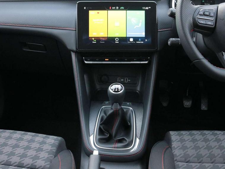 'Lights On' Reminder warning buzzer, 10.1" colour touchscreen, Android Auto, Apple CarPlay, Bluetooth connectivity, Cruise control with speed limiter, eCall emergency call system, PAS, Rear parking sensors, Trip computer, USB mobile phone charging function, 4 speaker audio system, DAB audio, Radio/MP3 player, USB/aux input socket, Auto headlights, Body colour bumpers, Body colour door handles, Body colour electric adjustable folding heated door mirrors, Chrome side window trim, Follow me home headlights, Front and rear aero wiper, Front and rear electric windows with driver's one-touch up/down, LED Bi-Function headlights, LED centre brake light, LED daytime running lights, Rear side wing doors, Rear spoiler, Rear wiper, Silver roof rails, 12V power sockets, 2nd row 60/40 split/fold, 3 rear headrests, 3 seat bench in 2nd row, 4 way manually adjustable passenger seat, 6-way manually adjustable driver's seat, Adjustable dual height boot floor, Air conditioning, Boot light, Driver's footrest, Front cupholders x 2, Front grab handles, Front headrests, Front reading lights, Front seat back map pockets, Glovebox, Houndstooth fabric upholstery, Illuminated switches and controls, Internal chrome door handles, ISOFIX restraints on outer rear seats x2, Leather steering wheel, Rake/reach adjustable steering wheel, Rear grab handle, Single front passenger seat, 3x3 point rear seatbelts, ABS/EBD, Anti rolling protection, Automatic unlocking of doors in case of impact, Dual front airbags, EBA, ESP, Front passenger airbag deactivation switch, Front seatbelts (3-point + pretensioner + load limiter), Front side airbags, Fuel cut off safety device, Hill launch assist, Rear door child safety locks, Rear passenger seatbelt alert, Seatbelt reminder for driver and front passenger, Side curtain airbags, Tyre pressure monitoring system, Alarm system and engine immobiliser, Automatic latching door, Remote central locking, Second remote key, Speed sensing door locks, Superlocking, 17" Typhoon diamond cut alloy wheels, Tyre repair kit,