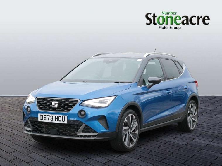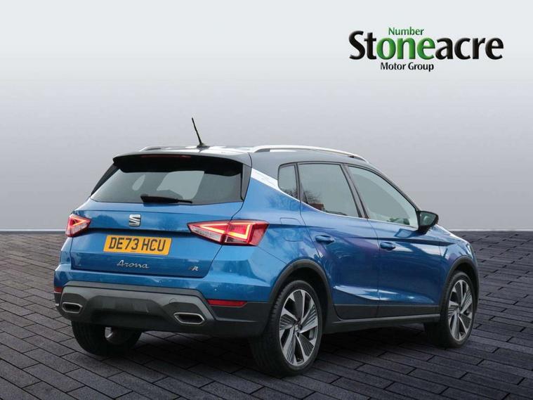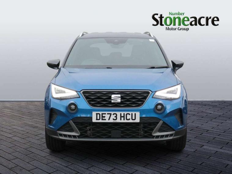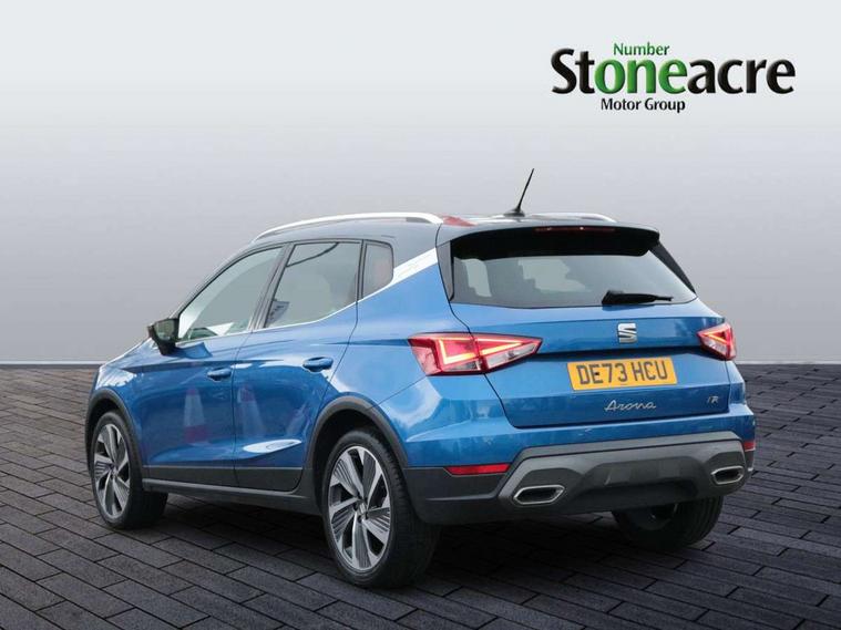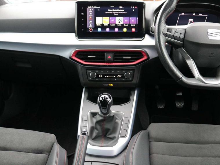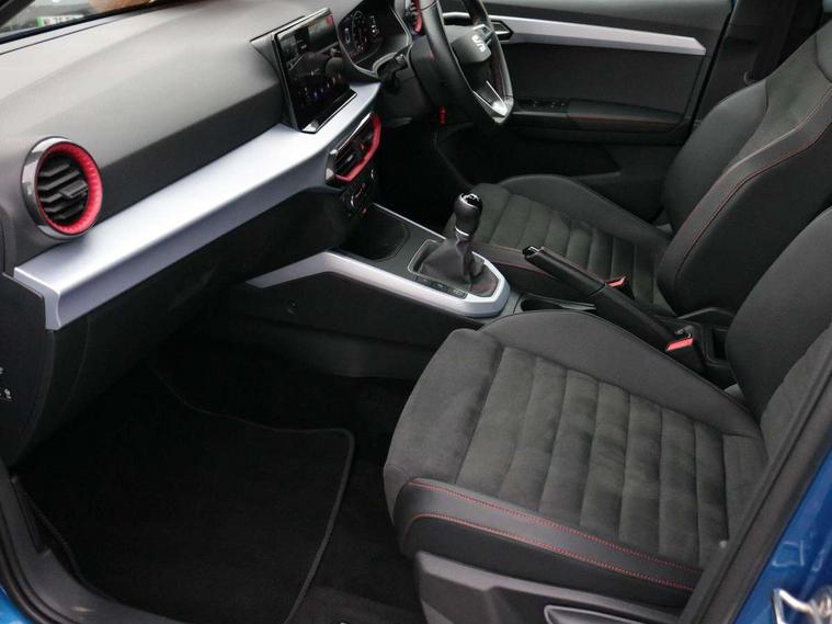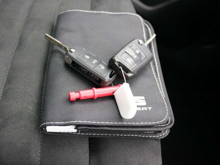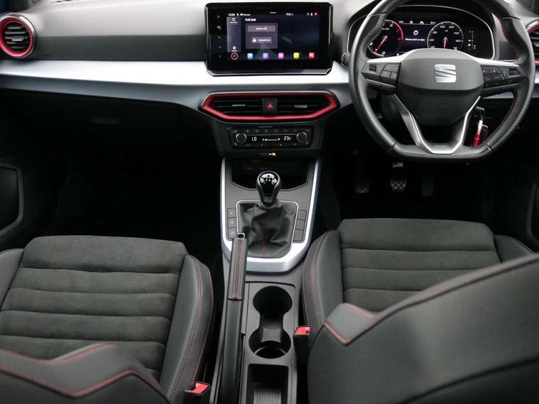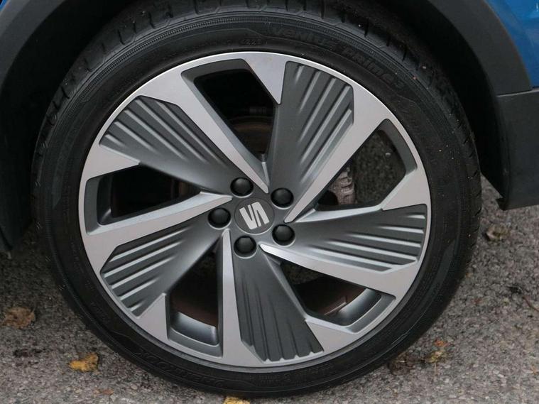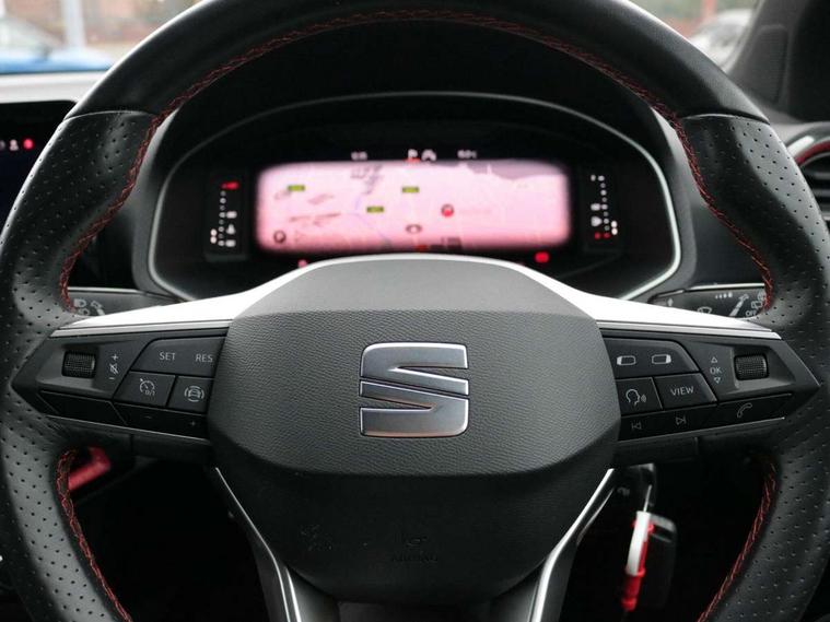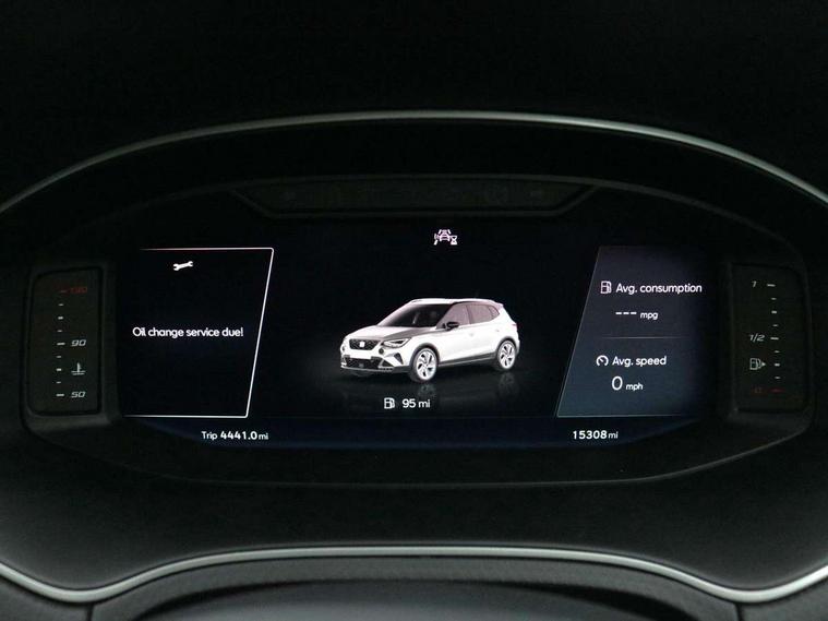 'Lights On' Reminder warning buzzer, 10" Digital cockpit, Digital clock, E-call, Electric speed sensitive power steering, Full Link Smartphone Integration with Mirror Link, Apple Car Play, Google Android Auto with USB Type C cable for Apple and Android compatibility, Low fuel warning light, Outside temperature display, Rear parking sensor, RPM counter, Seat connect with safety, service, remote and online, SEAT Drive profile - Four different models normal-sport-eco-individual, steering response, throttle response, Trip computer, Wireless phone charger, 9.2" colour touchscreen with navigation system, voice control and USB port (type c), Bluetooth interface for hands free and audio streaming, DAB digital radio and AM/FM radio, Steering wheel mounted audio controls, Anti theft roof antenna, Auto dimming interior rear view mirror, Automatic activation of hazard warning lights, Body coloured bumpers, Body coloured door handle inserts, Chrome roof rails and window surrounds, Dark tinted rear windows, Electric front/rear windows, Electrically adjustable, heated and folding door mirrors, Front fog lights with cornering function and rear fog light, FULL LED automatic headlights with dynamic headlight range control, coming and leaving home, LED daytime running lights, LED rear tail lights and licence plate lights, Protective side mouldings, Rain sensing wipers, Rear side wing doors, Rear spoiler, Rear window wash/wipe, Roof colour door mirrors, Third brake light, Twin exhaust pipe styling hidden exhaust pipe, Visible VIN plate, Windshield wiper with intermittent control and potentiometer, 2 cupholders, 3 seat bench in 2nd row, 60/40 split folding rear seat, Aircare filter, Black interior roof, Double boot floor, Driver sunvisor with covered mirror + card holder, Dual zone climate control, Front comfort seats, Front courtesy light with front reading lights, Front seat back storage pockets, Gear shift indicator, Heated front seats, Height adjustable front seats, Height/reach adjustable steering column, Illuminated boot, Instrument lighting with brightness control, Interior ambient lighting, Interior light in footwell, central console and door panel, ISOFIX points in outer rear seats with top tether anchorage points, Microsuede cloth upholstery, Passenger sunvisor with vanity mirror, Perforated flat bottomed leather steering wheel/gear knob/handbrake with red stitching and FR logo, Single front passenger seat, Two front and three rear height adjustable headrests, Interior chrome pack - Arona, 3 point seatbelts on all rear seats, ABS, Active front headrests, Child locks on rear doors, Driver and front passenger airbags with front passenger airbag de activation, front side and curtain airbags, Electronic stability control, Emergency Brake Assist (EBA) and front assist, Front and rear seatbelt reminder, Hill hold control, Multi-Collision braking, Tiredness recognition system, Traction control, Tyre pressure monitoring system, Alarm with back-up horn, Electronic engine immobiliser, Locking wheel bolts, Remote central locking + deadlocks, Tow away protection, Titan black dashboard, 18" Performance Cosmo grey matt alloy wheels,