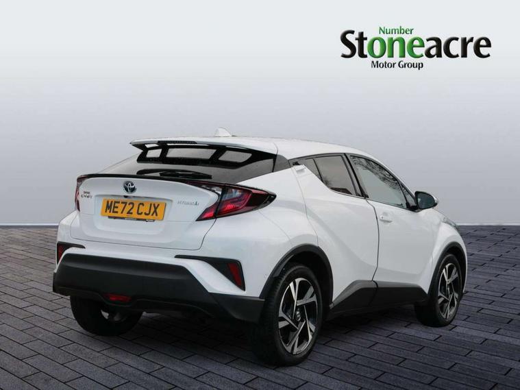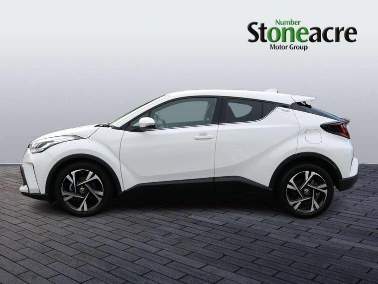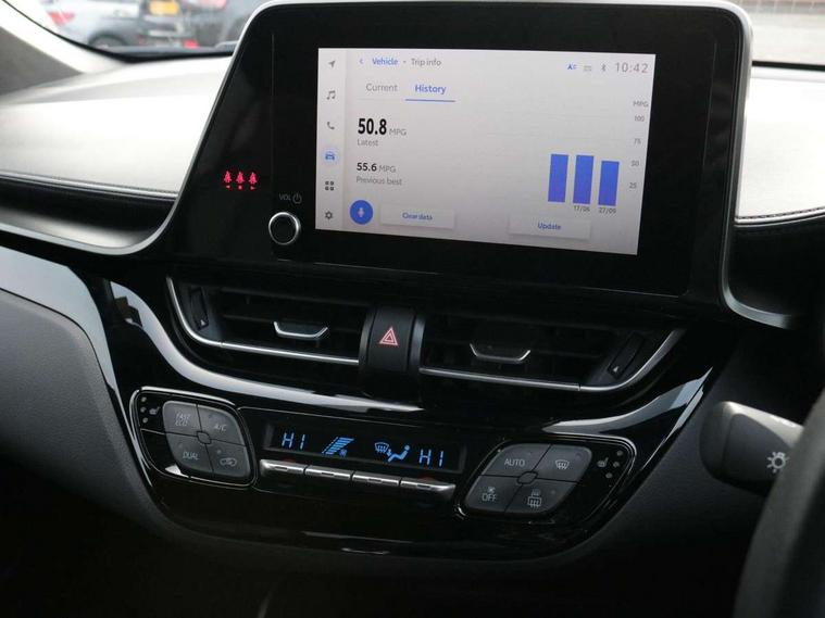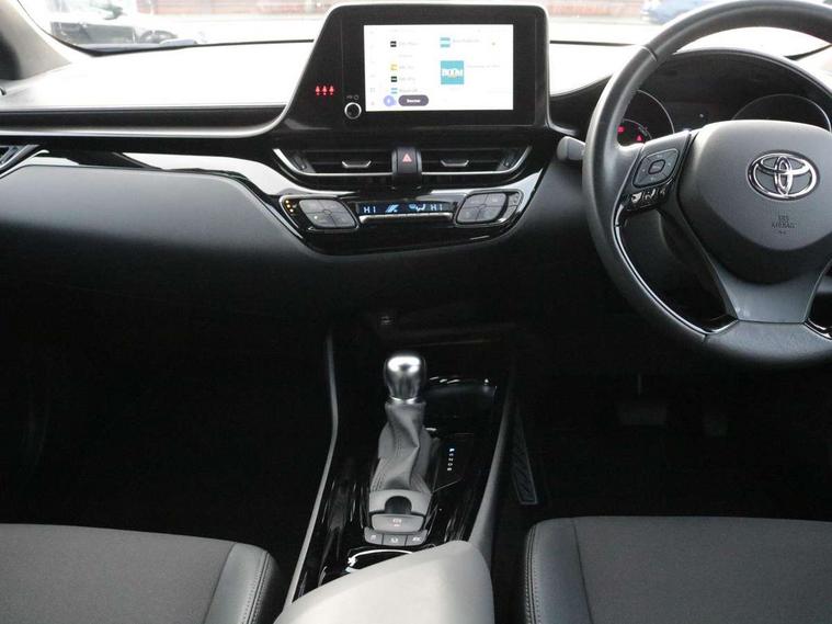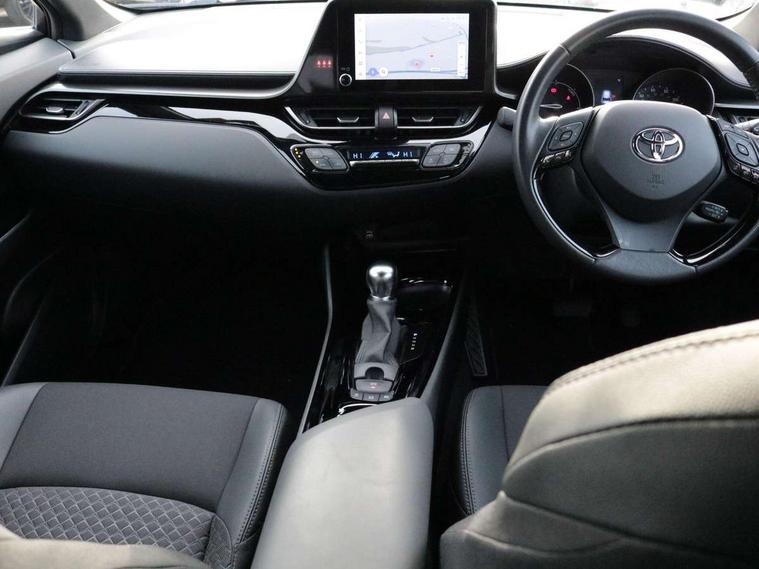 4.2" coloured TFT screen for multi-information display, Adaptive cruise control, Apple car play and Android auto, Blind spot monitoring with rear cross traffic alert, Bluetooth connectivity, E-call, Electric power steering, Front parking sensors with ICS and auto braking, Hybrid system indicator, Lane departure alert with steering control, Lane trace assist, Push button tailgate release, Rear parking sensors with ICS, Remote boot door release in cabin, Remote boot door release in key, Reversing camera, Road sign assist - RSA, Simple Intelligent parking assist, Smart entry and push button start, Smart voice assist, Touch 2 Go navigation system, Trip computer, Voice recognition, Wireless smartphone integration, Vehicle Stability Control (VSC), 6 speakers, AM/FM radio, DAB Radio (Digital Audio Broadcasting), Toyota touch 2 multimedia system with 8" display, USB connector, Wi-fi connectivity, Anti-jam protection on power windows, Auto dimming rear view mirror, Auto high beam, Auto up and down function on all power windows, Automatic headlights, Automatic headlights cut-off, Automatically retractable door mirrors, Black and body coloured rear bumper, Black lower front grille, Black upper front grille, Body colour door handles, Body colour door mirrors, Body colour front spoiler lip, Body coloured front bumper, Boot door release with push button, Electric heated door mirrors, Follow me home headlights, Front and rear power windows, Front fog lights, Headlight cut off reminder, Honeycomb lower front grille, LED daytime running lights, LED High mounted stop light, LED rear brake lights, LED rear combination lights, Manual headlight levelling, Noise reduction layer on front windows and windscreen, Power adjustable door mirrors, Privacy glass, Rain sensor, Rear side wing doors, Rear spoiler, Rear tailgate, Rear window defogger, Rear window wiper, Reflective LED headlights, Shark fin antenna, UV-filter on driver and passenger windows, UV-filter on rear windows, Variable front intermittent wipers, 12v power outlet - front, 3 rear headrests, 3 seat bench in 2nd row, 3 spoke leather steering wheel, 60/40 split folding 2nd row rear seats, Adjustable rear headrests, Adjustable speed limiter switch on steering wheel, Assist grips front and centre pillar, Audio and telephone switches on steering wheel, Black front door assist grips, Blue ambient lighting on front cup holders, Blue ambient lighting on front doors, Boot light, Chrome interior door handles, Driver and front passenger personal light, Driver and front passenger Whiplash Injury Lessening seats, Driver and passenger seatback pockets, Dual zone automatic air conditioning, Floor mats, Front cupholders, Front head restraints, Front sports seats, Glovebox with internal light, Hard tonneau cover, Heated driver and front passenger seats, Hooks for luggage holding net, Humidifying Nanoe air purifier, Illuminated entry system, Isofix attachments on outer rear seats, Leather gearshift, Light on driver sun visor, Light on passenger sun visor, Manual telescopic steering wheel, Manual tilt steering wheel, Microphone on front personal light, Mirror on driver sun visor, Mirror on passenger sun visor, Multimedia switches on steering wheel, Pollen filter, Power adjustable lumbar support on driver seat, Shopping bag hooks, Single front passenger seat, Slow opening on lower glovebox, Voice recognition switch on steering wheel, Leather pack - C-HR, 16 Disk front wheel brake, 3x3 point rear seatbelts, ABS+EBD+Brake assist, Electronic parking brake, Front and rear seatbelt reminder, Front passenger airbag on/off switch, Hill start assist control (HAC), Pre collision system with pedestrian detection, Pre-tensioners and force limiters, Rear door child safety locks, SRS Airbags - Driver + Front passenger, front side, front and rear curtain and driver's knee airbags, Toyota safety sense, Tyre pressure monitoring system, Tyre pressure warning system, Acoustic vehicle alert system (AVAS), Glass-breaking alarm sensors, Immobiliser, Intrusion alarm, Intrusion sensor, Motion sensor alarm, Power door locks, Power passenger window lock, Remote central locking, Black lower dashboard, Black upper dashboard, Gunmetal deco line on upper dashboard, Piano black console, Tyre repair kit,