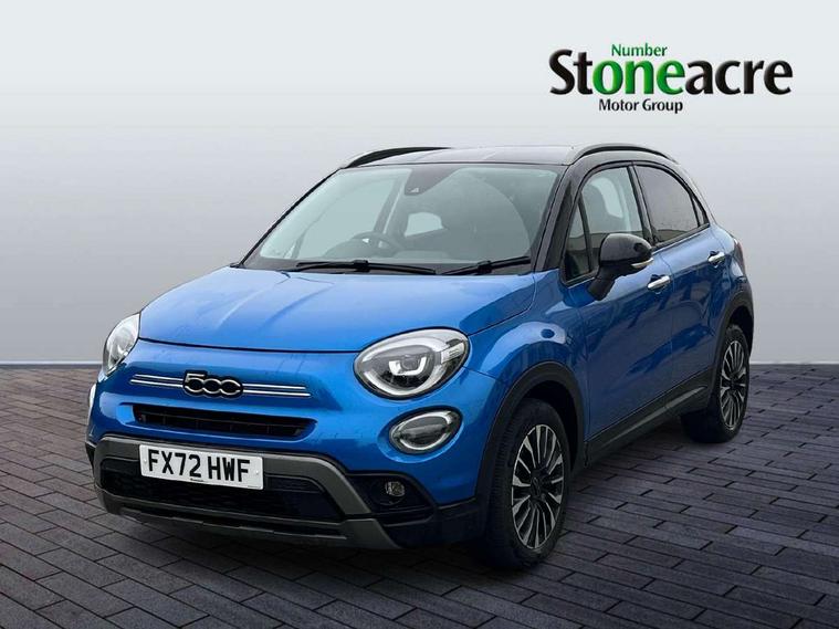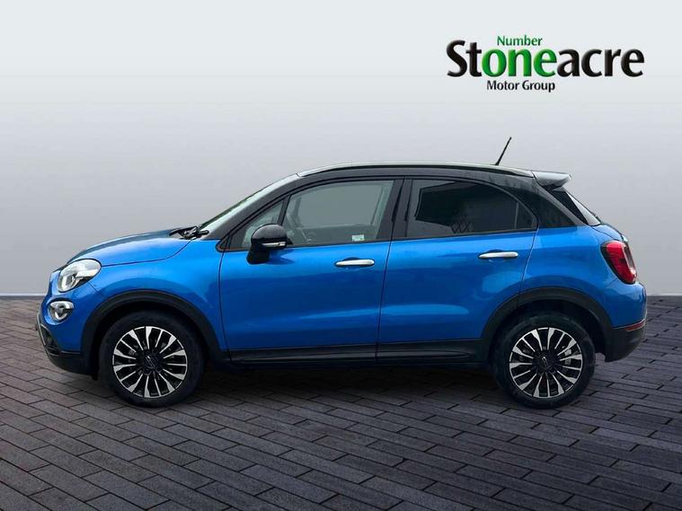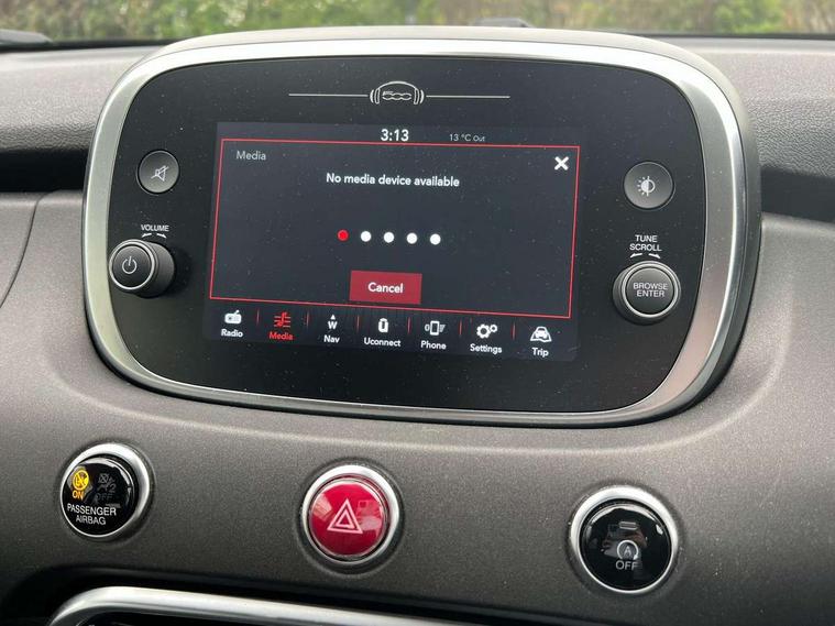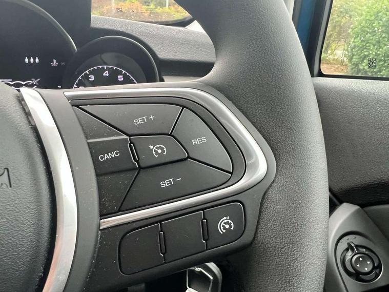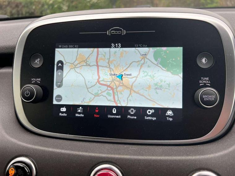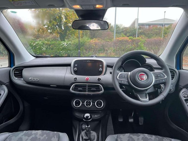 3.5" monochrome TFT display, 7" HD touchscreen DAB radio with bluetooth, 3D navigation, Aux-in and USB in central tunnel, Apple car play/Android Auto, Dusk sensor, E-call, Lane assist with intelligent speed assist and traffic sign recognition, Lane departure warning, Power assist steering, Rear parking sensor, Speed limiter, Stop/start system, Active roll mitigation, 6 speakers, USB port, 3rd brake light, All-road bumpers with protective inserts, Black electrically adjustable door mirrors, Black grained fog lights bezels, Dark tinted rear windows, Electric front and rear windows, Heated rear windows with wash wipe, LED tail lights, Privacy glass, Rain sensor, Rear side wing doors, Rear spoiler, Rear wiper, Satin chrome 500 logo, Satin chrome Fiat logo, Satin chrome front moustache, Satin chrome inserts tailgate, door handles, front moulding, Satin chrome skid plates, 3 seat bench in 2nd row, 60/40 split folding rear seat, Automatic dual zone climate control, Auxilliary 12V power socket, Cooled glovebox, Front head restraints, Height adjustable drivers seat, Height adjustable steering wheel, Parcel shelf, Satin Chrome door handles, Single front passenger seat, Soft touch steering wheel with controls, Sunvisors, Techno leather steering wheel with audio controls, Two rear head restraints, LED lights pack - 500X, 3x3 point rear seatbelts, 6 airbags - Front, side and window, Child locks on rear doors, Electronic parking brake, ESC including ASR, MSR, Hill Holder, ABS, EBD, ERM, DST, BAS, Front and rear seatbelt reminder, Height adjustable seatbelts, Passenger airbag deactivation system, Tyre pressure monitoring system, Deadlocks, Immobiliser, Remote central locking, Cold grey dashboard,