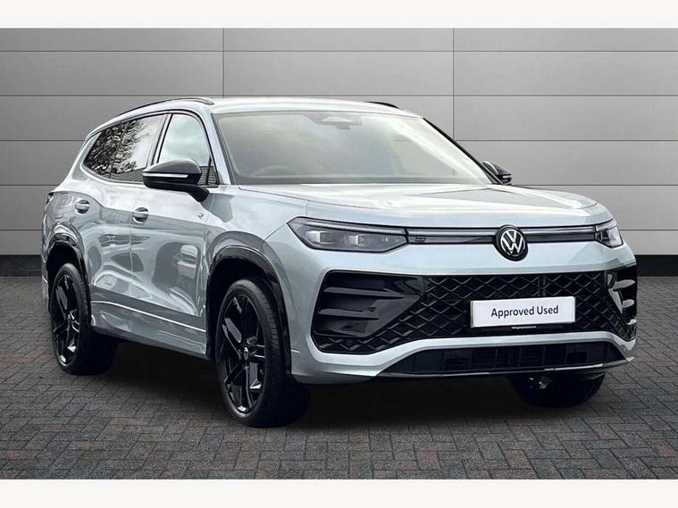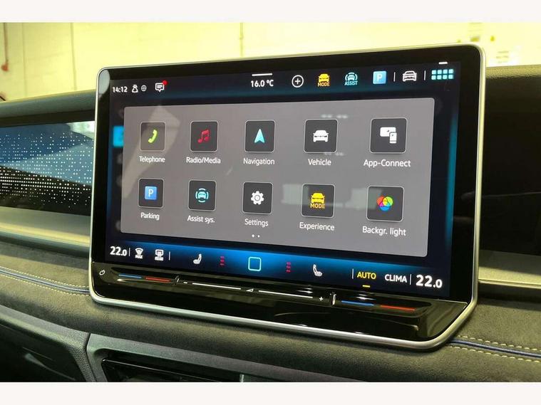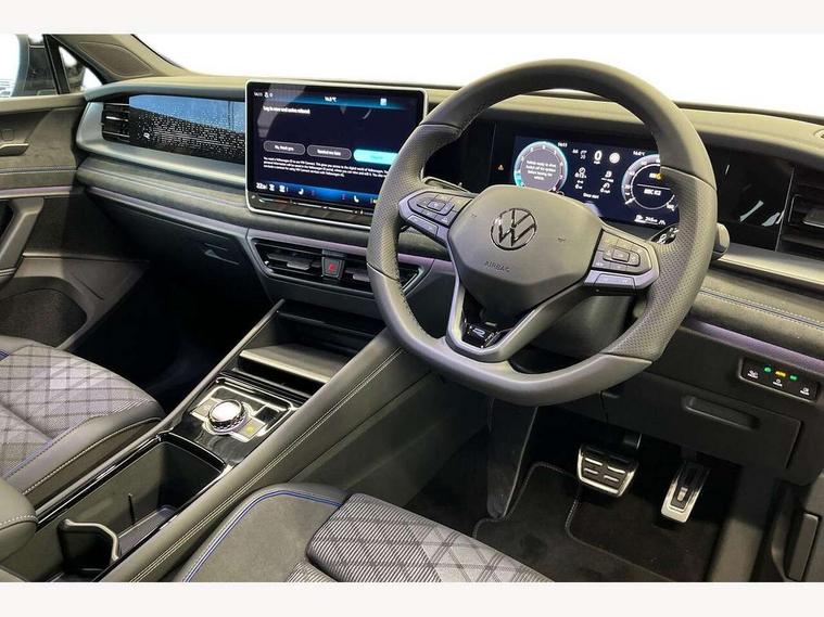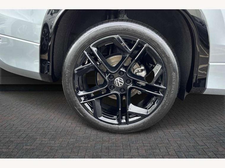 Adaptive cruise control (ACC), Digital Cockpit Pro - 10.25" high resolution dash display screen with customisable menus and information, Driver alert system, Driver attention monitoring system, Dynamic road sign display, E-Sim card for online connectivity, eCall emergency call system, Lane change system, Side assist, Rear traffic alert and Exit warning system, Multifunction front facing camera, Oncoming vehicle braking when turning including swerve support, Start/stop system with regenerative braking, Voice activation spoken voice commands for telephone and navigation system, Warning signal and warning light for front and rear seatbelts not fastened, Wireless App-Connect, Front wheel drive, Digital radio reception (DAB), Diversity antenna for FM reception, Air intake with Chrome trim, Auto dimming interior rear view mirror, Automatic headlight control system, Body colour door handles, Chrome moldings on the side windows, Coming/leaving home lighting function, Dynamic headlight range control with dynamic cornering light, Exterior mirrors convex on the left and aspherical on the right, Heat insulating glass in side and rear windows, Illuminated Volkswagen logo rear with animation, Laminated safety glass windshield, heat insulating, LED 3rd brake light, LED separate signature day time running light, Puddle lights, Rain sensor windscreen wipers, Rear fog light on one side, reversing light on both sides, Rear side wing doors, Rear wiper, Reverse activated passenger's door mirror, Surround lighting with welcome light, Volkswagen logo in front, illuminated lighting animation with wake up/goodbye scenario and illuminated door handles, 10 colour interior ambient lighting, 12V outlet in center console rear and in luggage compartment, 3 rear headrests, 3 rear seat bench in 2nd row, backrest split folding with centre armrest and 2 seats in 3rd row of seats, Black roof lining, Brushed stainless steel pedals, Carpet mats, front and rear, Centre console with illuminated storage compartment with sliding cover and two drinks holders, Chrome elements on the mirror switch and power window switches and door pulls, Door and side trim panel insert in Art velour, Flat luggage compartment floor, Front centre armrest, Front scuff plates in aluminium, ISOFIX anchors for child seats on outer rear seats and front passenger seat compatible with i-Size, Mechanical rear seat release, Power adjustable lumbar support in front, Single front passenger seat, Sports comfort seats in front, Sun visors with illuminated vanity mirrors, 3 Point seat belts in front with pretensioners, 3 point seatbelts in outer rear with ECE label, Autonomous emergency braking front assist with pedestrian and cyclist monitoring, Driver and front passenger airbag with front passenger airbag deactivation, Electronic parking brake with auto hold, First aid kit with warning triangle and safety vest, Front and rear curtain airbags, Front and rear side airbags, Front centre airbag, Front disc brakes, Hill start assist, Rear disc brakes, Two tone horn, Decorative material set R-Line, Interior door handle in matte chrome,