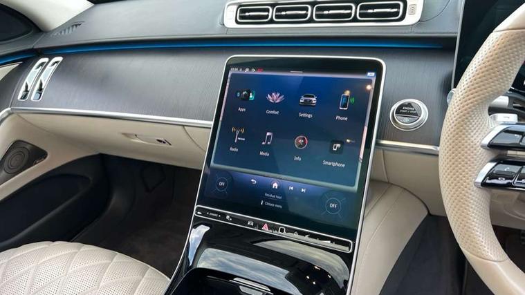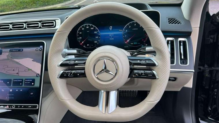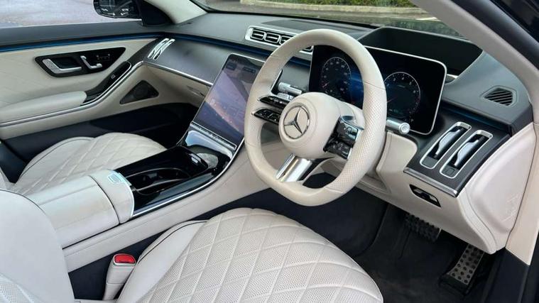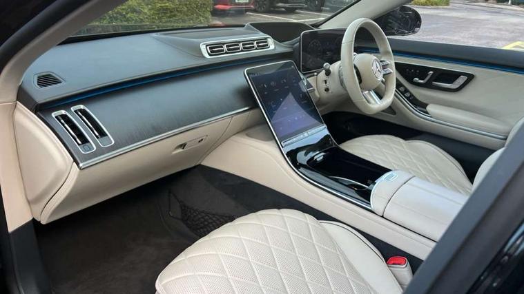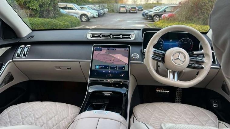 12.3" 3D driver display, 12.8" OLED central display, Attention assist, Bluetooth connection, Crosswind Assist, Direct steering, DYNAMIC SELECT with a choice of driving modes, ECO start/stop function, Fingerprint scanner, Hands-free access for boot lid, Hard disc navigation, Intelligent parking pilot, MBUX augmented reality for navigation, MBUX augmented reality head-up display, MBUX interior assist - front and rear, MBUX rear tablet, Mercedes-Benz emergency call, Power closing aid for doors and boot lid, Pre-installation for private car sharing, Rear belt status indication in the instrument display, Remote boot lid release and closing, Service indicator (ASSYST), Wireless charging system for mobile devices in the front, Wireless charging system for mobile devices in the rear, Wireless smartphone integration, 76 litre fuel tank, 9G TRONIC 9 speed automatic transmission, Airmatic air suspension, EQ Boost starter-alternator (48V mild hybrid technology), Petrol Particulate Filter, Burmester 3D surround sound system, DAB Digital radio, Front 2x USB type-C ports, Rear 2x USB type-C ports, Sound personalisation, 3rd brake light, Adaptive brake lights, AMG body styling with chrome elements, AMG front apron in A-wing design with large air intakes and fins in chrome plus front splitter in chrome, AMG rear apron with diffuser and trim element in chrome, Automatically dimming rear view mirror, Digital light - LED headlight, adaptive highbeam, cornering and active light, enhanced fog light, city, country road mode, weather and LED rear lamp, Electrically adjustable, heated and automatic dimming driver side exterior mirrors with kerb/parking function, Exterior mirror - Ambient lighting with projection of brand logo, Front and rear electric windows, Heat insulating, dark tinted noise insulating and infrared reflecting laminated glass, Heated windscreen, Illuminated door sill panels with Mercedes-Benz lettering, LED daytime running lights, Magic vision control, Panoramic sliding sunroof, Privacy glass, Radiator grille with chrome surround and three horizontal cross struts in chrome with inserts in high-gloss black, Rear boot, Rear side wing doors, Shoulderline trim strip in chrome, Side sill panels with chrome insert, Visible tailpipe trim elements in chrome, 12V socket in boot, 12V socket in rear centre console plus in the front passenger footwell, 3 seat bench in 2nd row, 3 twin spoke flattened bottom multifunction sports steering wheel in nappa leather with silver chrome shift paddles, 4 way lumbar support for driver and front passenger, Adaptive rear compartment lighting, AMG floor mats, AMG pedals in brushed stainless steel with rubber studs, Automatic child seat recognition sensor, Belt feeders in the rear, Centre console in black crystal look finish, Climatised front seats, Climatised rear seats, Double sun visors with pivoting section to cover the side window, EASY ADJUST luxury head restraints with additional cushion for driver and front passenger, foldable and removable on front passenger side, Easy entry system for driver, Electric rear window sunblinds, Electric sunblinds in rear doors, left and right, Electrically adjustable rear seats including memory function, Energizing Air Control - Air quality and fine particle sensor, Fabric roof liner, Front centre armrest, Front passenger side seat electrically adjustable from the rear, Nappa leather upholstery, Rear centre armrest with double cup holder and trim element, Rear head restraints, Single front passenger seat, Steering column gear selector, Steering wheel heating, Thermotronic automatic 4 zone climate control, Through loading system, Two bag hooks, Chauffeur pack - S Class, Driving assistance package - S Class, Memory pack - S Class, Parking package with 360 degree camera - S Class, USB pack plus - S Class, Warmth comfort package - S Class, Anti lock braking system (ABS) with brake assist, Beltbags in rear, Brake pad wear indicator front brakes, Centre airbag, Child locks on rear doors, Driver/Front Passenger airbags, Electric parking brake, Electronic stability programme with acceleration skid control, First aid kit, Forward facing rear airbags, Front and rear illuminated designer belt buckles, Front large compound brake discs 390x36mm internally ventilated and perforated, Front side airbags, Grey painted brake callipers with Mercedes-Benz lettering at the front, grey logo badge at the rear, i-Size and ISOFIX rear child restraint system, Pedestrian protection, Pre-safe system including pre-safe sound, Rear larger compound brake discs 360x26mm internally ventilated and perforated, Rear side airbags, Three 3 point rear seatbelts, Tyre pressure loss warning system, Window airbags, Dashcam, Increased anti-theft protection, KEYLESS-GO starting function with seamless door handles, Locking wheel nuts, Urban guard vehicle protection plus, Anthracite open-pore poplar wood, 21" AMG multispoke alloy wheels in himalaya grey with high-sheen finish, Noise reduced tyre with foam absorber, Summer tyres, Tyrefit tyre sealant kit,
