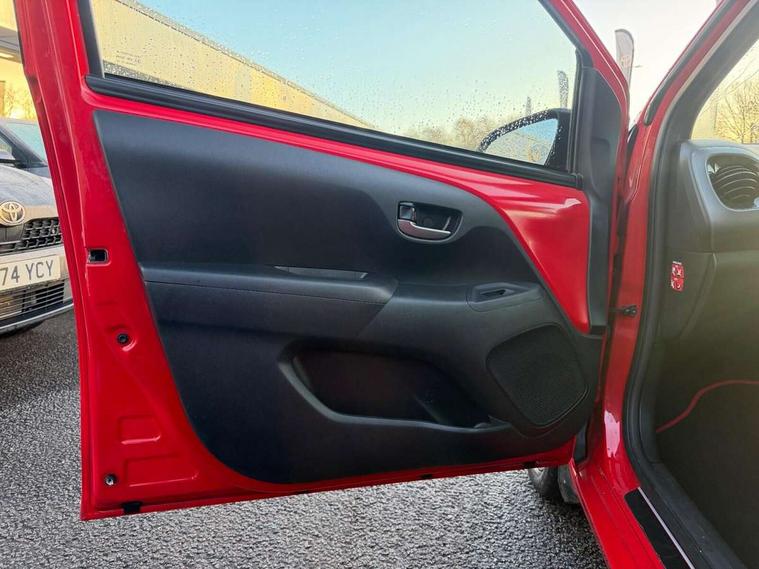 7" touch screen, Analogue tachometer, Bluetooth system, DCM - Data Communication modules, Digital clock, Electric power steering, Emergency call service, Fuel indicator with low level warning, Lane departure warning system, Lights on warning, Reversing camera, Smartphone integration powered by pioneer compatible with Apple CarPlay and Android Auto, Speed limiter, Start and stop, Vehicle Stability Control (VSC), 4 speakers, Auxiliary input socket, DAB Digital radio, iPod connection, MP3 connection, Multimedia System, USB connection, 2 speed wipers/variable intermittent/mist function, 3rd brake light, Auto headlight levelling, Automatic headlights, Body colour bumpers, Body colour door handles, Carbon rear diffuser, Decal kit - Front and rear bumper, side sills and matching mirror covers, Electric adjustable door mirrors, Electric front windows, Electric headlamp adjustment, Front fog lights, Green tinted glass, Heated door mirrors, Heated rear windscreen, LED daytime running lights, LED rear lights, Manually dimming rear view mirror, Projector halogen headlights with LED tracer line, Rear privacy glass, Rear side wing doors, Rear spoiler, Rear window demister, Rear wiper, Red roof decal, Roof mounted aerial, 12V Accessory socket, 2 individual rear seats, 3 spoke leather steering wheel with audio, telephone and LDA control, 50/50 split folding rear seat, Air recirculation system, Auto air conditioning, Black roof lining, Body colour instrument panel, Centre console storage, Chrome insert to gearknob, Chrome interior door handles, Clean air filter, Cloth upholstery, Driver and passenger sunvisors, Driver and passenger vanity mirrors with sunvisors, Driver's seat height adjuster, Driver/passenger seat recline/slide adjust, Front and rear door pockets, Front cupholder, Front map reading lights, Glovebox, Height adjustable front head restraints, Isofix system on outer rear seats, Leather gear shift, Manual tilt steering wheel, Passenger seat + manual slide/recline adjust, Pollen filter, Rear cupholders, Rear headrests, Single front passenger seat, Steering wheel mounted radio/phone controls, Storage bins on all doors, Storage pockets in centre console, Tonneau cover, ABS, Collision mitigation braking system, Emergency brake assist, ESP, Force limiting rear seatbelts, Front seatbelt reminder, Hill start assist, Passenger front airbag cut off switch, Rear child proof door locks, Rear seatbelt reminder, Seatbelts with pre-tensioners and load limiters, Supplement restraints system (SRS) - 6 airbags, Tyre pressure warning, Engine immobiliser, Lockable fuel cap, Remote central locking, Air vent surround in body colour, 15" 10 spoke black machined alloy wheels, Space saver spare wheel,