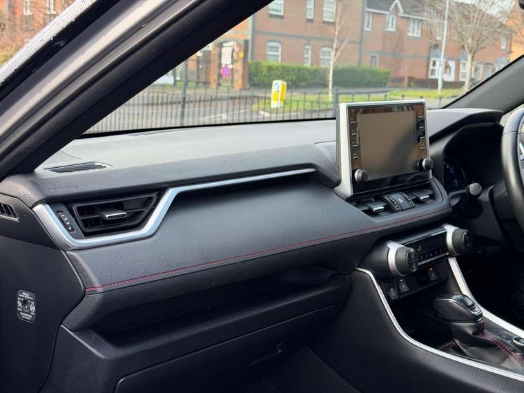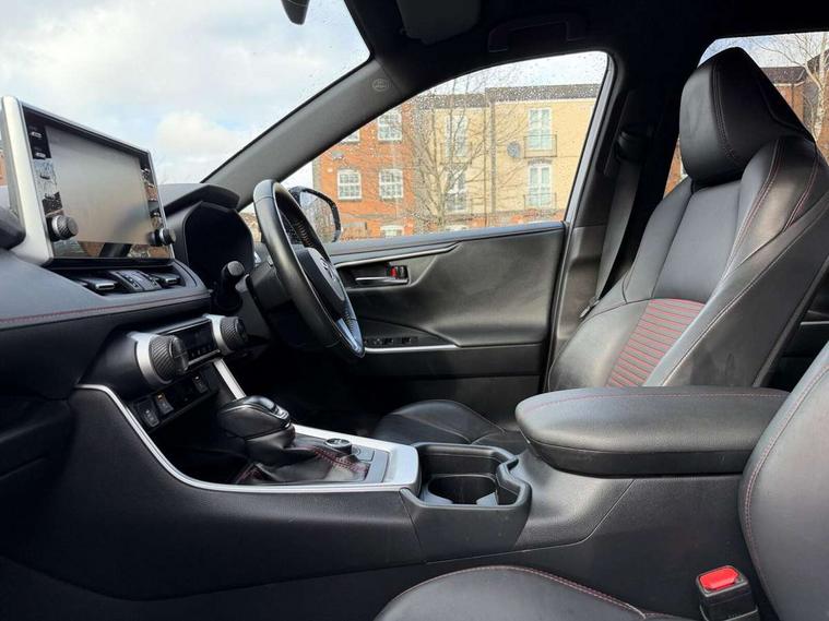 7" Coloured TFT multi informational display, Analog tachometer, Apple car play and Android auto, Blind spot monitoring with rear cross traffic alert, Bluetooth system, Cyclist Detection, Day and night time pedestrian detection, Digital speedometer, Drive mode selector, Driver attention alert system, eCall emergency call system, ECO-driving indicator, Electric power steering, EV audible alert, Front parking sensors, Hybrid system indicator, Intelligent adaptive cruise control, Lane departure alert with steering control, Lane trace assist, Lights on warning, Memory on adjustable speed limiter, My T Connected services, Power boot opening and closing, Push button start, Rear parking camera, Rear parking sensors, Remote boot door release in cabin, Remote boot door release in key, Road sign assist - RSA, Smartphone integration, Touch 2 Go navigation system, Traffic sign recognition, Trip computer, Voice control system, Wireless Mobile Phone Charger, 6.6 kw fast charger, 7.5m cable with home charging plug, Vehicle Stability Control (VSC), 2x USB sockets in front armrest, 2x USB sockets in rear, 6 speakers, 9" Multimedia display, Auxiliary socket for external MP3 player, DAB audio, Toyota touch 2 multimedia system, USB in front centre console, Anti-jam protection on power windows, Auto high beam, Auto up and down function on all power windows, Automatic headlamp levelling, Automatic headlights, Automatic wipers, Automatically retractable door mirrors, Bi-tone black roof, Black door mirrors, Black door moulding, Black front bumper, Black front grille, Black front under-run, Black rear bumper, Black rear spoiler, Black rear under-run, Black roof rails, Black Shark-fin antenna, Body colour door handles, Chrome window surround, Door mirror puddle lights, Dual exhaust pipes, Electric adjustable door mirrors, Emergency brake-light signal (EBS), Follow me home headlights, Framed electrochromatic rear view mirror, Front fog lights, Heated door mirrors, Honeycomb upper front grille, LED daytime running lights, LED dual beam projector headlights, LED front light guide, LED High mounted stop lamp, LED rear lights, Power front windows, Power rear windows, Privacy glass, Rear windscreen defogger, Rear wiper, Trailer sway control, Turning signal integrated indicators in door mirrors, 1.5L front and rear bottle holder, 12V socket in boot, 12V socket in front, 220v power socket in boot, 2x Rear coat hooks, 3 rear headrests, 60/40 split fold rear seat back with toyota easy flat system, Adjustable speed limiter switch on steering wheel, Array microphone, Black roof lining, Blue ambient lighting on front cupholders and open tray on passenger dashboard, Boot light, Clean air filter, Driver and front passenger personal light, Driver and front passenger Whiplash Injury Lessening seats, Driver and passenger seatback pockets, Driver and passenger sunvisors with illuminated vanity mirrors, Dual sided deck board in boot, Dynamic sports seats, Floor mats, Folding rear centre armrest, Front centre armrest, Front cupholders, Front footwell lights, Front headrests, Front/rear roof mounted assist grips, Heated driver and front passenger seats, Heated rear seats, Illuminated entry system, Isofix child seat preparation, Leather gearshift, Lockable glovebox, Manual telescopic and tilt 3-spoke nappa leather steering wheel, Manually reclining and sliding front passenger seat, Multimedia switches on steering wheel, Pollen filter, Power height-adjustable sliding reclining and lumbar support for driver seat, Rear console box, Rear door armrests with cupholder, Rear passenger air vents, Rear view display in display audio screen with dynamic guide lines, Reclining rear seats, Remote dual zone automatic air conditioning, Retractable tonneau cover, Satin chrome interior door handles, Silver gear shift surround on centre console, Sunglasses holder, Synthetic leather upholstery, Telephone and voice recognition switches on steering wheel, Under floor storage in luggage area, 3x3 point rear seatbelts, ABS/EBD, Acoustic vehicle alerting system, Adjustable front driver and passenger seat belt extender, Brake assist function, Brake hold function, Child proof door locks, Collision mitigation braking system, Driver/Front Passenger airbags, Driver/front passenger side airbags, Drivers knee airbag, Electronic parking brake, Electronic Stability Programme (ESP), Front and rear curtain airbags, Front and rear seatbelt reminder, Front passenger airbag detector, Hill start assist, Passenger airbag cut-off device, Pedestrian detection, Pre collision system, Seatbelt pretensioners with load limiters, Toyota safety sense, Traction control, Tyre pressure warning, Glass-breaking alarm sensors, Immobiliser, Intrusion alarm, Light - on and Key in reminder, Motion sensor alarm, Remote central locking, Smart entry + Smart start, Speed sensitive auto door locking, Tilt detection sensors, Black centre air vent surround, Black centre console, Soft-touch black upper dashboard with silver insert, Soft-touch texture on lower dashboard, 19" 5 spoke black machined face alloy wheels, Tyre repair kit,