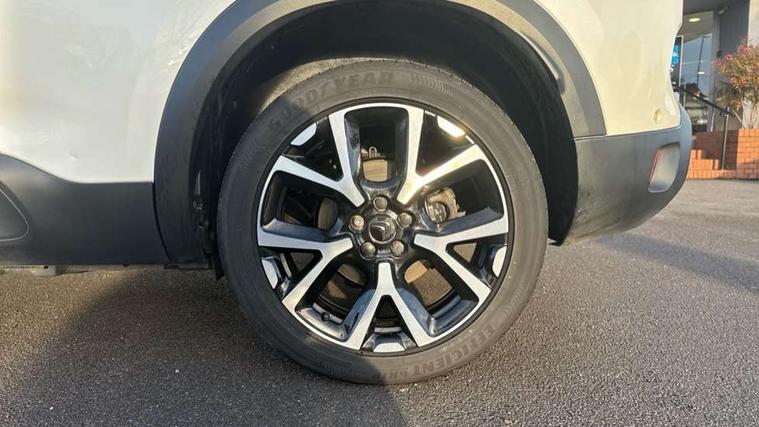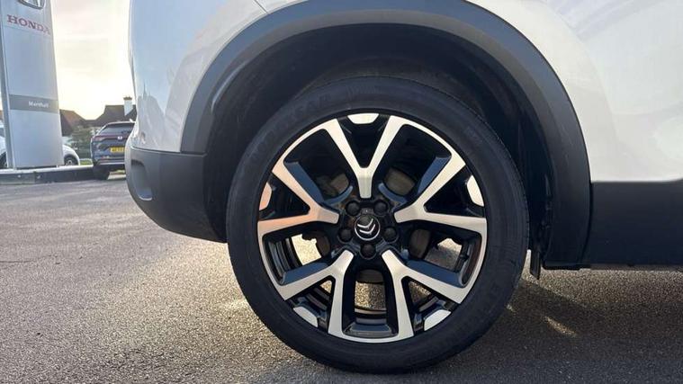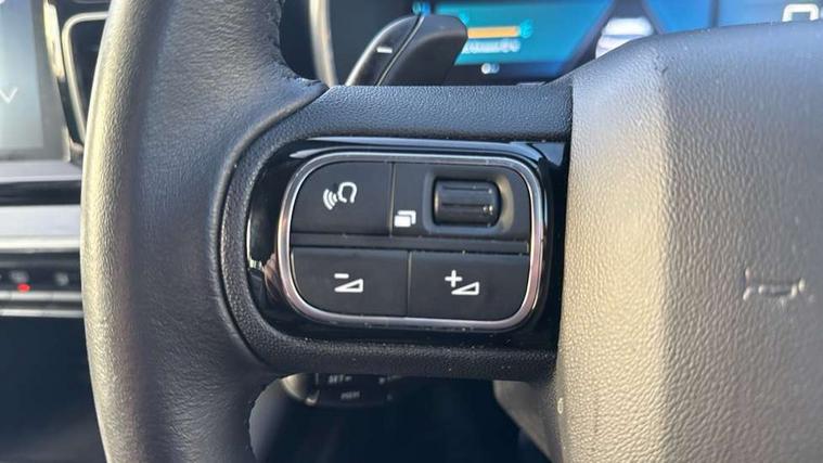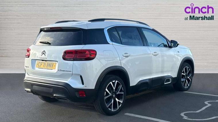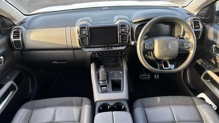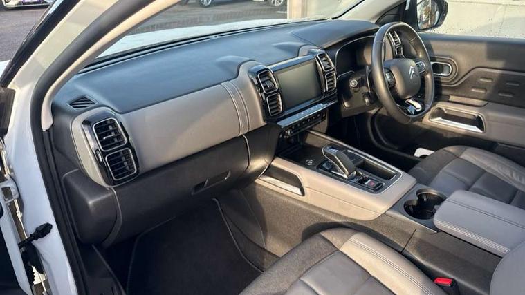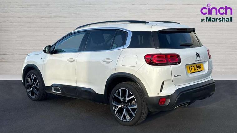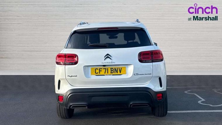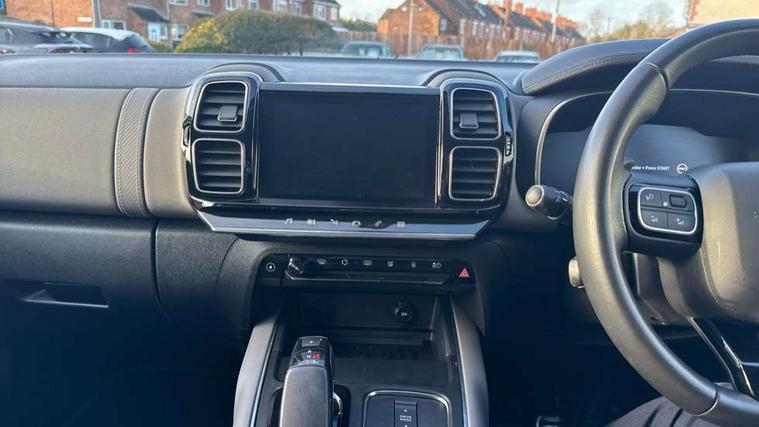 12.3" customisable TFT instrument display, Active cruise control with stop and go, Active lane departure warning system, Bluetooth telephone facility, Brake mode option on gear selector, Central 8" capacitive touch screen, Citroen connect box emergency assist system, Citroen connect Nav with connect box, Coffee Break Alert, Custom interface for instrument cluster and touchscreen, Driver attention alert system, Driving mode selector on central console, Eco+ mode, Electric power steering, Extended traffic sign recognition and recommendation, Exterior temperature indicator with ice warning, Highway driver assist, Mirror screen with Apple CarPlay and Android auto, Multi function trip computer, Programmable cabin pre-conditioning and deferred charging, Speed limit recognition and recommendation, Speed limiter, Top rear vision reversing camera, 7.4 kW onboard charger, Mode 3 charging cable with type 2 connectors, Multi link rear suspension with Progressive Hydraulic Cushions, 2 USB sockets, Auxiliary input socket, DAB (Digital Audio Broadcasting), AM/FM and MP3 compatible radio with two tweeters and four speakers, Voice recognition for radio, navigation and telephony features, 3D effect LED rear lights, Acoustic laminated windscreen with rain and brightness sensors, Acoustically insulated drivers and passengers side windows, Airbump panels with colour insert on lower portion of the doors, Automatic hazard light activation upon heavy brake application, Automatic triggered rear windscreen wiper in reverse gear, Black upper and lower grille, Body colour door handles, C5 Aircross monogram on boot rear, Chrome exhaust trim, Citroen logo and monogram on rear, Dark tinted rear windows and rear windscreen, Electric, heated and folding door mirrors with integrated LED indicator and kerb puddle light, Frameless auto dimming electrochrome rear view mirror with blue LED electric driving mode indicator, Front fog lights with cornering function, Front windscreen wiper with magic wash cleaning system, Gloss black finish on A and B pillar and aerodynamic trim, Guide me home headlight function, Halogen rear fog lights, Halogen rear number plate lights, Headlights left on audible warning, Heated rear windscreen with integrated antenna, High level LED centre brake light, HYBRID badging to front wings and tailgate, Intelligent high beam headlights (auto dipping main beams), LED daytime running lights, LED front indicators, LED Headlights, Longitudinal roof bars, Matt black rear bumper fascia, Matt black side sill, Matte black lower rear skirt, Matte black wheel arch extensions, One touch electric front/rear windows with pinch protection, Painted front bumper, Painted rear bumper, Roof coloured rear spoiler with stainless edging trim, Satin chrome C signature, Satin chrome window surround, Twin exhaust effect trim, 12V socket in boot, 12V socket in cabin, 2 Central illuminated cup holders, 2 way lumbar adjustment for driver, 2x Rear coat hooks, 3 Independent full size rear seats with adjustable recline angle, 3x Grab handles retractable with damping, Advanced comfort front and rear seats, Air recirculation when reverse gear is engaged, Aluminium pedals and foot rest, Anti odour and pollen filter, Central front armrest with butterfly wing opening and illuminated storage compartment, Dimmable white mood lighting, Dual zone automatic climate control, Fixing rings 4 in load compartment, Front + rear carpet mats, Front and rear LED welcome/LED rear reading lights, Front door pockets store up to 1.5L bottle and A4 note pad, Front seat back map pockets, Gear lever in satin chrome, Height and reach adjustable leather steering wheel with 2 control zones and satin chrom inserts, Hinged rear parcel shelf, Isofix child seat preparation for front passenger seat, Leather effect dashboard fascia, Leather effect interior door handles, Manual passenger seat adjustment (height, fore/aft and backrest angle), Multi function leather steering wheel with two command blocks, Open central storage compartment, Open storage area next to gear selector, Rear door pockets store up to 75mm bottle, Rear passenger air vents, Satin chrome digital instrument panel and touchscreen trim, Satin chrome interior door handles, Seatbelt unfastened on the move audible and visual alert for front and rear seats, Smooth opening flocked glove box with lighting, Stainless steel front Citroen embossed sill scuff plates, Storage compartment for charging cable under boot floor, Safety plus pack with blind spot monitor - C5 Aircross, Visibility pack - C5 Aircross, 2x Isofix child seat fitting on outer rear seats, 3x Rear three point retractable seatbelts with pretensioners and force limiters in the outer rear seats, ABS/EBD, Adaptive driver and front passenger airbags with passenger airbag deactivation function, Collision risk alert, Driver and front passenger side airbags, DSC (Dynamic Stability Control) and ASR (Electronic Anti-skid System), Electric child locking functionality on rear windows and doors, Electronic parking brake, ESP including traction control and stability programme, Front and rear curtain airbags, Front optimised safety headrests and 3 x rear retractable headrests with height adjustable, Front three point retractable seatbelts height adjustable with pre tensioners and force limiters, Front ventilated disc brakes and rear disc brakes, Hill start assist, Two tone horn, Tyre under inflation indicator, Alarm - perimetric and volumetric alarm with anti-lifting mechanism, Automatic door locking, Electronic code immobiliser, Keyless entry and start, Remote central locking + deadlocks, Gloss black touch screen surround with integrated tactile buttons and chrome finisher, Satin chrome air vent decors, Soft touch matte dashboard with grey insert, Compressor with puncture repair kit,