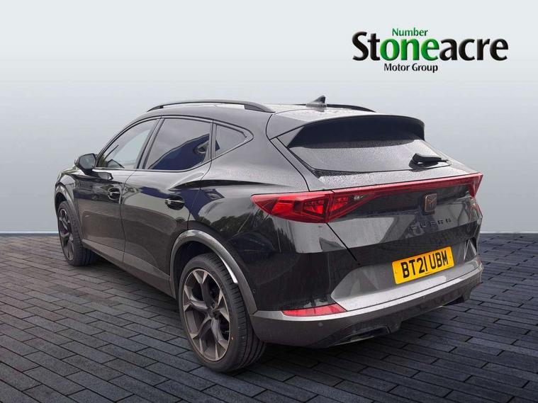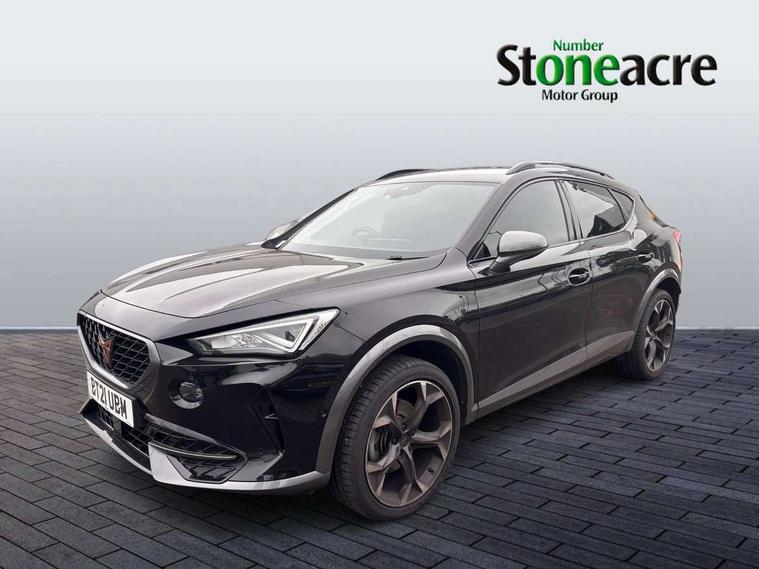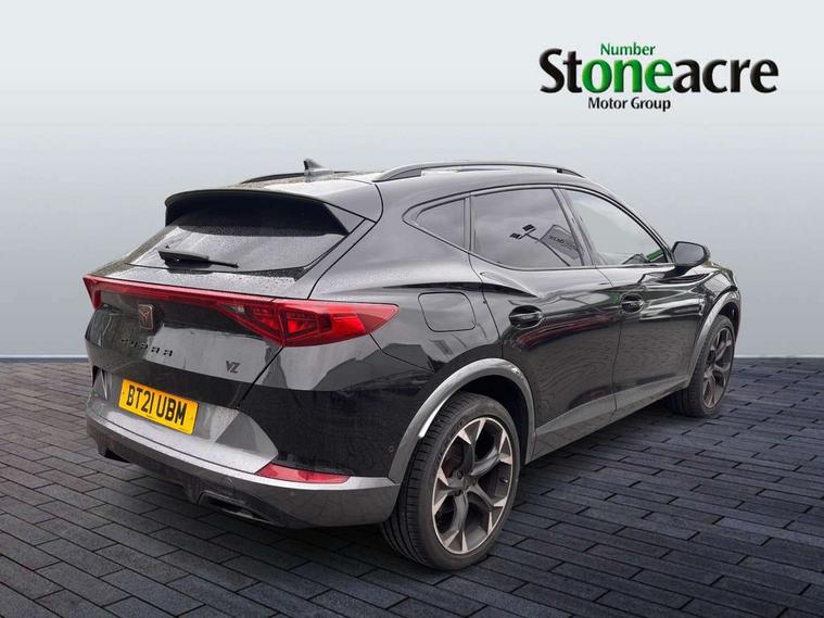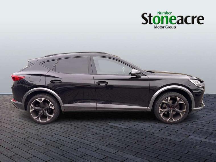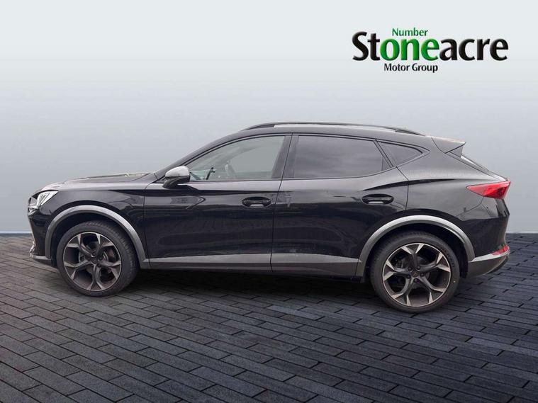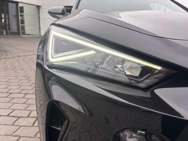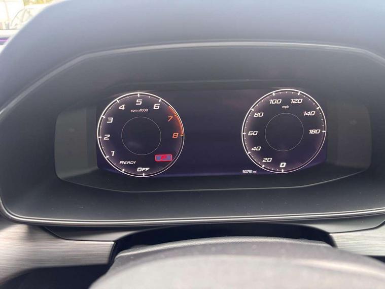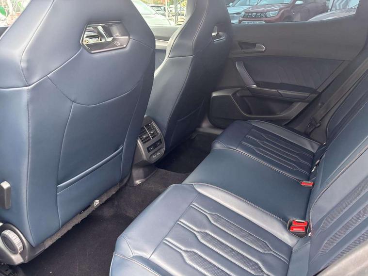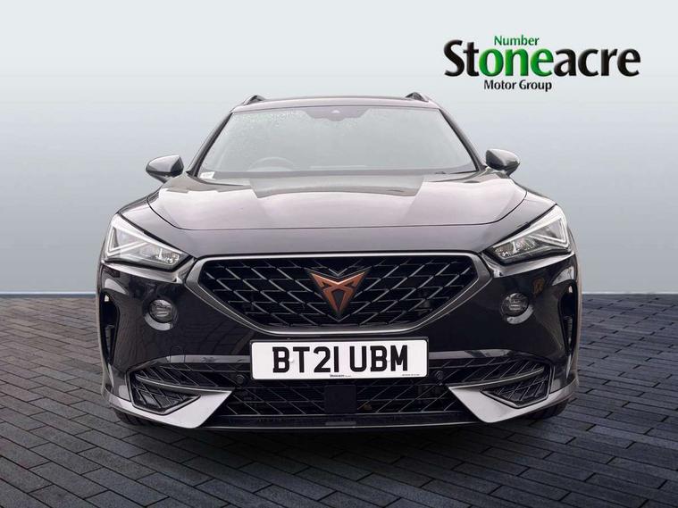 Digital cockpit and configurable dashboard, Driver alert system, Driving profile selection, Forward collision warning with automatic braking, Park assist (inc front/rear parking sensors), PAS, Predictive adaptive cruise control with speed limiter, Rear view camera, RPM, trip computer, outside temp gauge, instrument light brightness, low fuel warning light, lights on reminder, gearshift indicator, Service interval indicator, Start/stop system with regenerative braking, Wireless apple carplay, Wireless phone charger, Electronic locking differential and dynamic traction support, Standard suspension, 2 front and 2 rear USB type C sockets, Auxiliary input socket, DAB radio, Auto dimming rear view mirror, Body colour door handles, Body coloured bumpers, Dark grey wing mirror, Daytime running light with automatic headlight control and coming home feature, Dynamic headlight range control, Electric front/rear windows, Electrically adjustable, heated and folding door mirrors, Front fog lamps with cornering function, Gloss black roof rails and window surrounds, LED Headlights, LED Taillights with dynamic indicator, Rain sensing wipers, Rear diffuser with black simulated exhaust pipes, Rear wash/wipe, Tinted rear windows, Welcome lights, 12v power supply in centre console, 12v socket in loadspace, 2 front and 2 rear reading lights, 230V socket, 60/40 split rear bench seat with armrest and mechanical seat release, Black headlining, Dust/pollen filter, Front and rear head restraints, Front centre armrest, Heated steering wheel, Height/reach adjust steering wheel, Illuminated interior front door sills, Illuminated sunvisor with mirror, Interior ambient lighting, Isofix, Leather multi function steering wheel with gear shift paddles, Luggage tie-down hooks, Three zone climate control, Three zone climate control with control panel in rear, Variable luggage/load compartment floor, Wraparound lighting, Genuine Nappa leather Pack - Cupra, Navigation system pack - Formentor, 3 point seatbelts on all rear seats, ABS, Brake control system - ESC and brake booster, Child proof door locks, Driver and front passenger airbags with front passenger airbag de-activation, Electronic parking brake, Front and rear disc brakes, Front side curtain airbags, Hill hold control, Seat belt reminder for front and rear seats, Tyre pressure monitoring system, Anti theft alarm system, Keyless entry and start system (KESSY), Locking wheel bolts, Copper and aluminium interior detailing, 19" Exclusive machined sport matt black and silver alloy wheels with 94W tyres,