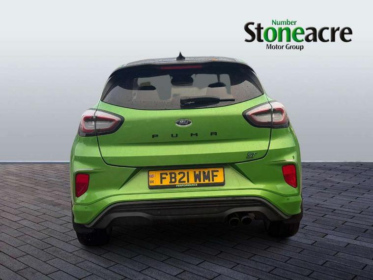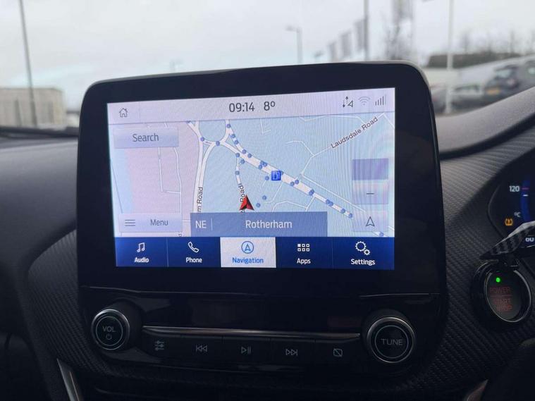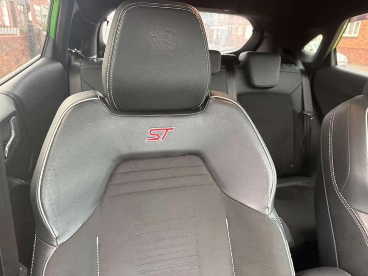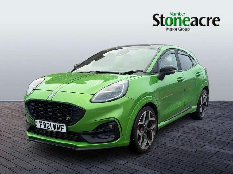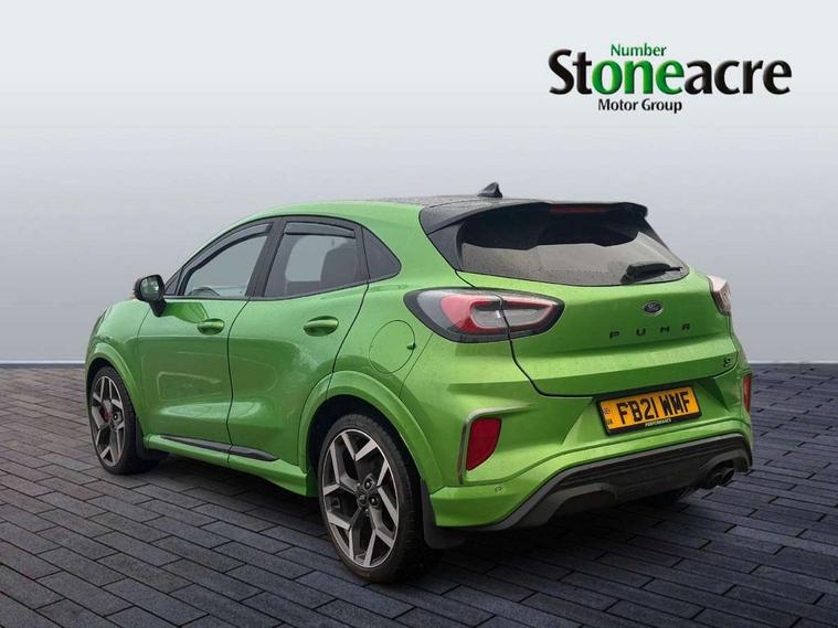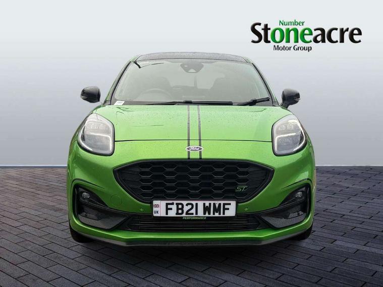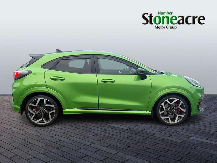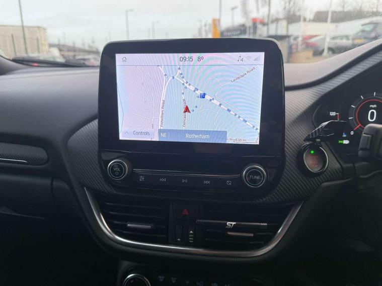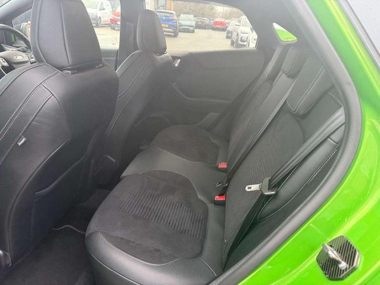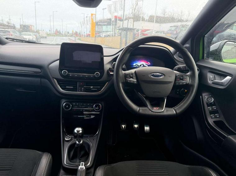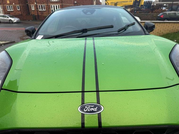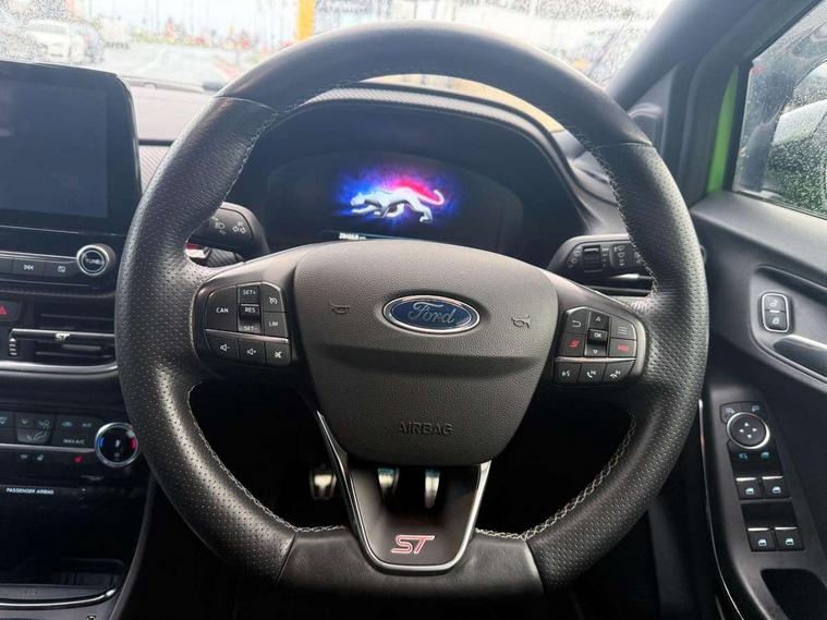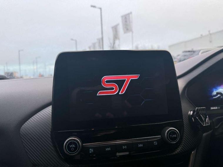 Cruise control, Ford easy fuel, Front parking sensor, Full digital 12.3" instrument cluster, Lane keeping aid with lane departure warning, Power assist steering, Power start button, Rear parking sensor, Selectable drive modes (normal, sport, eco, track), Wireless charging pad, Engine sound enhancer, ST suspension, Automatic headlights with rain sensing wipers and auto high beam, Black door mirrors, Dual chrome exhaust, Fixed LED headlamps, Front fog lights with cornering lights and LED rear lamps, Gloss black with chrome elements on front and rear bumpers, High chrome waistline, LED daytime running lights, Power foldable heated door mirrors with puddle lamps, Privacy glass to side rear windows and tailgate glass, Quickclear heated windscreen, Rear wiper, ST scuff plates, Unique ST elements to front and rear body styling kit including Ford Performance embossed splitter, Alloy sports pedals, Centre console with armrest and stowage, Ford megabox extended bootspace, Front and rear floor mats, Front and rear head restraints, Heated front seats, Heated steering wheel, Lumbar massage for driver and passenger, Manual air conditioning, Premium sensico wrapped instrument cluster, Recaro sport seats partial leather upholstery, ST flat bottomed steering wheel with metal grey stitching, ST logo projection, Unique ST gear shift knob, Wireless charging pad with electronic air temperature control (EATC), B&O Premium Audio system + Ford SYNC 3 navigation pack - Puma, 3 rear seatbelts, Electronic stability control (ESC) and hill start assist, Pre-collision assist with autonomous emergency braking, pedestrian/cyclist detection & post-collision braking, Red brake calipers, Tyre pressure monitoring system (TPMS), Thatcham alarm, Carbon look interior deco spears, Tyre inflation kit,