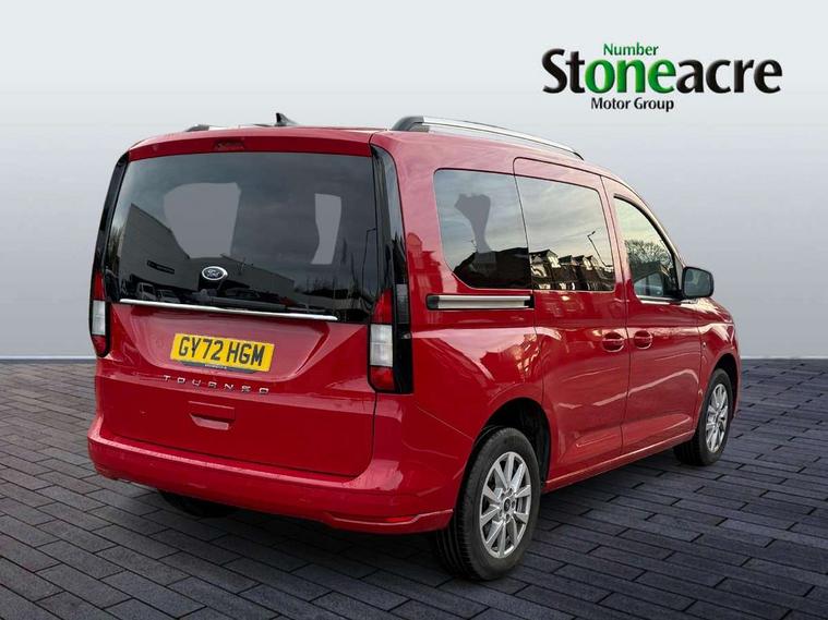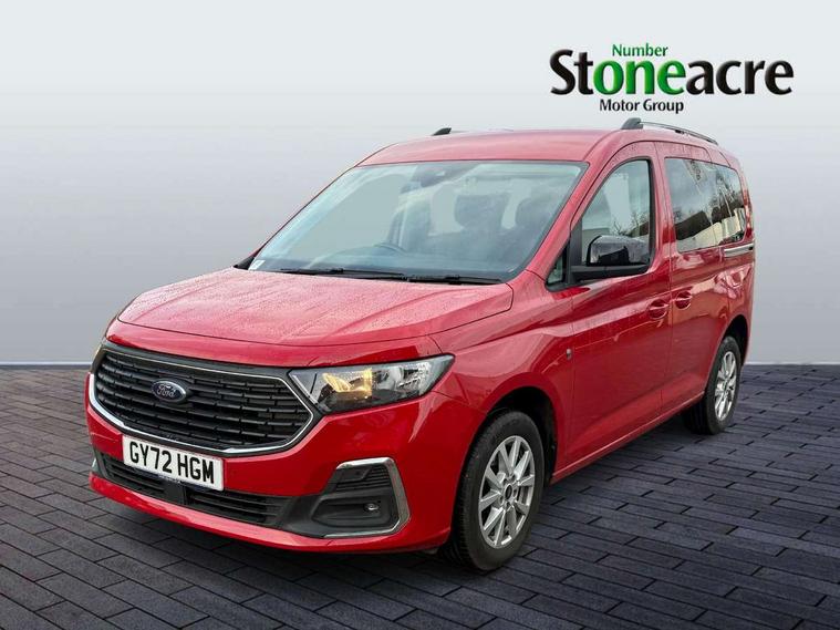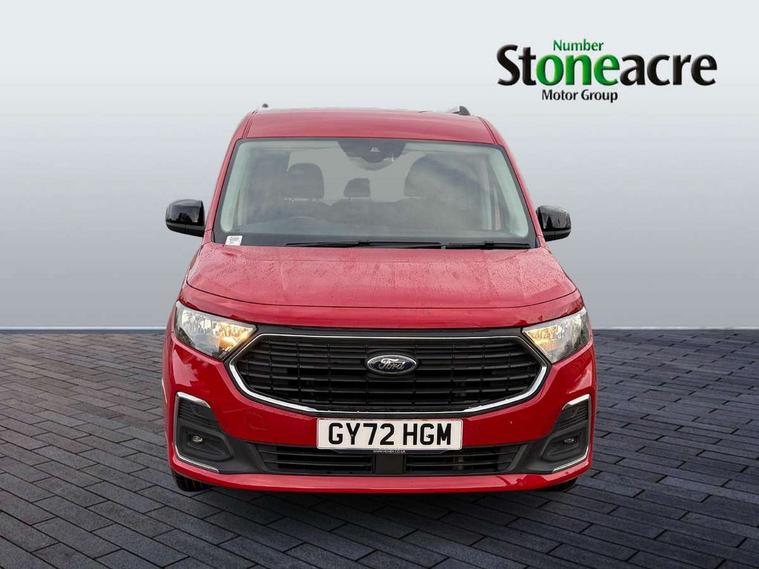 Analogue cluster, Brake wear indicator, Driver impairment monitor, E-call, Embedded modem, Mobile phone interface, PAS, Stop/start system with regenerative braking, Trip computer, 50 litre fuel tank, Diesel particulate filter, Standard duty alternator, Media hub 2x USB and rear USB Unit, Steering wheel mounted radio controls, Adaptive cornering lamps includes fog lamp, Auto headlamps On/off, Automatic windshield wiper, Black coloured exterior mirror finish, Black grille with chrome surround, Body coloured exterior door handles, Body coloured exterior tailgate handles, Body coloured plastic front bumper, Body coloured plastic rear bumper, Dark tinted rear privacy glass, Daytime running lights, Dual power fold heated mirrors, Dual sliding side load doors, Electric rear window defroster, Electric windshield defroster, Electrochromic inside mirror, Fixed 3rd row LHS and RHS window, Fixed rear window, Follow me home headlamps, Front bumper with chrome insert, High mounted stop lamp, Intermittent variable windshield wiper, Liftgate rear cargo door, Privacy glass, Rear registration plate light, Rear window wash/wipe, Roof rack silver painted rails, Standard green glass windscreen, Tail lamp - Level 1, Weather protection seals, 2 front row cupholders, 2nd row rear overhead courtesy light, 3 seat bench in 2nd row, 3x hooks on trim panel storage, 4 tie down hooks, A/C Refrigerant - HF01234YF, Air register Chrome, B Pillar assist handle, Base luggage compartment trim, Bubble fabric upholstery, Carpet load floor cover, Carpet partial floor cover, Center console level 4, Driver seat rotary recliner, Front door trim panel - Level 2, Front interior grab handles, Front seat tray table, Front throw in carpet floor mats, Glovebox lid with light, Header courtesy light with maplight, Height adjustable headrests, IP open storage above driver area, LED Load compartment light, Misfuel protection cap, Overhead storage shelfs, Painted instrument panel, Passenger seat rotary recliner, Passenger sunvisor with mirror, Passenger under seat storage tray, Pollen filter without carbon filter, Power point plug 2 off, Reach + rake adjustable steering column, Rear luggage compartment bag hook, Recirculation heater, Regular size washer tank, Second row 60/40 folding seats, Sensico gearshift knob, Sensico steering wheel, Side/rear door trim panel - Level 1, Single driver sunvisor illuminated with mirror, Single front passenger seat, Standard design foot pedal, Storage in front cab doors with bottle holder, Storage in rear doors with bottle holder, Driver assistance package - Tourneo Connect/ Grand Tourneo Connect, High acoustics package - Tourneo Connect/ Grand Tourneo Connect, Ice feature pack 4 - Tourneo Connect/ Grand Tourneo Connect, Restrain device pack 3 - Tourneo Connect/ Grand Tourneo Connect, Seat pack 18 - Tourneo Connect/ Grand Tourneo Connect, 2nd row rear seat belts, 4 wheel disc brakes, Black seat belts, Brakes - (HLA)Hill launch assist/TC, Driver, passenger and 2nd row rear seat belt reminder, Electric parking brake with auto hold function, Electronic emergency brake assist, Emergency brake light flashing, ESC with ABS, Front 2 way head restraints, Front active seat belts and manual adjuster seat belts, Front airbag restraint and passenger airbag restraint, Front side airbags, Isofix hard point attachment, Manual passenger airbag deactivation function, Post collision braking, Rear 2 way head restraints, Rear removeable package tray, Tire pressure sensors, 2 remote flip keys, Child proof rear door locks, Configurable Unlocking 2, Engine immobilizer - Securilock, Keyless entry and start with double locking, Locking wheel lug nuts, Power door dead locks and enabled door automatic relocking, Thatcham category 1 alarm B, 16" Titanium alloy wheels with centre wheel hub caps and standard tread, Front tire and rear tire tread, Less wheel cover, Tyre repair kit,