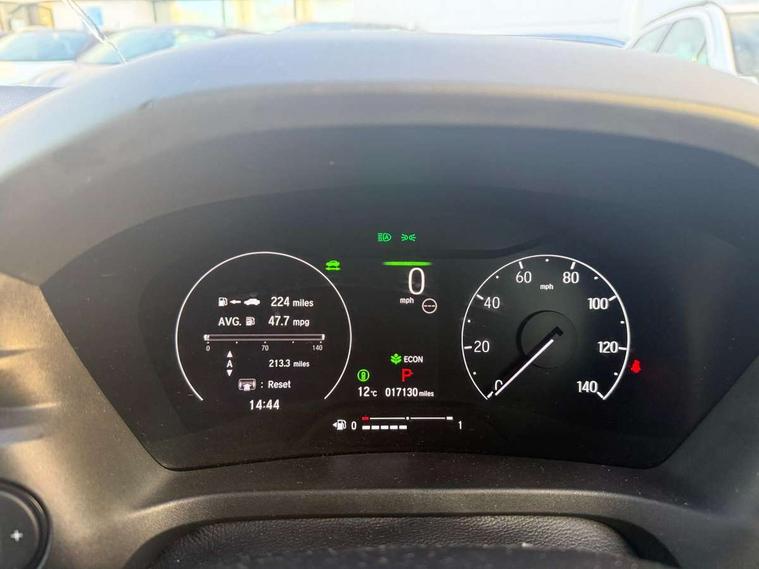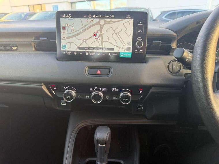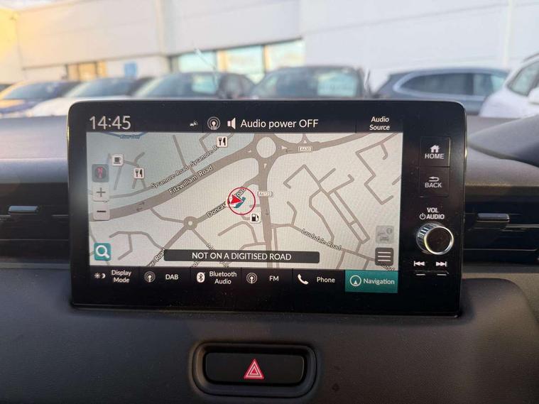 7" TFT instrument cluster, Adaptive cruise control, Adjustable speed limiter, Agile handling assist, Bluetooth hands free telephone connection, Drive modes select (Eco, normal and sport), eCall emergency system, Electric power steering, Emergency stop signalling system, Forward collision warning, Front parking sensors, Honda CONNECT with navigation, 9" touchscreen, AM/FM/DAB/Apple Carplay and android auto, Idle stop, Intelligent speed limiter, Lane departure warning, Lane keep assist, Low speed following, Multi info display, Power meter, Rear parking sensors and rear view camera, Road departure mitigation, Tachometer, Tailgate, Traffic sign recognition, WiFi connectivity, Vehicle stability assist, 'Shark fin' mobile antenna, 2x USB Front socket (1 data & 1 charge), 4 speakers, Steering wheel mounted remote controls, Auto folding door mirrors, Auto high beam, Automatic coming home lighting, Automatic headlights, Automatic rain sensing wipers, Body colour bumpers, Body colour tailgate spoiler, Body coloured door handles, Body coloured door mirrors, Body coloured front grille, Electric front and rear windows, Electrically adjustable and heated door mirrors, Exclusive styling in lower bumper non painting black, Fog garnish non paint gloss black, lower door garnish bumper skid garnish non paint silver, Front sequential turn, Headlight washers, Heated front windscreen, Heated rear window, High level third brake light, LED daytime running lights, LED headlamps, Low gloss window garnish, Manual headlight levelling, Rear side wing doors, Rear wiper, Red and clean lens LED rear lights, Variable front intermittent wipers, Windscreen shadeband, 3 rear headrests, 3 seat bench in 2nd row, 60/40 split folding rear seat, Ambient interior lighting, Automatic air conditioning, Cargo net hooks, Courtesy lights, Driver's seat height adjustment, Driver/passenger sunvisors with illuminated vanity mirrors, Front and rear map reading lights, Front head restraints, Front seat armrests, Heated front seats, Isofix points, Luggage area under floor storage box, Magic seat flexibility system, Manual height/reach adjust steering wheel, Meter illumination light, Paddle shift controls, Passenger seat back pocket, Rear centre armrest, Rear ventilation, Silver interior door handles, Single front passenger seat, Tonneau cover, Trunk light, 3x3 point rear seatbelts, ABS+EBD+Brake assist, Anti-whiplash front headrests, Auto hold function, Collision mitigation braking system, Collision mitigation throttle control, Deflation detection system, Dual front SRS airbags, Electric child locks, Electronic parking brake, Front and rear curtain airbags, Front and rear safety belts with Emergency Locking Retractor, Front side airbags, Hill descent control, Hill start assist, Low speed safety system, Paddle deceleration control, Passenger SRS airbag cut-off device, Regenerative braking system, Door deadlocks, Honda super locks, Immobiliser, Keyless smart entry with push button start, Remote central locking with 2 remote folding keys, Security alarm, Windows key fob operation, 18" Black cut alloy wheels, Tyre repair kit,