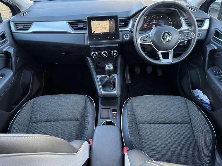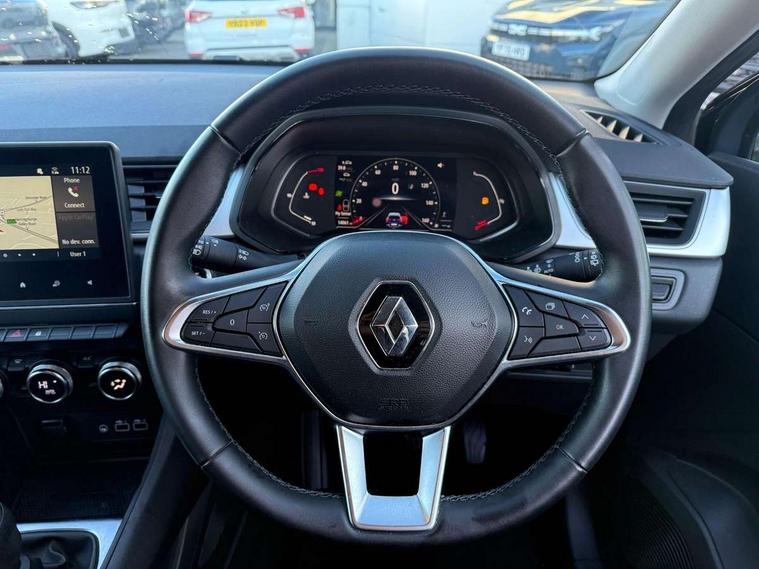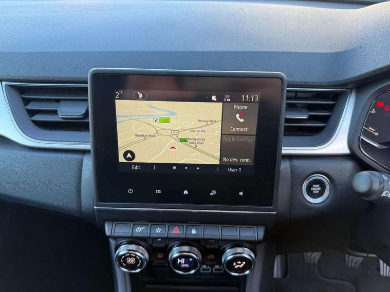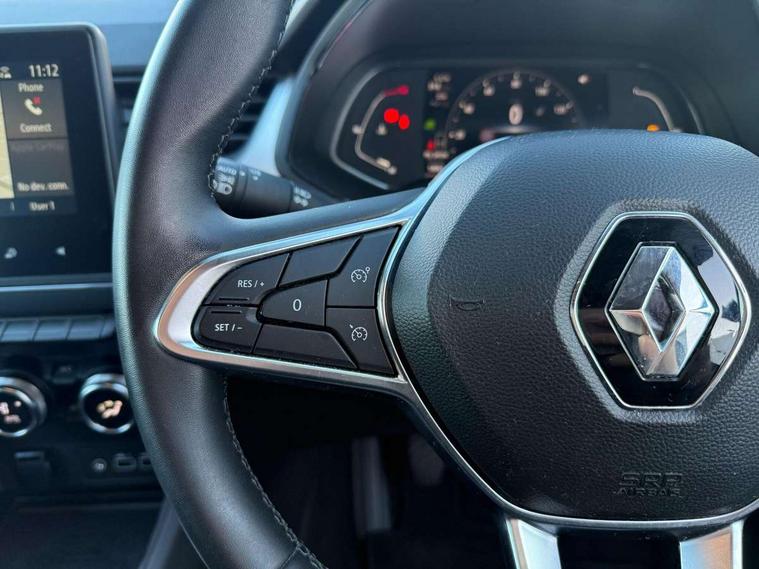 7" TFT Driver information display, Cruise control + speed limiter, EasyLink 7" touchscreen with navigation, google search and traffic information, Eco mode, Front and rear parking distance sensors, Gear change indicator, Lane departure warning system, Lane keep assist, Multisense with 3 driving modes + 8 ambient lighting colours, Rear view camera, Renault automatic emergency assist, Smartphone integration compatible with Apple CarPlay and Android Auto, Traffic sign recognition with over speed prevention, Trip computer, Variable assistance power steering, Wireless phone charger, DAB Radio with Bluetooth and USB, 2 reverse gear LED lamps and 1 rear LED fog lamp in the bumper, Auto dimming rear view mirror, Automatic front wipers with rain sensors, Automatic headlights, Automatic high/low beam, Black side door protection with chrome effect, Body colour door handles, Body coloured bumpers, Body coloured door mirrors, C Shaped LED front and rear lighting signatures with 3D effect on the rear lights, Chrome around front air deflectors, on front wing deco element and window lining, Day time running light, Drivers one touch window with anti-pinch feature, Extra tinted glass in rear windows and tailgate, Front and rear electric windows, Front grille with chrome upper trim, Full LED headlights, Grey front and rear skid plate, LED high level brake lights, LED rear fog lights, LED turn indicators on door mirrors, Longitudinal roof bars, Rear side wing doors, Rear wiper, Shark fin antenna, 12V Accessory socket, 60/40 split and fixed base rear seat bench, Automatic climate control with one touch demist function and air quality regulator, Central rear LED rooflight with 3 reading lights, Front head restraints, Glovebox, Heating system with pollen filter, Height adjustable driver's seat, Height adjustable passenger seat, Height/reach adjust steering wheel, ISOFIX child seat fixing points on rear outermost seats, LED front roof lights, Middle console with armrest and storage, Rear air vents, Rear head restraints, Single front passenger seat, Sliding rear bench, Synthetic leather steering wheel, Synthetic leather/cloth upholstery, 3 rear seatbelts, ABS+EBA, AEBS - active emergency braking system, Distance warning alert, Driver and front passenger and 3 rear passengers seatbelt reminder, Driver and front passenger, side, head and curtain airbags, Driver height adjustable seat belt, Electric parking brake with auto hold function, Electronic stability control, Front dash warning indicator in case of heavy braking, Front driver and passenger side airbag deactivation, Hill start assist, Manual passenger airbag deactivation function, Rear door and window child locking function for rear door, Tyre pressure warning light, Anti drill door locks and locking fuel cap, Central door locking, Deadlocking system, Hands free keycard with push button and start/stop function, RAID (Renault Anti-Intruder Device) automatic door locking, Black soft touch dashboard, 18" Pasadena diamond cut alloy wheels with grey inserts,