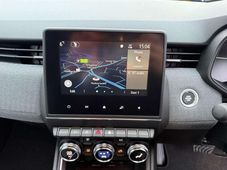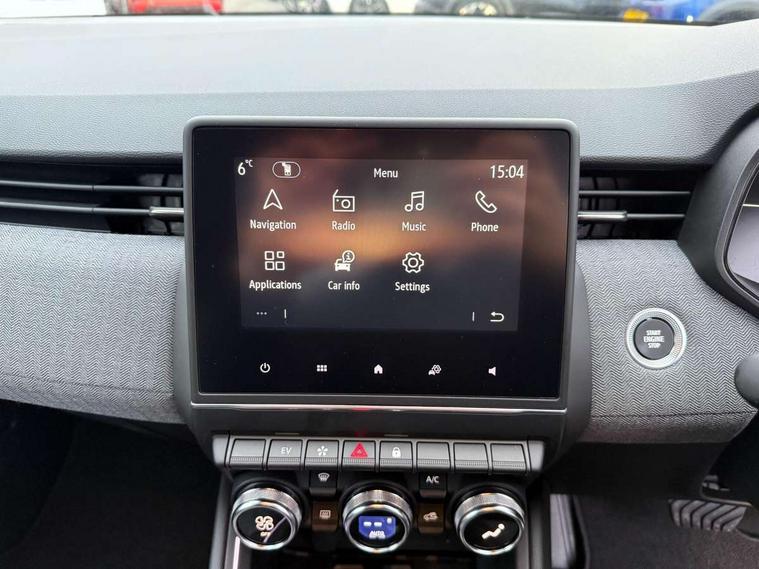 7" digital driver display, Apple car play/Android Auto, Cruise control + speed limiter, Driver attention warning, Easy link 7" touchscreen with built in navigation + Wifi smartphone integration plus, Eco mode driving function, Emergency call system, Front park assist, Front parking sensors, Lane departure warning system, Lane keep assist, Multisense 3 driving modes including ambient lighting, Over speed prevention, PAS, Rear park assist, Rear parking sensors, Rear view camera, Saftey shield [button for personalisation configuration of key ADAS features], Start/stop system, Traffic sign recognition, Wireless phone charger, 2 USB ports, Arkamys speakers - x6 inc. 2 boomer, 2 tweeter and 2 bicone, Bluetooth, 1x jack, 1x aux socket, DAB/FM Radio, Automatic headlights, Automatic windscreen wipers, Black auto folding wing mirrors with defrosting and temperature gauge and LED indicator, Body colour bumpers, Body colour door handles, Body colour F1 blade, Chrome insert on lower side doors, Chrome side window surrounds, Chrome upper grille, Electric rear windows, Electrically adjustable door mirrors, Electrochromatic rear view mirror with light and rain sensor - Black, Exhaust pipe, Exterior rear hidden door handles, Front and rear LED roof light x 2, Front fog lights, Full LED front and rear headlamps integrating daytime running lights at the front and rear, Heated rear windscreen, LED rear signature lighting, LED third brake light, One touch electric front windows, Rear brake light, Rear side wing doors, Rear wiper, Shark fin antenna, Tinted rear windows, 3 rear height adjustable headrests, 3 seat bench in 2nd row, 60/40 split and fixed base rear seat bench, Automatic air conditioning, Black armrests in door panel, Centre console armrest, Fabric upholstery, Floating console with storage, Height adjustable front headrests, Isofix system on outer rear seats, Mechanical height adjustable front seats, Power supply jack, Single front passenger seat, Sun visor without light, Synthetic leather steering wheel, 3 point seatbelts on all rear seats, ABS, Active emergency braking system - Urban and pedestrian/cyclist, Automatic emergency braking system with emergency brake assist, Child locks on rear doors, Curtain airbags, Distance warning alert, Driver and passenger airbags, Electronic brake force distribution, Electronic parking brake with auto hold, ESC (Electronic Stability Control), Front passenger airbag deactivation, Front side airbags, Height adjustable passenger seatbelt, Hill start assist, Seatbelt reminder, Tyre pressure monitor, 2x Black keys, Hands free key card with push button, start and stop function, RAID (Renault Anti-Intruder Device) automatic door locking, Superlocking, Dark interior roof trim, 17" Monastella Diamond Cut Alloy with grey/black Inserts,