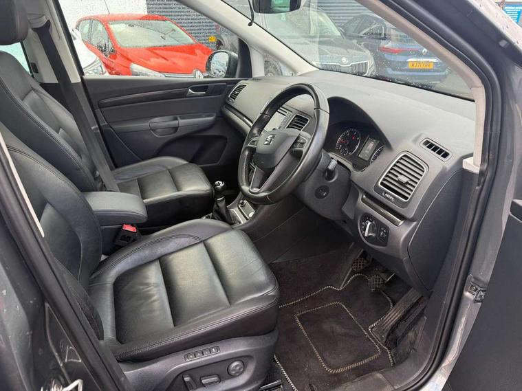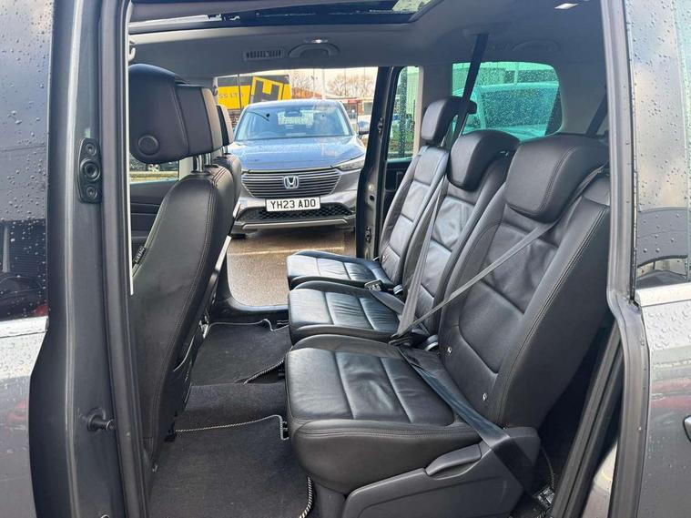 Cruise control, Electric speed sensitive power steering, Front and rear parking sensors, Front assist with front grille, Low fuel warning light, Multi function display, Multifunction camera with lane assist, Outside temperature gauge, Stop/start system, Trip computer, Voice control system, Diesel particulate filter, Sports suspension, 6.5" touchscreen, 8 Speakers, Bluetooth audio streaming, MDI with USB/iPod connection cables, MP3 compatible radio/single CD player, Steering wheel mounted audio/phone controls, Auto dimming rear view mirror, Automatic headlights, Automatic rain sensing wipers, Body colour bumpers, Body colour door handles, Body colour door mirrors with integral indicators, Chrome roof rails, Chrome side window trim, Chromed centre radiator grille surround, Coming/leaving home lighting function, Cornering front fog lights, Dark tinted rear glass, Electric headlight adjustment, Electric tailgate and sliding rear side doors, Electric tilt/slide panoramic sunroof, Electrically adjustable and heated door mirrors, Front and rear electric windows, Front grille hot stamping, Heated washer nozzles, High beam assistant, LED rear number plate lights, LED tail lights, Rear wiper, Reverse activated kerb-view adjustment on passenger's door mirror, Twin halogen headlamps, 12 way electric front seats, 2 cupholders in front centre console, 2 cupholders in left rear storage panel, 230V AC inverter, 3 spoke leather steering wheel, 3 x 12V power sockets, 3 zone climate control, 4 Lashing eyes in boot, Adjustable front armrest with storage compartment, Adjustable head restraints, Chrome door sills with Xcellence logo, Comfort front sports seats, Dashboard storage with cover, Easy entry seats, Electric sunshade for sunroof, Folding rear seats, Front courtesy light with time delay, Front map reading lights, Front seat back fold out tables with cupholders, Front/rear door stowage bins, Front/rear floor mats, Heated front seats, Height/reach adjust steering wheel, Illuminated boot, Integrated sunblind for rear side windows, Isofix child seat preparation, Leather gear knob, Leather upholstery, LED interior illumination, Lockable/illuminated air conditioned glovebox, Multi function steering wheel, Overhead console with sunglasses holder, Rear air conditioning with separate controls, Reclining 2nd row seats, Removable load compartment cover, Sunvisors with illuminated vanity mirrors, Under floor storage in 2nd row, Seat navigation pack with rear view camera - Alhambra, 3 point seatbelts on all seats, ABS, Auto hold function, Automatic post collision braking, Driver and passenger airbags, Drivers knee airbag, Electrically operated child locks on rear doors, Electronic parking brake, Electronic stability control, Emergency brake assist, Energy recovery system, Front and rear curtain airbags, Front and rear seatbelt reminder, Front side airbags, Height adjustable front seatbelts with pre-tensioners and load limiters, Hill hold control, Passenger airbag deactivate switch, Tiredness recognition system, Tyre pressure monitoring system, Electronic engine immobiliser, Keyless entry system, Locking wheel bolts, Remote central locking + deadlocks, Volumetric alarm with back up horn, Chrome effect dashboard facia, Metal Eye II door & dashboard decorative inserts, 17" Dynamic alloy wheels, Self sealing tyres,