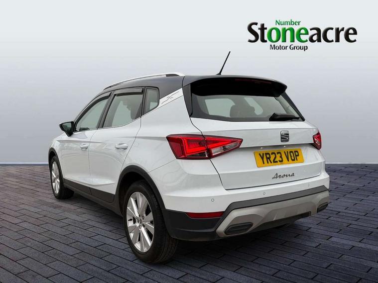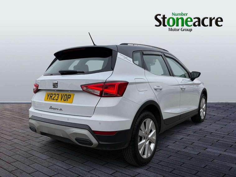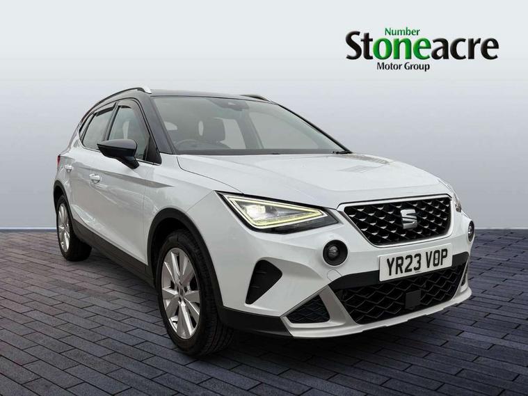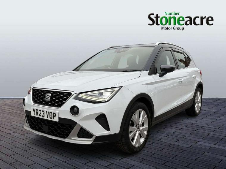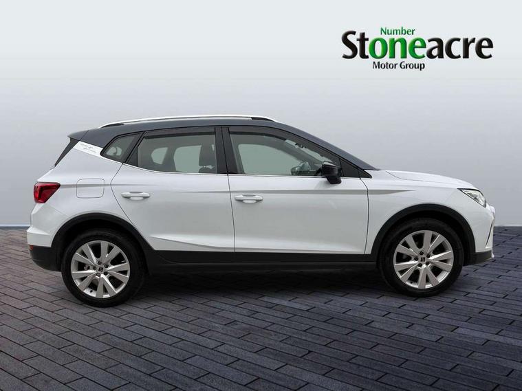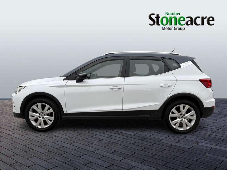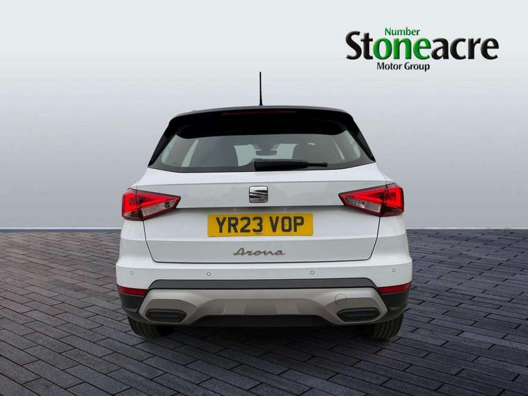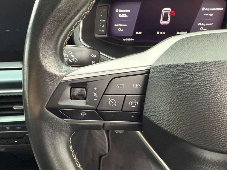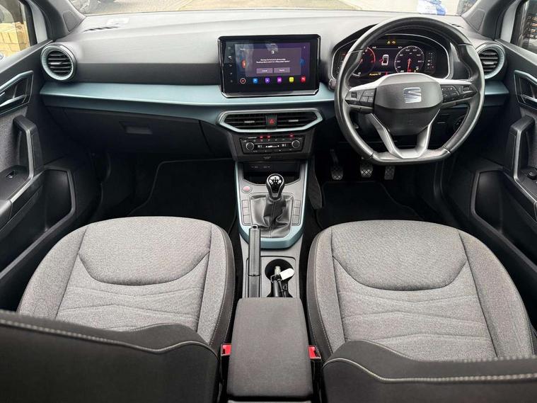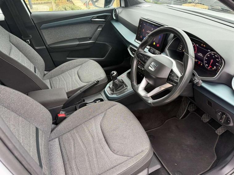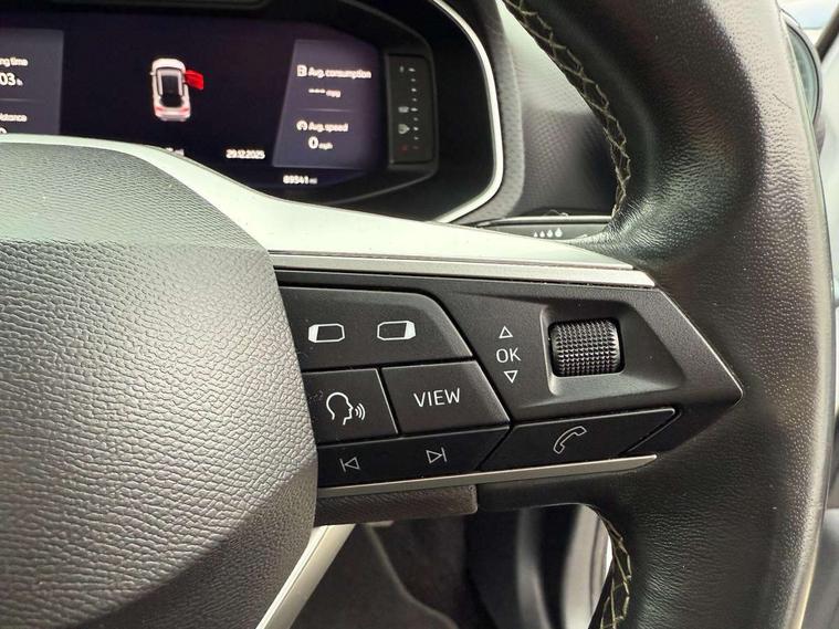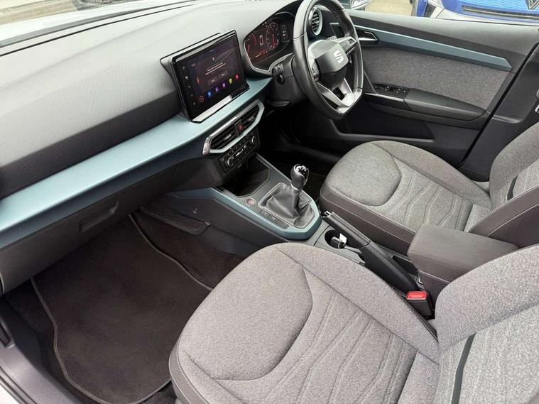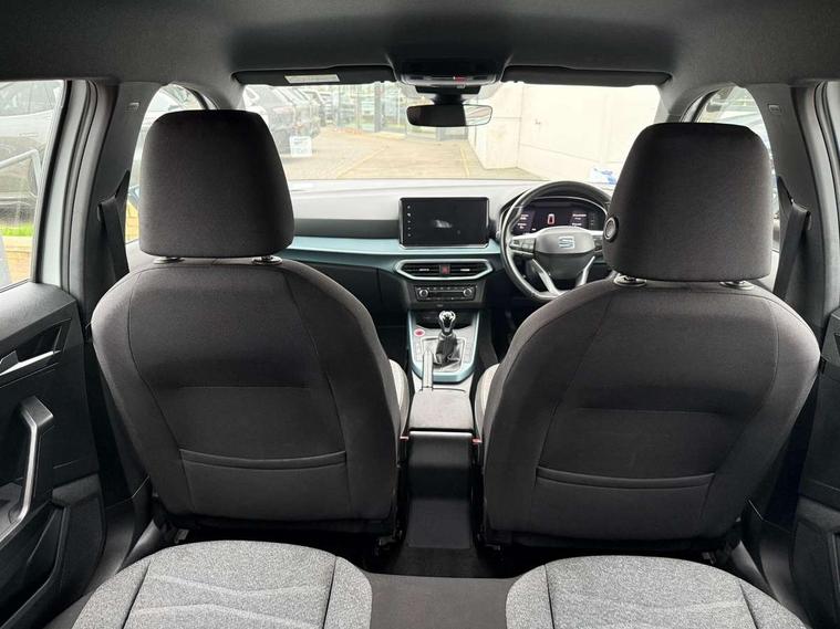 'Lights On' Reminder warning buzzer, 8" Digital cockpit, Digital clock, E-call, Electric speed sensitive power steering, Full Link Smartphone Integration with Mirror Link, Apple Car Play, Google Android Auto with USB Type C cable for Apple and Android compatibility, Lane keeping system, Low fuel warning light, Outside temperature display, Rear parking sensor, RPM counter, Seat connect with safety, service, remote and online, Trip computer, Wireless phone charger, 9.2" colour touchscreen with navigation system, voice control and USB port (type c), Bluetooth interface for hands free and audio streaming, DAB digital radio and AM/FM radio, Steering wheel mounted audio controls, Anti theft roof antenna, Auto dimming interior rear view mirror, Automatic activation of hazard warning lights, Body coloured bumpers, Body coloured door handle inserts, Chrome roof rails and window surrounds, Electric front/rear windows, Electrically adjustable, heated and folding door mirrors, Front fog lights with cornering function and rear fog light, FULL LED automatic headlights with dynamic headlight range control, coming and leaving home, LED daytime running lights, Hidden exhaust pipe, LED rear tail lights and licence plate lights, Protective side mouldings, Rain sensing wipers, Rear side wing doors, Rear spoiler, Rear window wash/wipe, Roof colour door mirrors, Third brake light, Visible VIN plate, Windshield wiper with intermittent control and potentiometer, 2 cupholders, 3 seat bench in 2nd row, 60/40 split folding rear seat, Aircare filter, Black interior roof, Cloth upholstery, Double boot floor, Driver sunvisor with covered mirror + card holder, Dual zone climate control, Flat bottomed leather steering wheel/gear knob/handbrake, Front courtesy light with 2x front and 2x rear reading lights, Front seat back storage pockets, Gear shift indicator, Height adjustable front seats, Height/reach adjustable steering column, Illuminated boot, Instrument lighting with brightness control, Interior ambient lighting, Interior light in footwell, central console and door panel, ISOFIX points in outer rear seats with top tether anchorage points, Leather steering wheel/gear knob/handbrake, Passenger sunvisor with vanity mirror, Single front passenger seat, Storage net on centre console, Two front and three rear height adjustable headrests, Interior chrome pack - Arona, Safety and driving pack (M) - Arona, Storage pack - Arona, 3 point seatbelts on all rear seats, ABS, Active front headrests, Child locks on rear doors, Driver and front passenger airbags with front passenger airbag de activation, front side and curtain airbags, Electronic stability control, Emergency Brake Assist (EBA) and front assist, Front and rear seatbelt reminder, Hill hold control, Multi-Collision braking, Tiredness recognition system, Traction control, Tyre pressure monitoring system, Alarm with back-up horn, Electronic engine immobiliser, KESSY Keyless entry and go, Locking wheel bolts, Remote central locking + deadlocks, Tow away protection, Titan black dashboard, 17" Dynamic alloy wheels,