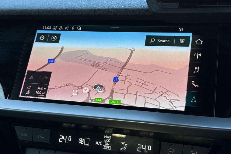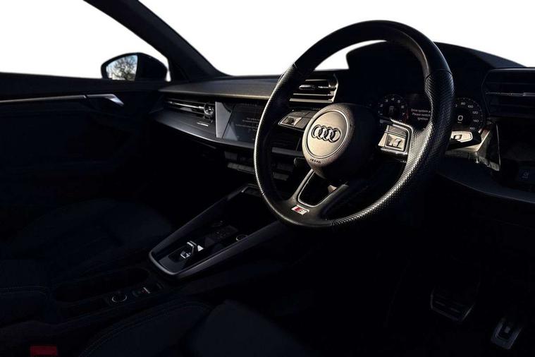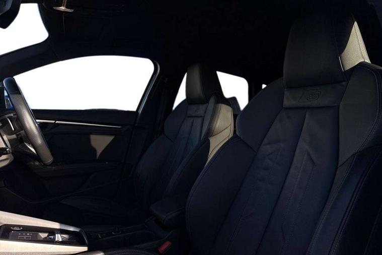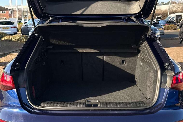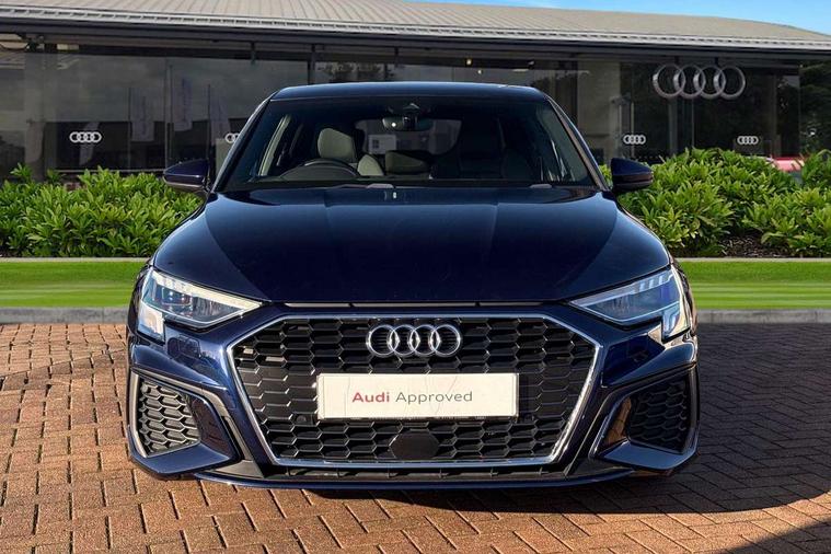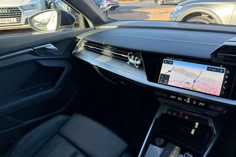 Accent surfaces in the dashboard and centre console in platinum grey silk effect paint finish, Dark spectrum aluminium inlays, Aluminium interior elements pack - A3 Sportback, S line styling pack - A3 Sportback, Anti theft alarm, Anti-theft wheel bolts, Electronically operated child lock, Immobiliser, Remote control central locking, 2xUSB-C connection with data and charging functions, 6 passive loudspeakers, DAB Digital radio, 3x3 point rear seat belts, Driver and front passenger airbag with passenger airbag deactivation, Electronic Stabilisation Control (ESC) including ABS, ASR and EDL, First aid kit with warning triangle and 2 safety vests, Front side airbags with head airbags and interaction airbag, Hill hold assist, Pre-sense front with pedestrian and cyclist detection, Seatbelt monitoring, Tyre pressure loss indicator, Acoustic glass windscreen, Aluminium window trim, Auto dimming frameless rear view mirror, Electrically adjustable/heated/folding/dimming door mirrors with kerb view includes integrated LED indications + kerb view function for passenger side, Front electric windows, Illuminated aluminium inserts front door sills with S logo, LED daytime running lights, Light and rain sensors, Privacy glass - dark tinted rear window, rear door and side windows, Rear electric windows, Rear side air outlets in grained matt black, Rear wiper, S line bumpers, S roof spoiler, 12V socket and storage compartment in front centre console, 40/20/40 split folding rear seat bench with cupholder, Black cloth headlining, Dual zone electronic climate control, Front and rear centre armrest in leather, Front and rear headrests, Front/rear floor mats, Height and reach adjustable steering wheel, Interior lighting - glove compartment light and right hand side, Luggage compartment floor covering, Manual boot compartment lid, Manually adjustable front seats, Seat side bolsters, Stainless steel pedals and front footrest, Twin leather upholstery with front sports seats S embossed logo, Audi connect emergency call and service, Audi drive select (Auto, Comfort, Dynamic, Efficiency and Individual), Audi smartphone interface, Audi Virtual Cockpit - 10.25" digital and colour instrument cluster, Automatic start/stop system with recuperation, Bluetooth interface, Collision avoidance assistant, Electromechanical power speed sensitive steering, Lane departure warning system, MMI Navigation Plus with high resolution 10.1" colour touch screen display, Service indicator, Trip computer, Voice control system with natural language interaction,