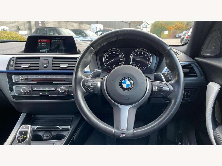 Automatic start/stop system, BMW Online services, BMW remote services, BMW Teleservices, Brake force display, Brake pad wear indicator in front and rear, Check Control warning system for monitoring of lights and door/luggage compartment open warning, Eco pro mode, Instrument cluster with speedometer with miles per hour read out, tachometer and fuel gauge, Lights on warning by audio warning signal when ignition is switched off, Oil temperature display via on board computer in instrument cluster, On board computer - average speed+fuel consumption, service interval, clock/date, odometer/trip meter, outside temperature display and ice warning, On board diagnostics, Optimum shift indicator, Personal Profile, Real time traffic information, Servotronic PAS, Speed limiter, Battery age recognition function, Drive Performance Control, Sport automatic transmission with Launch Control, Sports function on gearbox with steering wheel mounted gearshift paddles, BMW professional radio with CD player, DAB Digital radio, Harman/Kardon loudspeaker system, Body colour door handles, Body colour front and rear bumpers, Body colour mirror caps, Body colour roof mouldings, Clear lenses direction indicator lights, Dark chrome exhaust tailpipe, Darkened rear lights with LED light bars, Daytime driving lights, Direction indicator side lights in exterior mirrors, Dynamic brake lights, Electrically adjustable heated door mirrors and washer jets, Follow me home headlights, Front and rear bumper system with replaceable deformation elements, Front and rear electric windows with open and close fingertip control, anti trap facility and comfort closing, Green tinted heat protection glazing, Headlight beam throw control, Heated windscreen washer jets, High gloss black kidney grille with black slats, High level third brake light, Lightweight engineering, M aerodynamic bodystyling, Nearside reverse light in rear light cluster, Offside rear fog lights, Rain sensor including auto headlights activation, Rear window aerial, Rear window wiper, Shark fin antenna, Sun protection glass, Visible VIN plate, Welcome lighting, 12V power socket in centre console, 12V power socket in passenger footwell, 60/40 split folding rear seat, Ambient lighting - switchable BMW classic orange/ cold white LED, Anthracite headlining, Anthracite Velour front and rear floor mats, Conditioned based service, Door sill finishers with illuminated M designation, Four grab handles integrated in roof lining, Front and rear side armrest integrated into door trim, Front folding sliding armrest with storage compartment, Front head restraints, Front sports seats with electric side bolster adjustment, Front storage compartment in centre console and in door trim, Front/rear courtesy lights with soft on/off dimming, Glove box handle with chrome surround, Glovebox, Interior light in front centre interior mirrors and rear centre auto interior light activation when door is opened when ignition switched off, Isofix child seat for two outer rear seats, Leather gear knob and handbrake grip, Luggage compartment access via BMW roundel, Luggage compartment lighting, M sports multi function leather steering wheel, Manually adjustable steering column, Multi-function controls for steering wheel, Rear folding head restraints, Sunvisors with vanity mirrors and ticket pocket, Two cupholders with sliding cover and inlay mat, Two sills lashing eyes in the luggage compartment, 3 point seatbelts on all seats, front pyrotechnic belt tensioners, stopper and belt force limiters, rear coded belt buckles, Active differential brake (ADB), electronic differential lock in DSC-OFF mode, Airbags - Front driver and passenger, front and rear head, front side, curtain head protection, Anti lock braking system (ABS) with brake assist, Automatic Stability Control (ASC), Battery safety cut-off, BMW emergency call, Brake drying, Brake energy regeneration, Braking readiness, Cornering brake control (CBC), Crash sensor activating central locking release, hazard warning lights, Driver and front passenger seat belt security check, DSC+, Dynamic brake control, Dynamic Traction Control - DTC, Front passenger manual airbag deactivation, Front ventilated brake disc, Hill start assist, M Sport braking system, Rear brake discs, Rear child proof door locks, Side impact protection, Twin horns, Tyre pressure monitoring system, Warning triangle and first aid kit, Automatic drive away locking facility, Central locking switch for all doors, fuel filler cap and luggage compartment, Locking wheel bolts, Remote central locking with two Integrate key, one button for opening and closing all lock, open and close window, button for open luggage compartment, Remote control integrated key with blue inset, Start/stop button with comfort go keyless engine start and auto start stop deactivation button, Thatcham Cat.1 alarm and immobiliser, Reduced rolling resistance tyres, Run flat tyres,