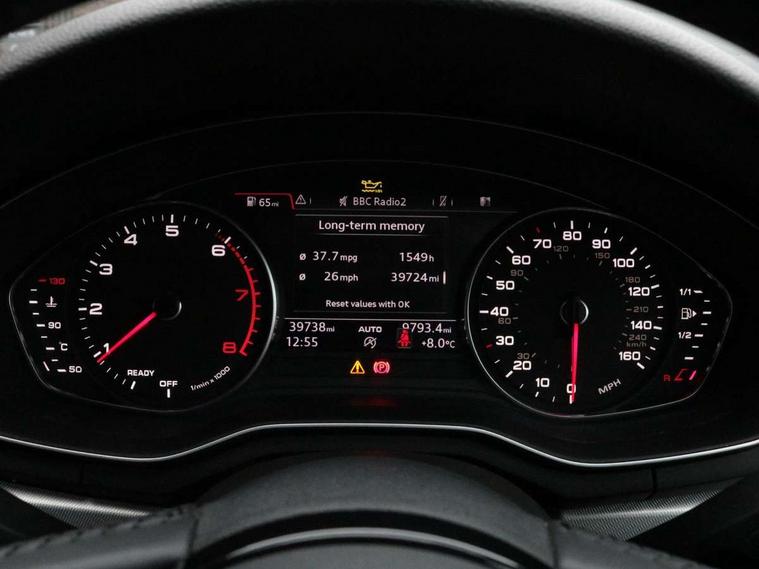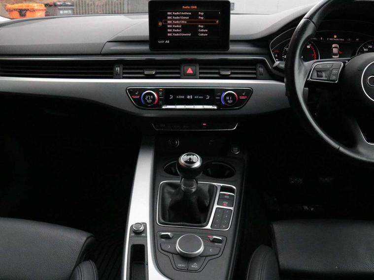 Audi drive select, Audi Pre sense collision avoidance, Audi smartphone interface, Auto boot lid opening, Colour driver's information system display, Electro-mechanical PAS, MMI SD card Navigation, Mobile telephone preparation - bluetooth interface, Service interval indicator, Stop/start button, Voice control system, 2 USB ports, Aux input, DAB digital radio module, MMI radio plus with CD player, Acoustic windscreen, Air inlets in titan black with two horizontal inlays in chrome, Aluminium window trim, Auto dimming rear view mirror, Automatic headlights + automatic windscreen wipers, Body colour bumpers, Body colour door handles, Body colour door mirrors, Chrome rolled exhaust, Electric adjustable heated door mirrors, Electric front windows, Electric rear windows, Headlight range control, High gloss black triangular aperture at rear door, LED daytime running lights, LED indicators in door mirrors, Rain and light sensors, Rear diffuser in Twilight grey matt, Twilight grey matt radiator grille with chrome inlay, 3 spoke high multi-function leather sports steering wheel, 3 zone climate control, Aluminium door sill trims, Front centre armrest with 12v socket, Front headrests, Front/rear floor mats, Isofix child seat preparation for front passenger/outer rear seats inc passenger airbag deactivation, Jack and tool kit, Luggage compartment carpet, Reach + rake adjustable steering column, Rear headrests, Split folding rear seats, Sunvisors with vanity mirrors, Top tether anchor plate for isofix child seat, Non Smokers pack, 3 point seatbelts on all rear seats, ABS/EBD, Active bonnet, Adaptive driver and front passenger airbags, EDL + ASR, Electromechanical parking brake, ESP, First aid kit, Front head airbags, Front seatbelt pretensioners + load limiters, Front side airbags, Multi-Collision braking, Seatbelt warning, Traction control, Tyre pressure monitoring system, Warning triangle, Anti theft alarm, Keyless Start, Locking wheel bolts, Remote central locking, Thatcham category 1 alarm + immobiliser, Space saver spare wheel,