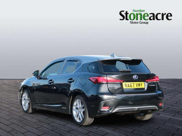 7" colour screen, Adaptive cruise control, Bluetooth telephone connectivity, Drive mode selector, Front and rear parking sensors, Lexus Navigaton System, Push button starter, Reversing camera, Speed sensitive power steering, Traffic sign recognition, Trip computer, Vehicle Dynamics Integrated Management, Vehicle Stability Control (VSC), 6 speakers, Auxiliary input socket, DAB Digital radio, Radio/CD + MP3, USB connection, Adaptive rear spoiler, Auto high beam, Black scuff plates, Body colour bumpers, Door mirror puddle lights, Electric adjustable door mirrors, Electric folding door mirrors, Front and rear electric windows, Front fog lights, Green tinted UV reducing windscreen glass, Heated door mirrors, LED brake lights, LED daytime running lights, LED tail lights, Privacy glass (rear side windows and rear screen), Rain sensor windscreen wipers, Rear diffuser, Rear wiper, Shark fin roof aerial, 2 cupholders in front centre console, 4 load securing hooks in luggage area, 5 headrests, 60/40 split folding rear seat, Carpet mats, Centre arm rests, Driver/passenger sunvisors with illuminated vanity mirrors, Dual zone climate control, Fabric/Tahara leather upholstery, Front door pockets, Heated front seats, Illuminated entry system, Isofix child seat attachment, Leather steering wheel, Manually adjustable front seats - 6 way driver/4 way passenger, Map pocket on front seat backs, Rear armrest, Rear coat hook, Steering wheel audio controls, Storage compartment in centre console, Storage compartment under load area floor, Tilt/telescopic adjustable steering wheel, ABS, Brake assist function, Curtain shield airbag, Driver and passenger side airbags, Drivers knee airbag, Dual stage driver/passenger airbags, Electronic brake force distribution, Front seatbelt pretensioner, Hill start assist control (HAC), Passenger airbag cut-off device, Passenger knee airbag, Pre crash system, Seatbelt warning, Sway warning system, Three 3 point rear seatbelts, Traction control, Tyre pressure warning, WHIPS whiplash protection system - front, Anti theft system, Double locking, Immobiliser, Intrusion sensor and alarm, Locking wheel nuts, Remote central locking, Smart entry + Smart start, Speed sensitive power door locks, VIN Window etching, Black interior trim, Space saver spare wheel,