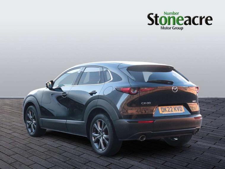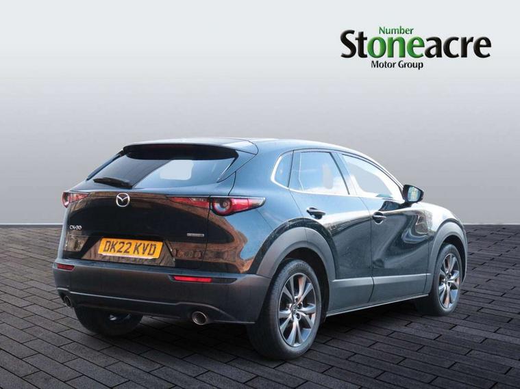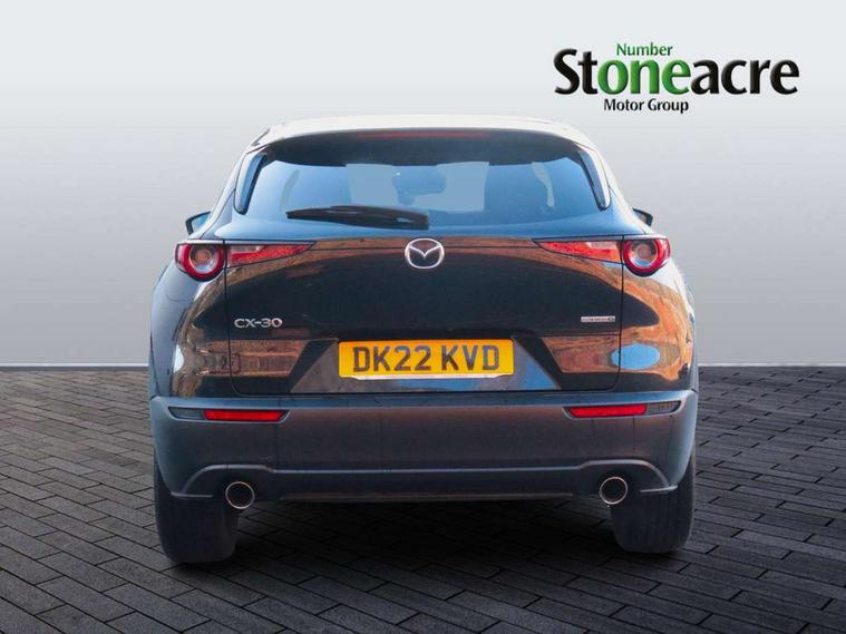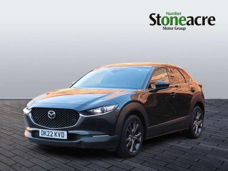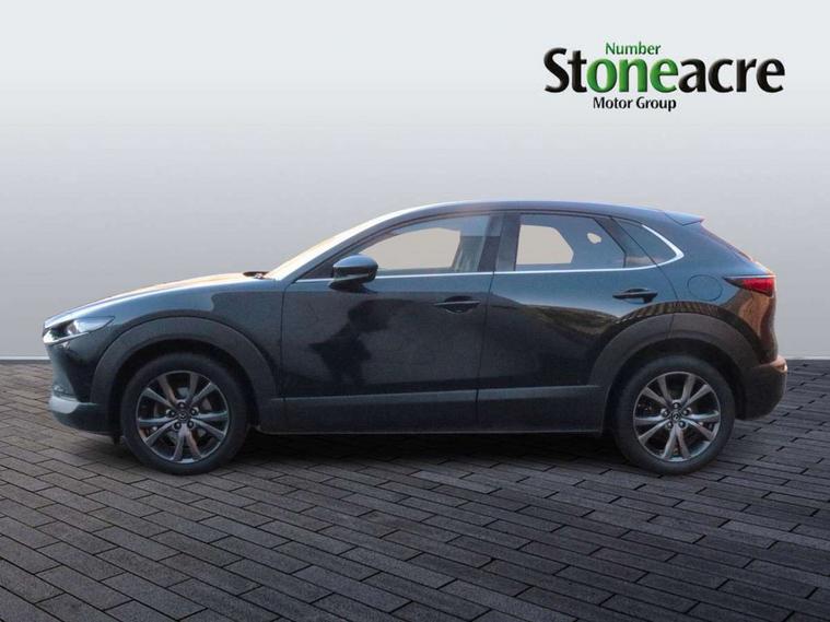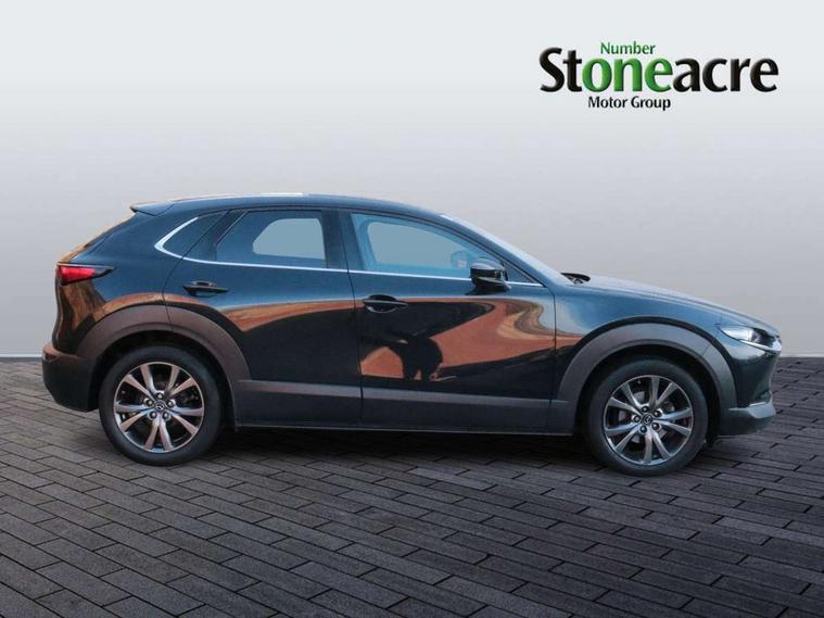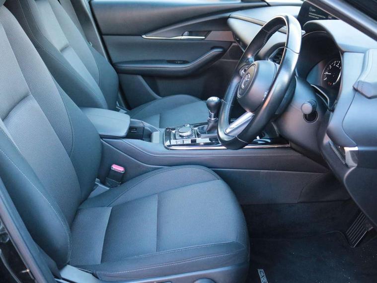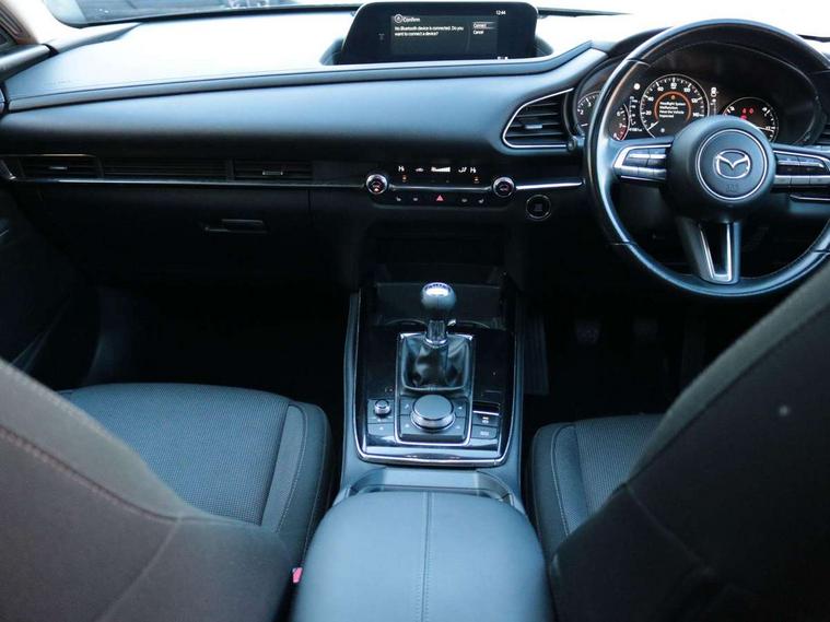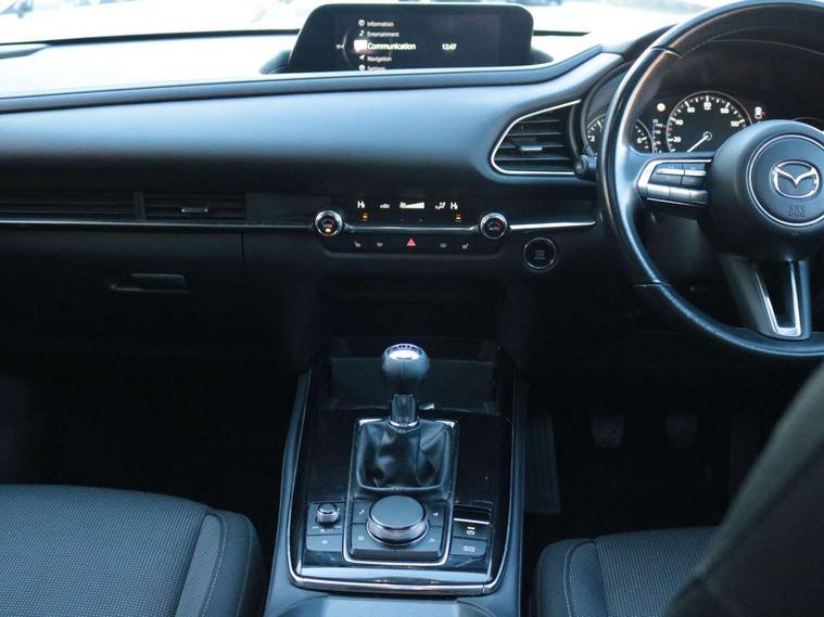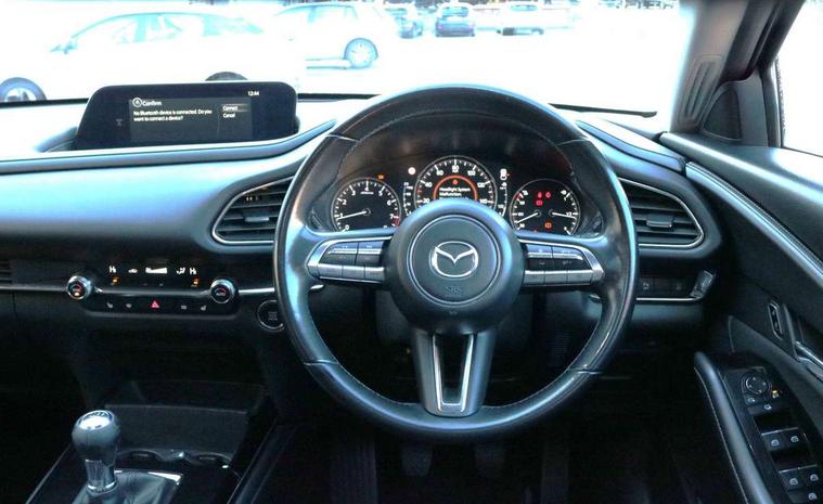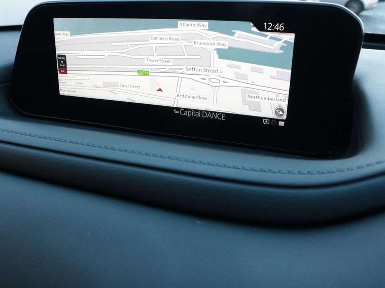 7" TFT Colour driver instrument panel display, 8.8" Colour centre touch screen display with Mazda Connect infotainment, Adaptive cruise control (Mazda radar cruise control), Apple car play/Android Auto, Blind spot monitoring with rear cross traffic alert, Driver attention alert system, E-call with GPS, Emergency stop signalling system, Engine start/stop button, Front and rear parking sensors, Integrated bluetooth, Integrated Mazda navigation system, Intelligent speed assist, Lane keep assist system (LAS) with Lane departure warning system (LDWS), Mazda connected services, PAS, Power lift gate, Reversing camera, Service indicator, Traffic sign recognition, Trip computer, i-stop, 2 USB charging ports in front inner central armrest, AM / FM / DAB radio with 8 speakers, Multimedia Commander including separate volume dial, Steering wheel mounted audio/bluetooth controls, Adaptive LED Headlights, Auto dimming driver's door mirror, Auto headlight levelling, B-pillar and C-pillar garnishes in piano black finish, Body coloured, electrically adjustable, heated auto power folding door mirrors with integrated indicators, Chrome finish signature wing in front grille, Coming/leaving home lighting function, Dual chrome exhaust, Dusk sensing headlights, Electric front/rear windows with one touch auto up/down, Frameless auto dimming interior rear view mirror, Front kodo turn signal, Gloss black front grille, Gloss black rear roof spoiler, High beam assist, LED signature daytime running lights, Power tilt/slide sunroof, Privacy glass (rear side windows and rear screen), Rain sensing front wipers with adjustable speed and intermittent wipe, Rear fog lights, Rear side wing doors, Rear wiper, Signature LED rear combination lights, Third brake light, 12V power outlet in centre console, 3 seat bench in 2nd row, 60/40 split fold down rear seats, Chrome horn pad ring, Chrome interior trim accents with steering wheel centre bezel, surround of engine start / stop button and glove box handle, Cloth upholstery with interior accents, Dark cloth door panel inserts, Dashboard, door cards and front centre armrest in black cloth, Driver and front passenger visors with covered vanity mirror and driver ticket holder, Driver seat manual slide, recline, height and seat tilt adjust, Driver, front passenger and two rear door storage, Driver, Front passenger and two rear grab handles with coathooks, Dual zone climate control air conditioning with rear air vents, Folding rear centre armrest with two cup holders, Front and rear (x3) head restraints, Front and rear LED lighting, Front armrest, Front centre storage with two cupholders with lid, Front passenger seatback pockets, Front passengers seat manual slide, recline and height adjustment, Gear shift indicator, Glovebox illumination, Heated front seats with 3 stage setting, ISOFIX child seat anchorage points attached on outer rear seats, Leather wrapped gear shift knob, Leather wrapped steering wheel with telescopic and tilt adjustment, LED luggage compartment lighting, Light roof headlining and pillars, Roof mounted sunglasses holder, Single front passenger seat, 3 point ELR front seat belts x2 with pretensioners, 3 point ELR rear seat belts, Anti-lock braking system (ABS), Drivers knee airbag, DSC - Dynamic Stability Control, Electronic parking brake with auto disengage function and auto hold function, Front and rear curtain airbags, Front dual stage driver and single stage front passenger airbags, Front passenger airbag cut-off switch, Front side airbags, Front smart city brake support, G-Vectoring control plus, Hill launch assist, Manual child lock in rear doors, Mild Hybrid system with regenerative braking, Seatbelt reminder for driver/front passenger and rear seats, Traction control system (TCS), Tyre pressure monitoring system (TPMS), Remote central locking with deadlocking and automatic door lock when driving, Smart keyless entry, Thatcham accredited alarm and immobiliser, 18" Bright alloy wheels, Emergency tyre repair kit,