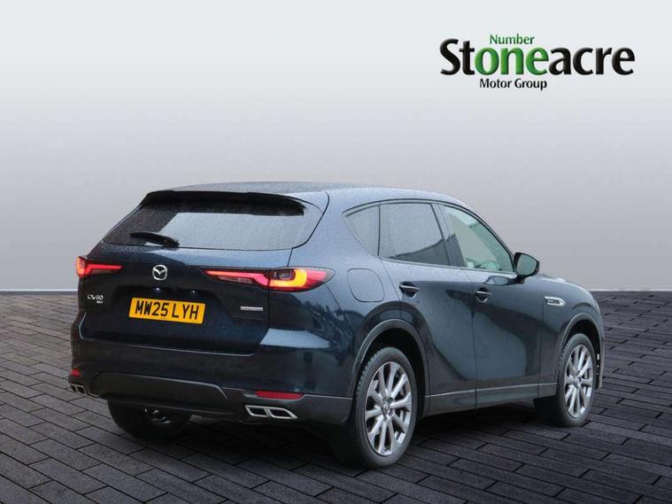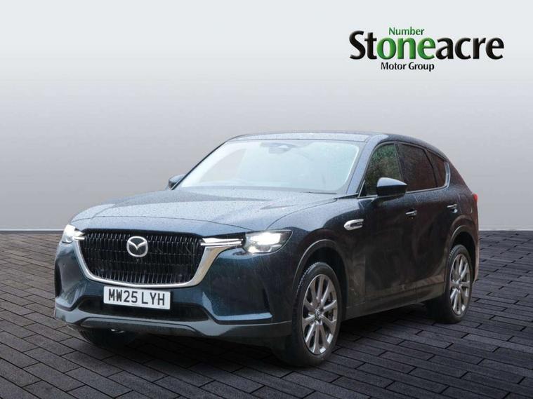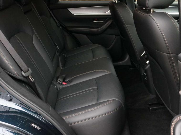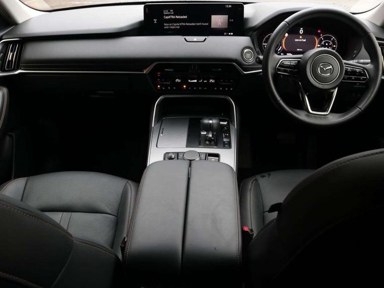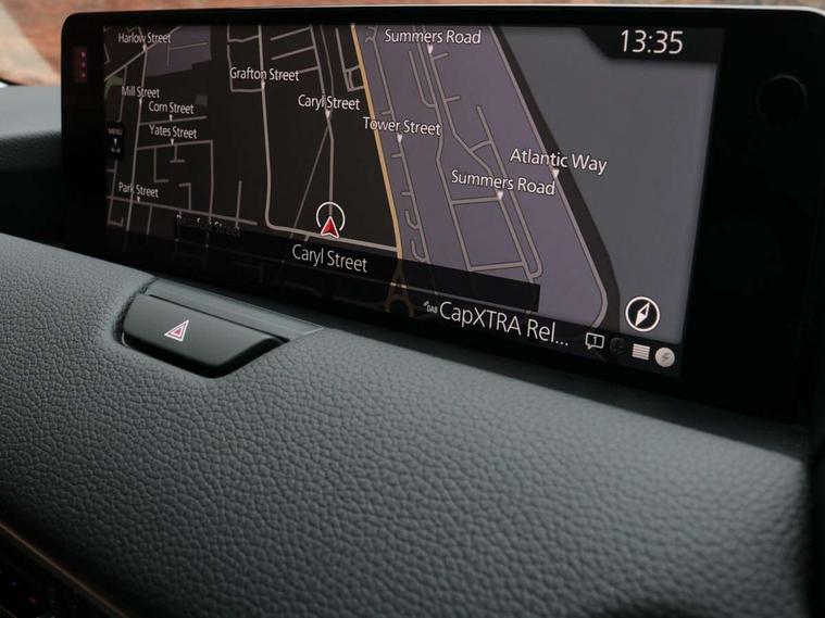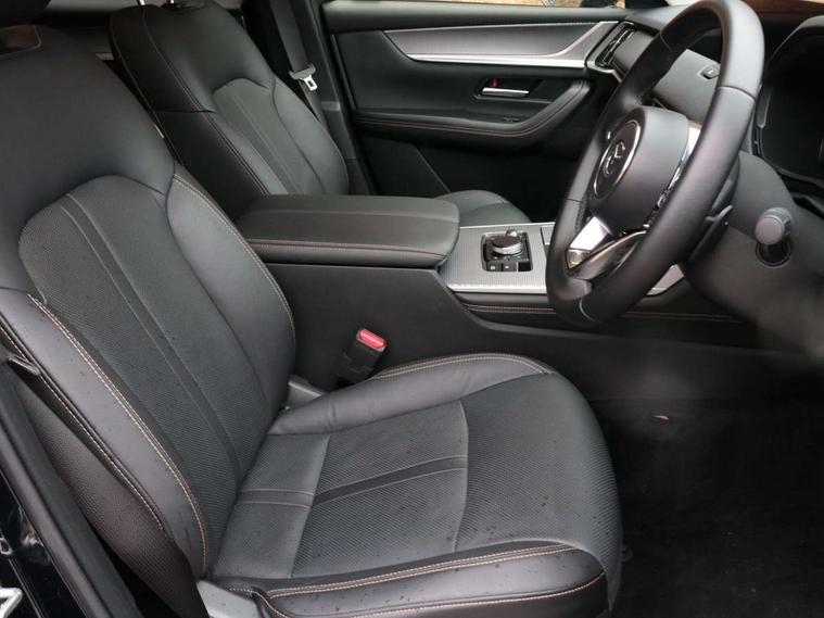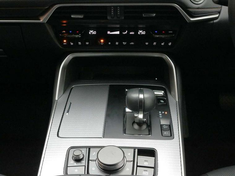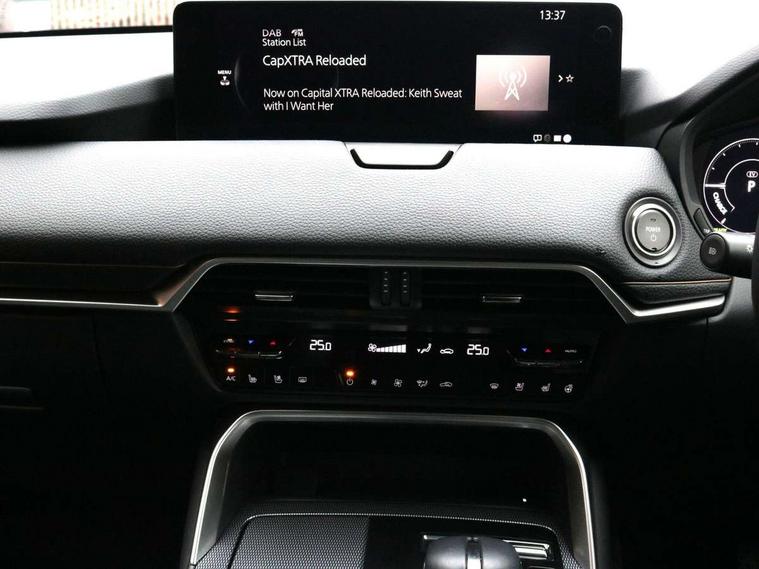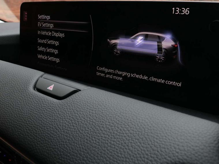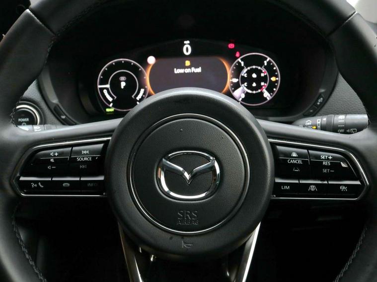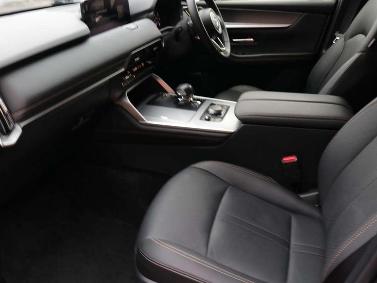 Emergency lane keeping with blind spot assist, Low washer fluid warning light, 12.3" Colour entertainment centre display with mazda connect infotainment, 12.3" TFT Colour display, Adjustable speed limiter, Blind spot assist, Blind spot monitoring with rear cross traffic alert, Cruise control, Distance alert system, Driver attention alert system, E-call with GPS, Emergency stop signalling system, Exit warning function, Front and rear parking sensors, Integrated bluetooth, Intelligent speed assist, Kinematic posture control, Lane keep assist system (LAS) with Lane departure warning system (LDWS), Mazda hybrid navigation system with european mapping, Multimedia Commander, PAS, Power lift gate with handsfree function, Power liftgate, Power start/stop button, Reversing camera with static guide lines, Speed alert, Traffic sign recognition enhanced with mandated excessive speed warning, Trip computer, Windscreen projected colour active driving display, Wireless apple car play/android Auto, Type 2 Mode 2 cable for AC charging via UK 3-pin plug, 7.2 kw On board Charger, Mi-Drive (Normal, Sport, Off-road, Towing and EV mode), Paddle shift, Type 2 Mode 3 cable for AC charging via home or public charge points, AM / FM / DAB radio with 8 speakers, Steering wheel mounted audio/bluetooth controls, USB-C inputs (x2 front and x2 rear), Auto dimming driver's door mirror, Automatic headlight levelling, B-pillar and C-pillar garnishes in gloss black finish, Body colour roof spoiler, Body coloured bumpers, Body coloured door mirrors, Chrome front side garish, Coming/leaving home lighting function, Dark plated headlight lense, Dusk sensing headlights, Electric front/rear windows with one touch auto up/down, Electrically adjustable, heated auto power folding door mirrors, Frameless auto dimming interior rear view mirror, Front kodo turn signal, Front wiper de-icer, Gloss black bar type front grille with bright finish signature wing, Headlight washers, High beam control, LED 3rd brake light, LED headlamps, LED rear signature combination lamps, Piano black window surrounds, Rain sensing front wipers with adjustable sensitivity and speed, Rear side wing doors, Rear wiper, Roof pillars and roof lining finished in lighter colour to soften the overall look, Satin black lower bumper, wheel arch and side mouldings, Signature LED daytime running lights, Silver decoration panel, 12v power outlet - front, 12V socket in boot, 3 height adjustable rear headrests, 3 seat bench in 2nd row, 40/20/40 split folding rear seats with quick levers in the boot, Cargo net, Chrome interior trim accents with steering wheel centre bezel, surround of engine start / stop button and glove box handle, Door panel trim vinyl leather with armrest, Driver and front passenger two rear grab handles with rear coat hooks, Driver and front passenger visors with covered vanity mirror and driver ticket holder, Driver seat manual slide, recline, height and seat tilt adjust, Driver, front passenger and two rear door pockets, Driver/passenger front seatback pockets, Dual zone climate control air conditioning with rear air vents, Featuring black vinyl leather dashboard trim with titanium coloured accents, Folding rear centre armrest with two cup holders, Front and rear signature illumination, Front centre storage with two cupholders, Front down lamp with front and rear foot lamps, Front headrests, Front passengers seat manual slide, recline and height adjustment, Glovebox illumination, Heated front seats with 3 stage setting, Heated leather wrapped steering wheel, ISOFIX child seat anchorage points attached on outer rear seats, Karakuri tonneau cover, Leather upholstery, Leather wrapped gear shift knob, LED illumination luggage compartment, Manual telescopic and tilt adjustment steering wheel, Practical and spacious front centre armrest storage, Rear seat recline function for rear passenger comfort, Remote fold down rear seats, Roof lining (ceiling and pillars) - Grey, Roof mounted sunglasses holder, Single front passenger seat, 3 point ELR front seat belts x2 with pretensioners, 3 point ELR rear seat belts, Active bonnet, Anti-lock braking system (ABS), Drivers knee airbag, DSC - Dynamic Stability Control, Electronic parking brake with auto disengage function and auto hold function, Front and rear curtain airbags, Front dual stage driver and single stage front passenger airbags, Front passenger airbag cut-off switch, Front side airbags, Front smart city brake support, Hill decent control, Hill launch assist, Manual rear child locks, Seatbelt reminder for driver/front passenger and rear seats, Traction control, Tyre pressure monitoring system (TPMS), Remote central locking with deadlocking and automatic door lock when driving, Smart keyless entry, Thatcham accredited alarm and immobiliser, Mesh metal film centre console panel, 18" Grey metallic alloy wheels, Emergency tyre repair kit,