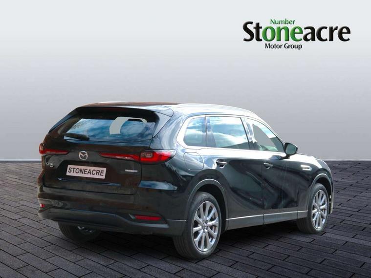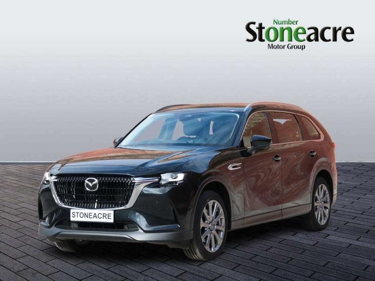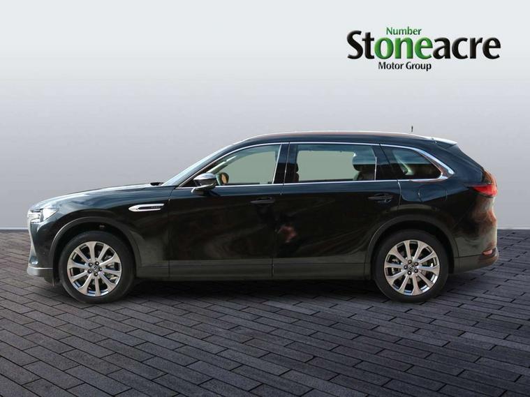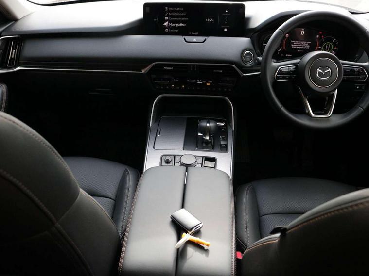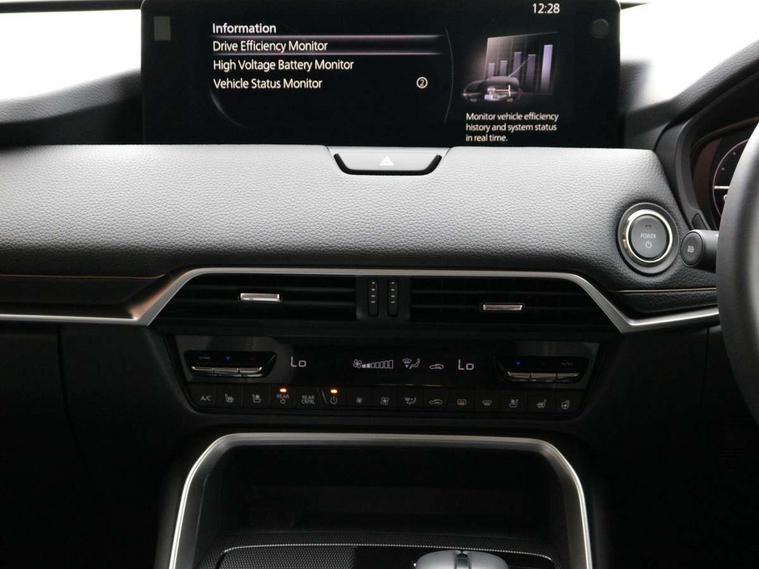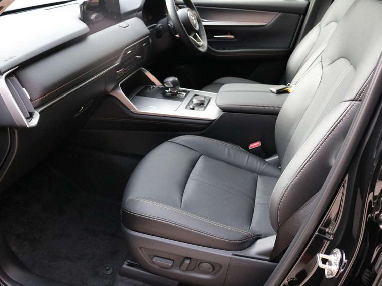Emergency lane keeping with blind spot assist, Low washer fluid warning light, 12.3" Colour entertainment centre display with mazda connect infotainment, 12.3" TFT Colour display, Adjustable speed limiter, Blind spot assist, Blind spot monitoring with rear cross traffic alert, Cruise control, Distance alert system, Driver attention alert system, E-call with GPS, Emergency stop signalling system, Exit warning function, Front and rear parking sensors, Integrated bluetooth, Intelligent speed assist, Kinematic posture control, Lane keep assist system (LAS) with Lane departure warning system (LDWS), Mazda Navigation System with european mapping, Multimedia Commander, PAS, Power lift gate with handsfree function, Power start/stop button, Reversing camera with static guide lines, Speed alert, Traffic sign recognition enhanced with mandated excessive speed warning, Trip computer, Windscreen projected colour active driving display, Wireless apple car play/android Auto, Type 2 Mode 2 cable for AC charging via UK 3-pin plug, 7.2 kw On board Charger, Internal Combustion Engine Sound Emulator, Mi-Drive (Normal, Sport, Off-road, Towing and EV mode), Paddle shift, Type 2 Mode 3 cable for AC charging via home or public charge points, AM / FM / DAB radio with 8 speakers, Steering wheel mounted audio/bluetooth controls, USB-C inputs (x2 front and x2 rear), Auto dimming driver's door mirror, Automatic headlight levelling, B-pillar and C-pillar garnishes in piano black finish, Black wheel arch and side mouldings, Body colour roof spoiler, Body coloured bumpers, Body coloured door mirrors, Chrome finish signature wing in front grille, Chrome front side garish, Coming/leaving home lighting function, Dark plated headlight lense, Dusk sensing headlights, Electric front/rear windows with one touch auto up/down, Electrically adjustable, heated auto power folding door mirrors, Frameless auto dimming interior rear view mirror, Front kodo turn signal, Front wiper de-icer, Gloss black front grille, Headlight washers, High beam control, LED 3rd brake light, LED headlamps, LED rear signature combination lamps, Piano black bar style front grille, Piano black window surrounds, Rain sensing front wipers with adjustable sensitivity and speed, Rear side wing doors, Rear wiper, Signature LED daytime running lights, Silver decoration panel, 12v power outlet - front, 12V socket in boot, 2 seat bench in 3rd row, 3 height adjustable rear headrests, 3 seat bench featuring folding centre armrest equipped with two cup holders 2nd row, 3 seat bench in 2nd row, 50/50 split folding 3rd row rear seats, 60/40 split folding 2nd row rear seats, Cargo net, Door panel trim - Vinyl leather with mesh metal film inlay, Driver and front passenger two rear grab handles with rear coat hooks, Driver and front passenger visors with covered vanity mirror and driver ticket holder, Driver seat manual slide, recline, height and seat tilt adjust, Driver, front passenger and two rear door pockets, Driver/passenger front seatback pockets, Front and rear signature illumination, Front centre storage with two cupholders, Front down lamp with front and rear foot lamps, Front headrests, Front passengers seat manual slide, recline and height adjustment, Glovebox illumination, Grey roof lining, Heated front seats with 3 stage setting, Heated leather wrapped steering wheel, ISOFIX child seat anchorage points attached on outer rear seats, Leather upholstery, Leather wrapped gear shift knob, LED illumination luggage compartment, Manual telescopic and tilt adjustment steering wheel, Practical and spacious front centre armrest storage, Rear seat recline function for rear passenger comfort, Remote fold down rear seats, Remote pre-heating/cooling, Roof mounted sunglasses holder, Single front passenger seat, Three zone climate control air conditioning with rear air vents for 2nd and 3rd row, 3 point ELR front seat belts x2 with pretensioners, 3 point ELR rear seat belts, Active bonnet, Anti-lock braking system (ABS), Drivers knee airbag, DSC - Dynamic Stability Control, Electronic parking brake with auto disengage function and auto hold function, Front and rear curtain airbags, Front dual stage driver and single stage front passenger airbags, Front passenger airbag cut-off switch, Front side airbags, Front smart city brake support, Hill decent control, Hill launch assist, Manual rear child locks, Seatbelt reminder for driver/front passenger and rear seats, Traction control, Tyre pressure monitoring system (TPMS), Remote central locking with deadlocking and automatic door lock when driving, Smart keyless entry, Thatcham accredited alarm and immobiliser, Dashboard panel - Vinyl leather, Mesh metal film centre console panel, 18" Grey metallic alloy wheels, Emergency tyre repair kit,