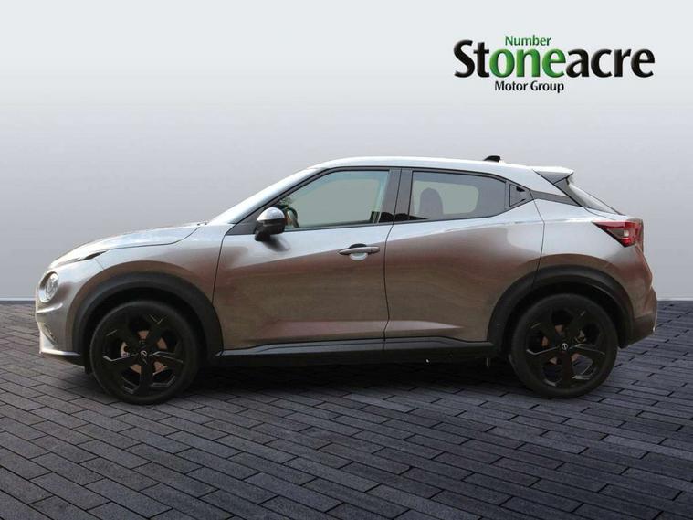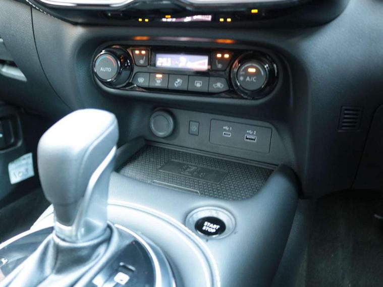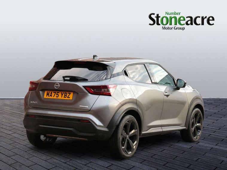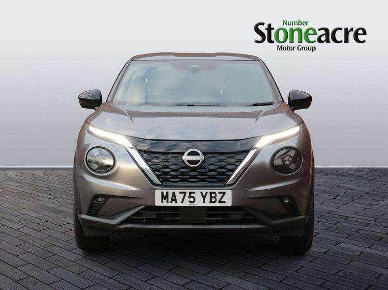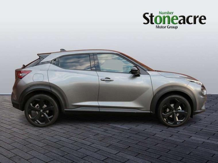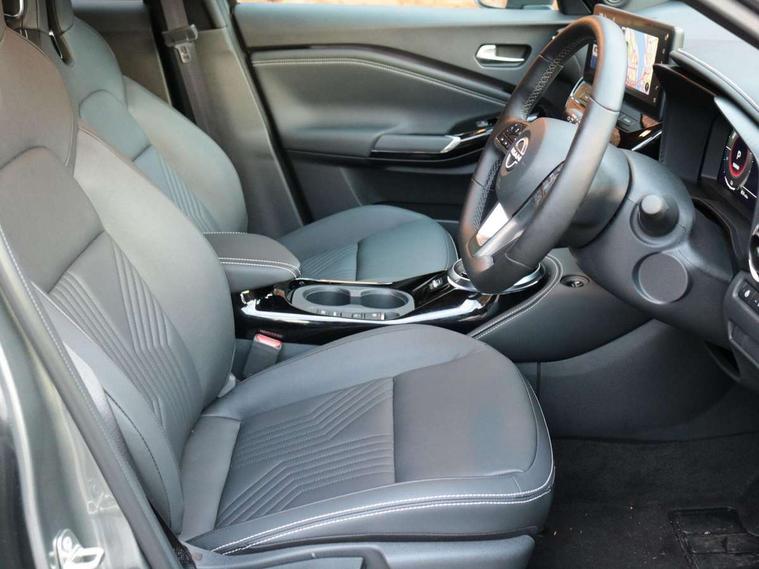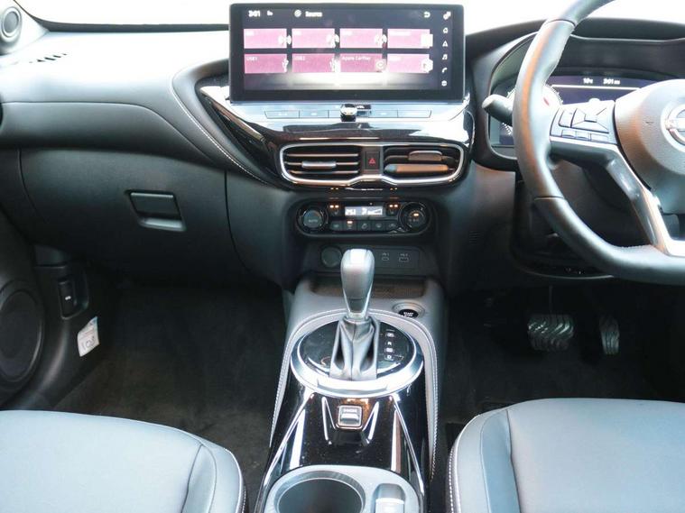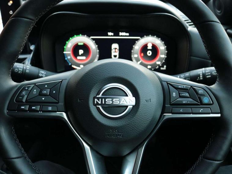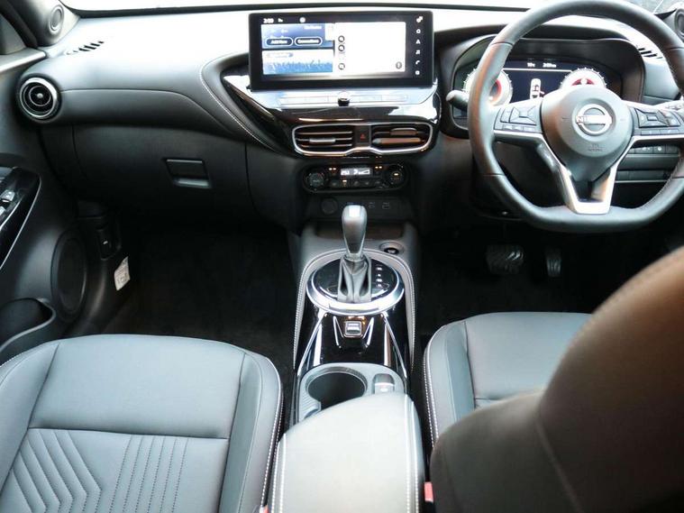 12.3" full colour TFT screen combimeter, Drive modes select (Eco, normal and sport), e-Pedal step, Emergency and breakdown call, EV mode switch, Front parking sensor, Intelligent driver alert system, Intelligent lane intervention, Lane departure warning system, Nissan connect 12.3" touch screen entertainment system, Nissan connect nav with TomTom traffic, Nissan connect services, Outside temperature sensor, Power Steering, Rear parking sensor, Stop/start button, Traffic sign recognition, Trip computer, Voice recognition, WiFi connectivity, Wireless Apple CarPlay and Google Android auto, Wireless Smartphone charger, 10 Bose speakers 8 speakers and 2 headrest speakers for driver/passenger seats, 2 X Rear console USB port, Bluetooth system, USB, Aux-in and 12V socket, Bose personal plus audio system, DAB Digital radio, Auto dimming frameless rear view mirror, Automatic hazard signal with emergency stop signal, Body colour door handles, Electrically adjustable door mirrors with integrated indicators, Follow me home headlights, Front and rear electric window with one touch driver window, High beam assist, LED 3rd brake light, LED daytime running lights, LED front fog lights, LED headlamps, LED rear fog lamp, LED rear lamps, One touch passenger window, Rear privacy glass, Rear side wing doors, Rear wiper, Roof spoiler, Shark fin roof antenna in solid Black, Solid black door mirrors, Three blink turn signal, 3 height adjustable rear headrests, 3 seat bench in 2nd row, 60/40 split folding rear seat, Card holder on driver sunvisor, Door ambient lighting, Driver seat back pocket, Driver side rear coat hanger, Driver/passenger sunvisors and vanity mirrors, Front and rear cabin lights, Front armrest, Front door pockets with bottle holders, Front head restraints, Front/rear passenger grab handles, Gear console ambient circle lighting, Height adjustable driver's seat, Internal chrome door handles, Luggage board, Luggage space lighting, Monoform sporty seats, Multifunction steering wheel, Passenger seat back pocket, Rear door bottle holders, Single front passenger seat, Smooth synthetic leather steering wheel, Synthetic leather kneepad, Synthetic leather shift knob, Synthetic leather upholstery, Telescopic steering wheel adjustment, Two cupholders in front centre console, Two rear isofix child seat anchorage points with top tether, Welcome light and console tray ambient lighting, Comfort pack - Juke, Heat pack with height adjustable passenger seats - Juke, ProPilot pack - Juke Auto, ABS with EBD and brake assist, Active ride control, Active Trace Control, Driver and passenger airbags, Driver and passenger side airbags, Electric handbrake with auto hold function, Electronic Stability Programme (ESP), Front and rear curtain airbags, Height adjustable seatbelts, Hill start assist, Intelligent emergency braking with pedestrian and cyclist recognition, Rear door child safety locks, Seatbelt reminder for driver/front passenger and rear seats, Three 3 point rear seatbelts, Traction control, Tyre pressure monitoring system, VDC Dynamic Vehicle Control, Alarm, Immobiliser, Intelligent key and start push button with walk away lock and approach unlock functions, Remote central locking, 19" Alloy wheels, Tyre puncture repair kit,