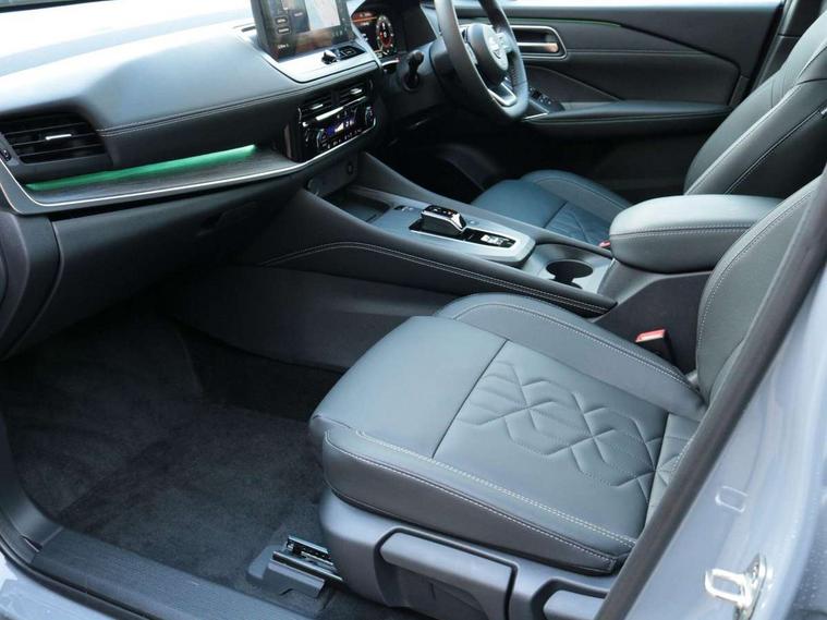 2 front USB-C ports, 2 rear USB-C ports, 360 degree Intelligent around view monitor with moving object detection, Advanced windscreen head up display, Blind spot warning, Drive assist custom mode, Drive modes (sport, normal, eco), Driver drowsiness and attention warning, e-Pedal step, Electric speed sensitive power steering, Emergency and breakdown call, Emergency lane keep assist, Emergency Stop Signal (ESS), Engine start/stop button, EV mode switch, Event data recorder, Front and rear parking sensors, Full Digital 12.3" TFT Digital Combimeter, Google virtual personal assistance, Hands free power tailgate, Idle stop/start system, In-car WIFI hotspot, Intelligent Cruise control (ICC), Intelligent driver alert system, Intelligent forward collision warning, Intelligent lane intervention, Intelligent speed assist, Lane departure warning system, Nissan connect 12.3 inch touchscreen infotainment system, Nissan connect navigation with google maps, Nissan connect services 2.0 (Google Automotive System), Outside temperature sensor, Propilot assist with Navi-Link, ProPilot park, Rear cross traffic alert, Remote control services - door locks, lights, horn and car locator, Reversing detection, Traffic jam pilot, Traffic sign recognition with legal speed adjustment, Trip computer, Wireless Apple CarPlay/Android Auto, Wireless charging pad, Limited slip differential, 6 speakers, AM/FM audio system with DAB, Bluetooth audio streaming, Auto dimming frameless rear view mirror, Auto rear wiper when reversing, Body colour mirror caps, Body coloured door handles, Bodyside mouldings, Chrome side window finisher, e-POWER badging, Electric auto folding door mirrors, Electrically adjustable and heated door mirrors with LED turn indicator, Follow me home headlights, High beam assist, Intelligent auto headlights, LED 3rd brake light, LED daytime running lights, LED headlights with adaptive driving beam, LED rear lights, LED sequential turn lights, One touch front and rear electric windows with remote opening and closing, One touch passenger window, Partially body coloured bumpers, Rain sensing wipers, Rear privacy glass, Rear roof spoiler, Rear side wing doors, Rear styling plate, Reverse tilting door mirrors, Shark fin antenna, Silver roof rails, Splash free rain sensing wipers, Super RED rear LED lights, Super UV and infrared cut glass, Thermaclear heated windscreen, 12v power socket in dashboard and luggage, 3 bench rear seats in 2nd row, 3 rear headrests, 60/40 split folding rear seat bench, Chrome interior door handles, Dark headlining, Driver and passenger sunvisors with illuminated vanity mirrors, Driver seat back pocket, Dual zone automatic climate control with pollen filter, e-POWER shifter, Electrically adjustable driver seat, Electrically adjustable lumbar support for driver, Fixed Glass roof with electric sunshade, Front centre console and armrest, Front cupholders, Front door with bottle holders, Heated front seats, Heated steering wheel, Height adjustable front headrests, Height adjustable passenger seat, Luggage board system, Luggage space lighting, Manual adjustable lumbar support for passenger, Multifunction steering wheel, Passenger seat back pocket, Quilted/PVC upholstery, Rear door bottle holders, Rear seat armrest with 2 cupholders, RGB ambient light (Full area coverage), Single front passenger seat, Smooth leather steering wheel, Tilt/telescopic adjustable steering wheel, Two rear isofix child seat anchorage points with top tether, 3x3 point rear seatbelt pretensioners + load limiters, ABS with EBD and brake assist, Autonomous emergency braking, Child locks on rear doors, Curtain and front side, far side airbags, Driver and passenger airbags, Driver, passenger and 2nd row rear seat belt reminder, Electric handbrake with auto hold function, Front seatbelt pretensioners + load limiters, Height adjustable front seatbelts, Hill start assist, Intelligent blind spot intervention, intelligent front emergency braking, Intelligent rear automatic braking, Tyre pressure monitoring system, Vehicle dynamic control, Engine immobiliser, Intelligent key with walk away lock and approach unlock functions, Remote central door locking with deadlocking, Thatcham alarm, 19" Diamond cut alloy wheels, Tyre puncture repair kit,