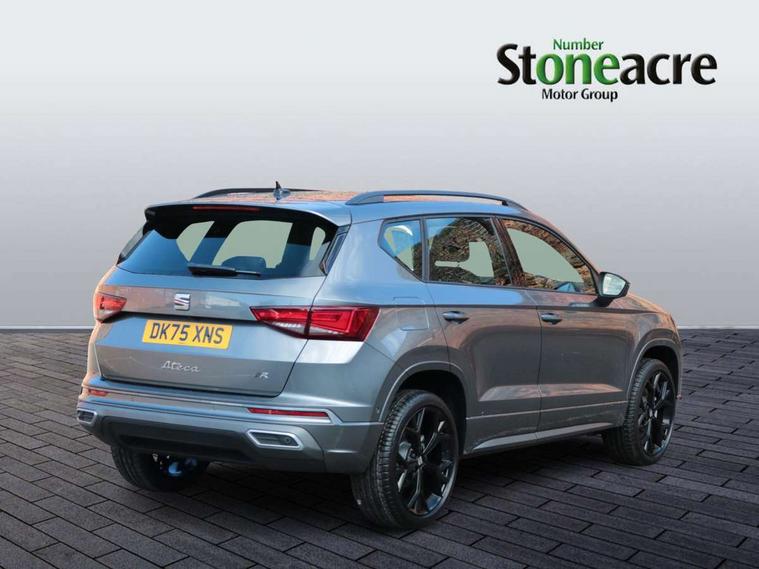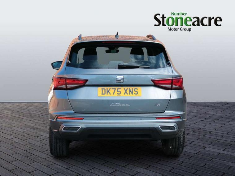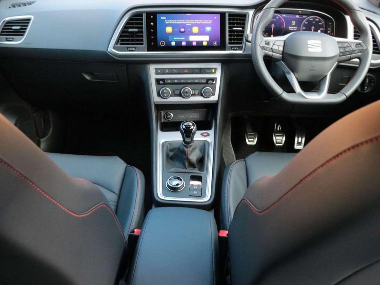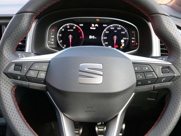10" Digital cockpit, Bluetooth audio streaming with handsfree system, E-call, Electric tailgate with virtual pedal, Outside temperature gauge, Progressive power assisted steering, SEAT drive profile with driving experience button - Normal, Sport, Eco and Individual mode, steering and throttle response, Self parking functionality (includes front and rear parking sensors), Speed limiter, Start/stop system, Top view camera with rear view camera, Trip computer, wired and wireless full link smartphone integration, Wireless phone charger, Steering wheel mounted audio/phone controls, Black roof rails, Black side window trim, Body colour bumpers, Body coloured wheel arch surrounds, Chrome front grille frame, Dark tinted rear windows, Daytime running lights, Door mirrors with welcome light silhouette, Dynamic headlight range control with self adjusting whilst driving, Electric adjustable/heated/folding door mirrors, Front and rear electric windows, Illuminated aluminium front door sill, LED 3rd brake light, LED headlamps with lens and LED front fog lamps with cornering function, LED rear tail lights with dynamic indicators, Rear exhaust tailpipe, Rear fog lights, Rear side wing doors, Rear spoiler, Rear wash/wipe, Variable front intermittent wipers, 12V socket in front, 3 seat bench in 2nd row, 60/40 split folding rear seat, Aluminium pedals, Black greenhouse interior roof, Dual zone climate control, Electric adjustable driver seat with memory function, Front and rear head restraints, Front centre armrest, Front seat back storage pockets, Heated front seats, Height adjustable passenger seats with lumbar adjustment, ISOFIX points in outer rear seats with top tether anchorage points, Leather sports steering wheel and gear knob, Leather upholstery with front comfort seats, Rear armrest and easy back seat release mechanism from boot, Single front passenger seat, Convenience pack - Ateca, Interior lighting pack - Ateca, Navigation system pack with DAB - Ateca, Safety and driving pack (L) - Ateca, Safety and driving pack with attention and drowsiness assist - Ateca, 3x3 point rear seatbelts, ABS, Traction control system (TCS), Electronic stability control (ESC) and Electronic differential lock system (XDS), Airbags - Driver and front passenger airbag with deactivation, front side, two curtain and driver's knee airbags, Electric parking brake with auto hold function, Front and rear seatbelt reminder, Hill hold control, Manual rear child locks, Single tone horn, Tyre pressure monitoring system, Alarm, Keyless entry, Locking wheel bolts, Remote central locking, Chrome interior detailing, 19" Exclusive alloy whelels 36/10 in glossy black, Tool kit,