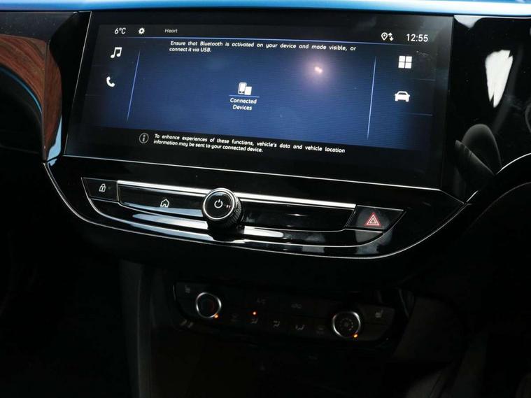 7 inch digital instrument cluster display, Breakdown call (b-call), Central facia display with digital clock, outside air temperature and audio information, Cruise control with intelligent speed limiter, Driver drowsiness alert system, E-call, Engine oil life indicator, Front camera system, Instrumentation - Speedometer, rev counter, low fuel gauge warning light + water temperature gauge warning light, Lane departure warning, Lane keep assist, Lights on audible warning, Multi function trip computer, Pre conditioning of vehicle temperature, RDS with traffic programme, Rear parking distance sensors, Remote check of battery level programming and charge management, Service indicator, Smartphone projection, Speed sensitive power steering, Speed sign recognition, Start/stop system, Vauxhall connect box, Vehicle status and information, Wireless Apple CarPlay/Android Auto, Electronic returnless fuel system, Petrol Particulate Filter, Under body shield for aero, AM/FM stereo radio, Bluetooth A2DP audio streaming function (Advanced audio distribuition profile), DAB Digital radio, Multimedia with 10-inch touchscreen, Six speakers, Steering wheel audio, phone and cruise controls, USB type C port, 3rd brake light, Automatic headlight control system, Black door mirror housings, Black lower side window mouldings, Black rear griffin badge and model lettering, Body colour door handles, Body colour rear bumper, Bonnet/headlight/wiper structure, Corsa lettering in tailgate, Dark tinted rear side windows + tailgate window, Electrically adjustable and heated door mirrors, Electrically operated front and rear windows with safety auto reverse and one touch up/down facility, Electrochromic automatic anti-dazzle rear view mirror, Flexible roof mounted aerial, Glazed tailgate and heated rear window with wash/wipe facility, Halogen tail lamps, Hazard warning lights, Headlamps for left side traffic, High beam assist, High gloss black finish B pillar, Intelli-LED headlights, LED daytime running lights, Rain sensitive windscreen wipers, Rear fog lamp, Rear reversing lights, Rear side wing doors, Rear wiper, Solar heat absorbing windscreen and windows, Sports front and rear body styling for upper and lower bumper design, Two speed windscreen wipers with variable intermittent wipe, Windscreen and side window demist vents, 12V power sockets, 3 bench rear seats in 2nd row, 4 speed fan with illuminated controls, 6 way manual adjustable co-driver seat height up/down, reach fore/aft, backrest upright/recline, 6 way manual adjustable driver seat height up/down, reach fore/aft, backrest upright/recline, 60/40 split folding rear seat, Air conditioning with air recirculation facility, Banda cloth upholstery, Black headliner, Cabin particulate filter - removes dust, airborne particles and pollen, Comfort front seats, Driver/passenger sunvisors with vanity mirrors + covers, Flat bottomed steering wheel, Four adjustable facia vents, Front cupholder, Front headrests, Height adjustable head restraints, Illuminated glovebox with lid, Interior courtesy light, Internal chrome door handles, LED boot light, Polyurethane gear knob/lever, Reach and rake adjustable steering column, Rear cupholder, Rear headrests, Right hand drive (RHD), Single dome lamp with dual front reading lamps, Single front passenger seat, Two litre open door pockets, Vegan leather steering wheel, YES interior badging, Winter pack - Corsa, 3 rear 3 point seatbelts, Anti-lock braking system (ABS), Automatic emergency braking with pedestrian detection, Cornering brake control, Deactivation switch for front passenger's airbag, Drag torque control, Driver and front passenger airbags, front seat side impact airbags, full size curtain airbags, EBD - Electronic brakeforce distribution, Electrical child lock system in rear door latch, Electronic Stability Programme (ESP), Emergency brake assist, Forward collision alert, Front seatbelt unfastened audible warning and warning light, Front ventilated disc brakes - 381mm, Hill hold and start system, ISOFIX child seat mountings incorporating top tether anchor points located on second row rear seats, Manual handbrake, Rear drum brakes - 203mm, Seatbelt pretensioners, Single tone horn, Straight line stability control, Traction control, Tyre deflation detection system, 2 keys one folding with integral remote, Electronically protected audio equipment, Engine deadlock and immobiliser, Freewheeling door locks, Locking wheel nuts, Remote control central locking, Remote locking fuel filler flap, Steering column lock, Visible vehicle identification number, 16" Diamond-cut hi-gloss black alloy wheels - Yes Petrol, Tyre repair kit,