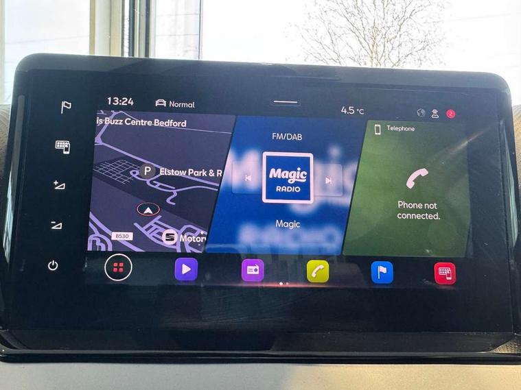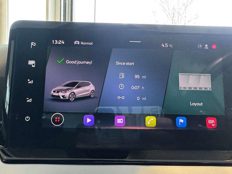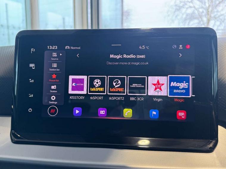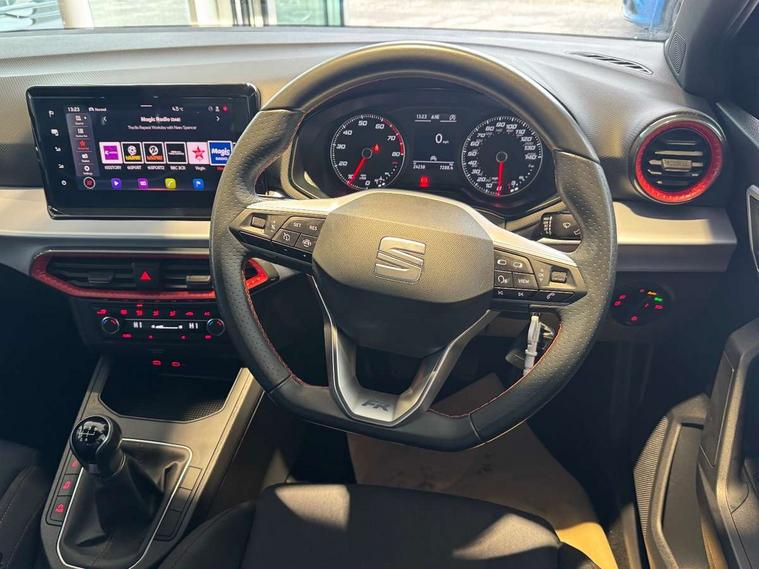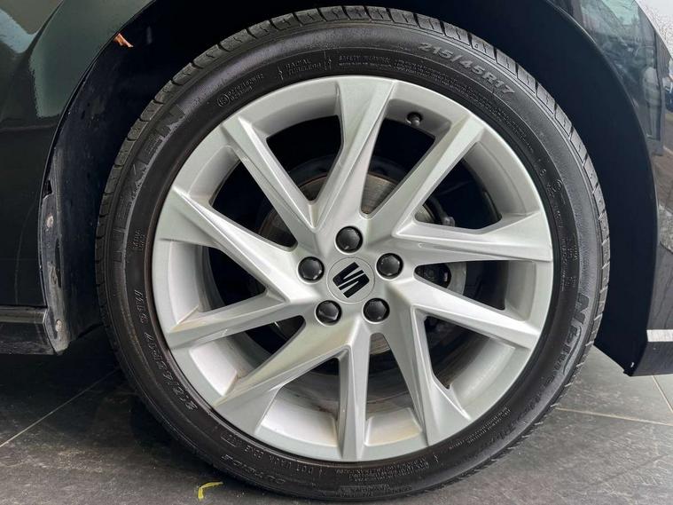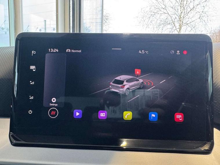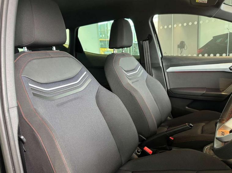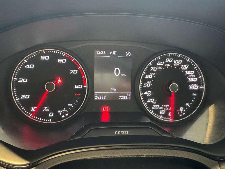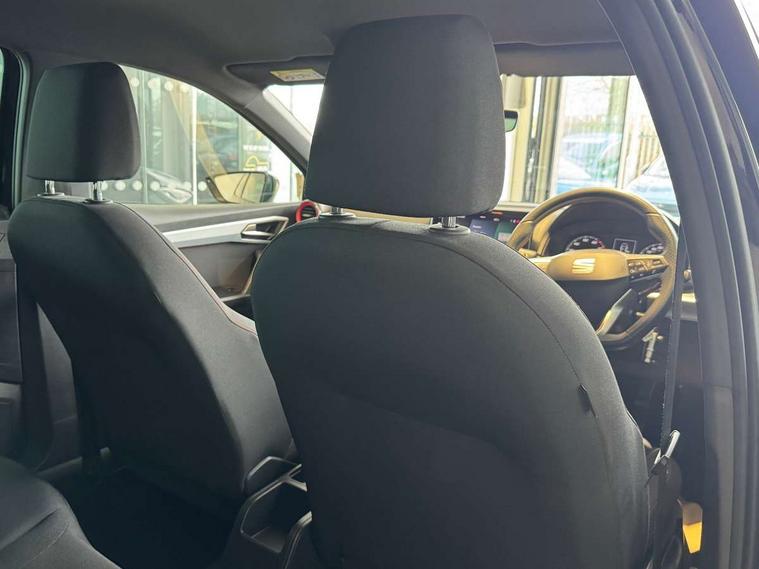 17" alloy wheels in Brilliant silver, Electronic engine immobiliser, Locking wheel bolts, Perimeter alarm and interior monitoring with backup horn and tow away protection, Remote central locking + deadlocks, Auxiliary input socket, Radio/MP3 player, SD card slot, Steering wheel mounted controls, 3 point seatbelts on all 3 rear seats, ABS, Active front headrests, Child locks on rear doors, Electronic stability control, Energy recovery system, Front assist forward collision warning and autonomous emergency braking, Front driver and passenger side airbags with curtain airbag and front passenger airbag deactivation, Hill hold control, Multi-Collision braking, Seat belt reminder for front and rear seats, Tiredness recognition system, Tyre pressure monitoring system, Anti theft roof antenna, Auto dimming rear view mirror, Automatic rain sensing wipers, Black door mirrors, Body colour bumpers, Body colour door handles, Brilliant black window surrounds, Dark tinted rear windows, Electric adjustable/heated/folding door mirrors, Electric front windows, Electric headlight adjustment, Electric rear windows, Front/rear fog lights, FULL LED automatic headlights with dynamic headlight range control, coming and leaving home, LED daytime running lights, LED tail lights, Rear spoiler with FR twin exhausts, 60/40 split folding rear seat, Ambient interior lighting, Chrome detailing and black headlining, Cloth upholstery, Dual zone climate control with combination filter, Front courtesy lights, Front cupholders x 2, Front reading lights, Gear shift indicator, Glovebox, Height adjustable front and rear headrests (five), Height adjustable front seats, Height/reach adjust steering wheel, Illuminated air vent surrounds, Illuminated boot, Instrument lighting with brightness control, Isofix, Leather multifunction flat bottomed sports steering wheel, Passenger sunvisor, Sports seats, Sunvisors with mirror and driver side card holder, 'Lights On' Reminder warning buzzer, 9.2" touchscreen navigation system with type C USB socket, Voice control and DAB/AM/FM radio, Auto start and stop system, Bluetooth audio streaming with handsfree system, Digital clock, Full link smartphone integration with mirror link, wireless apple carplay, Google android auto + USB Type C cable for apple and android devices, Lane assist, Low fuel warning light, Outside temperature gauge, Power Steering, Seat connect with safety, serivice, remote and online, SEAT drive profiles and ECO function, SEAT logo boot release, Speed limiter, Trip computer, Sports suspension,