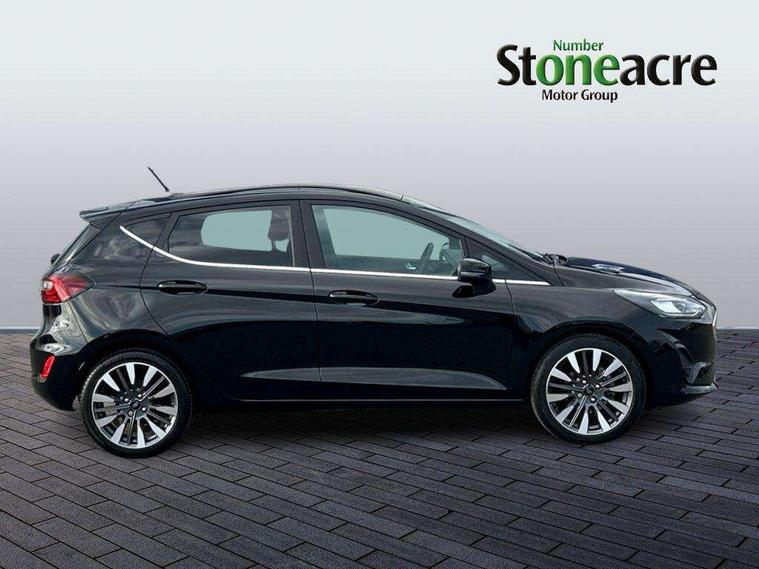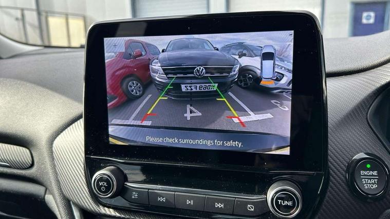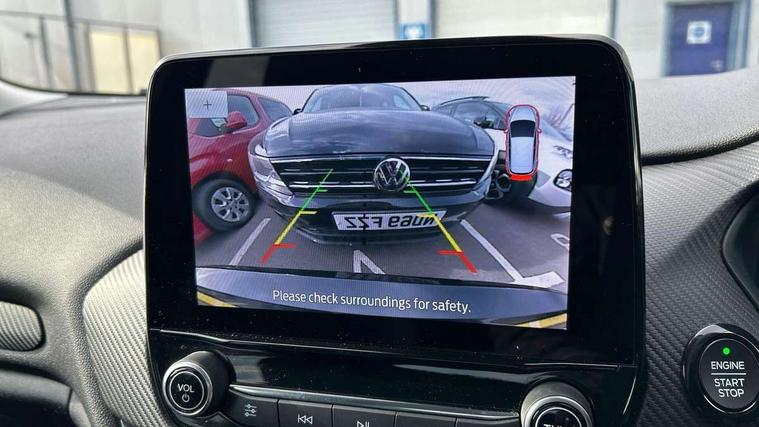 12.3" Full digital cluster, Driver alert system, Electric power steering, Ford easy fuel, Ford SYNC 3 Nav with DAB radio, 8" touch screen, voice control, emergency assist, Apple CarPlay/Android auto, 2x USB, 6 speaker, Ford pass connect, Rear parking distance sensors, Rear view camera, Selectable drive modes (Normal, Sport, Track), Speed sign recognition, Trip computer, Wrong way alert, Standard suspension, Auto high beam, Body colour bumpers, Body coloured electrically operated with side indicators, Electric front windows/one touch facility, Front titanium scuff plates, High gloss chrome surround with satin grille insert, LED Night signature to rear lights, LED third brake light, Quickclear heated windscreen, Rain sensing wipers and auto dimming rear view mirror, Rear privacy glass, Rear side wing doors, Rear wiper, 3 seat bench in 2nd row, 4 way manually adjustable passenger seat, Adjustable head restraints, Centre console with opening armrest, 2x cupholders, 12v and USB, Drivers and Passenger lumbar support, EATC - Electronic Auto Temperature control, Front floor mats in velour, Leather gaiter, LED ambient lighting (Ice blue), Manual 4-way driver seat adjust, Sensico partial premium leather upholstery with metal grey stitching, Sensico wrapped steering wheel, Single front passenger seat, NCAP Pack - Fiesta, Winter pack [GTBAB]- Fiesta, 3 point seatbelts on all rear seats, Electronic stability control with hill start assist, Tyre pressure monitoring system, Ford keyfree system with Keyless entry and keyless start, MyKey system, Remote central locking, Thatcham alarm with power door dead locks, 17" 10 spoke alloys with pearl grey machined finish,