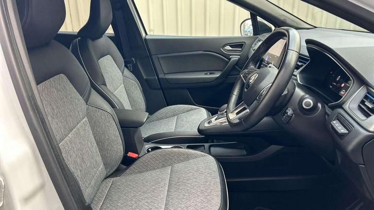 10" TFT Driver information display, Blind spot warning, eCall emergency call system, Eco mode, EV button to activate pure mode, Gear change indicator, Lane departure warning system, Lane keep assist, Multisense with 3 driving modes + 8 ambient lighting colours, Traffic sign recognition, Trip computer, Variable assistance power steering, 6.5m 3 pin socket charging cable, 6m Type 2 mode 3 charging cable, EasyLink multimedia system, scheduled charging, heating and air conditioning, EasyLink Nav 9.3" portrait touchscreen with navigation, bluetooth, DAB radio, USB ports, compatible with Apple carplay/Android auto, 3rd brake light, Auto dimming rear view mirror, Automatic front wipers with rain sensors, Automatic headlights, Automatic high beam - AHB, Black side door protection with chrome effect, Blue and copper touches on front bumper, front wing and C pillar, Body colour door handles, Body coloured bumpers, C Shaped LED front and rear lighting signatures with 3D effect on the rear lights, Chrome around front air deflectors, on front wing deco element and window lining, Drivers one touch window with anti-pinch feature, Electric adjustable/heated/folding door mirrors, Electric rear windows, Extra tinted glass in rear windows and tailgate, Front grille with chrome upper trim, Full LED headlights, Grey front and rear skid plate, LED daytime running lights, LED front fog lights, LED rear fog light, Longitudinal roof bars, Rear side wing doors, Rear wing door, Rear wiper, Shark fin antenna, Variable speed on front windscreen wipers, 12V Accessory socket, 3 rear headrests, 60/40 split and fixed base rear seat bench, Automatic climate control with one touch demist function, Centre console storage tray, E-TECH badge on central console, B pillar and tailgate, E-TECH floor mats, E-TECH illuminated door sills, E-Tech launch edition cloth upholstery, Flying console with e-shifter, Front head restraints, Glovebox, Heating system with pollen filter, Height adjustable driver's seat, Height adjustable passenger seat, Height/reach adjust steering wheel, ISOFIX child seat fixing points on rear outermost seats, Leather steering wheel, LED front roof lights, Middle console with armrest and storage, Rear air vents, Single front passenger seat, Sliding centre console box, Sliding rear bench, Specific white central console, dashboard and arm rest with blue touches, 3 rear seatbelts, ABS+EBA, AEBS, B Brake Mode - One pedal driving with increased regenerative braking, Distance warning alert, Driver and front passenger, side, head and curtain airbags, Driver height adjustable seat belt, Electric parking brake with auto hold function, Electronic stability control, Front and rear no seatbelt warning sound, Front dash warning indicator in case of heavy braking, Front driver and passenger side airbag deactivation, Hill start assist, Rear door and window child locking function for rear door, Tyre pressure warning light, Anti drill door locks and locking fuel cap, Central door locking, Deadlocking system, Hands free keycard with push button and start/stop function, RAID (Renault Anti-Intruder Device) automatic door locking, Black soft touch dashboard, 18" Pasadena diamond cut alloy wheels with grey inserts, Tyre inflation kit,