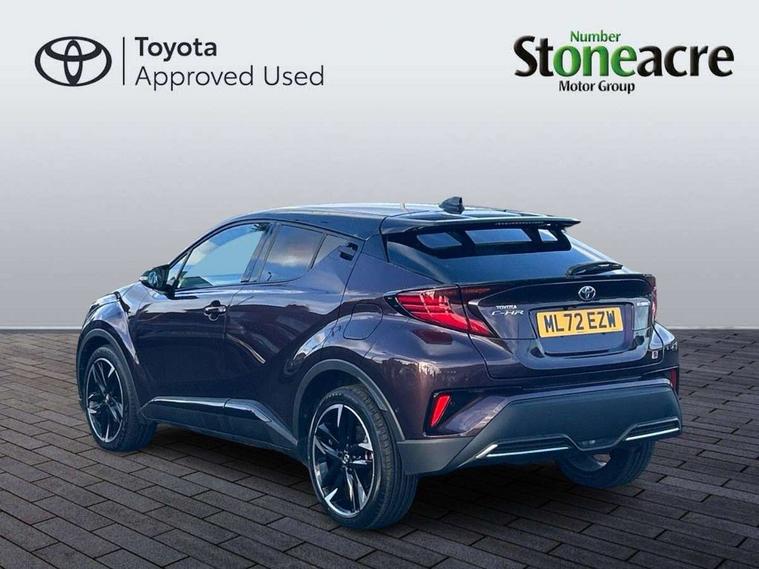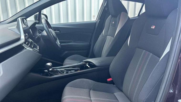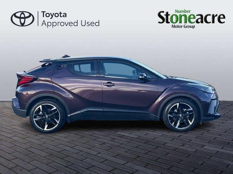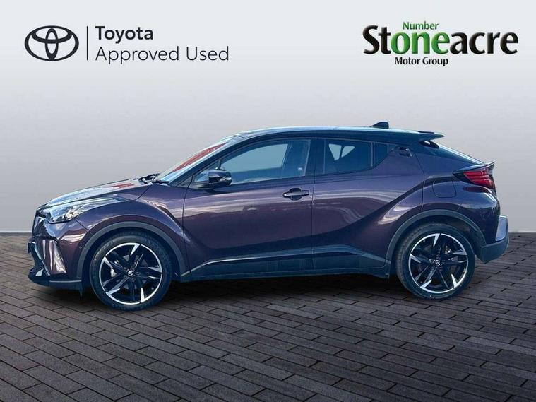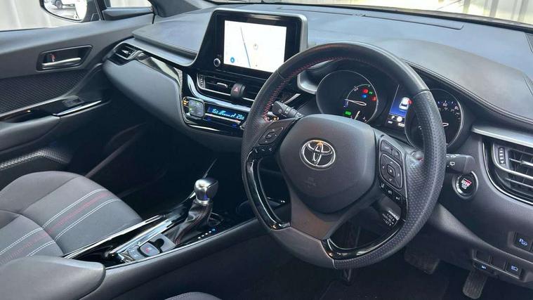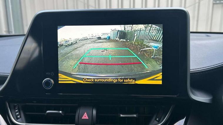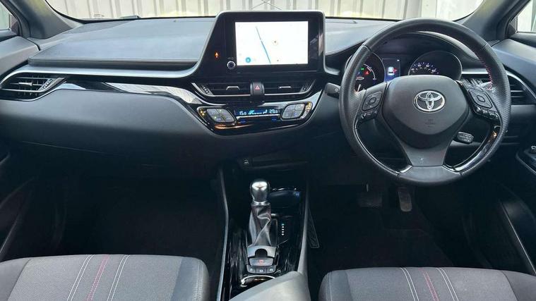 4.2" coloured TFT screen for multi-information display, Adaptive cruise control, Bluetooth connectivity, E-call, Electric power steering, Hybrid system indicator, Lane departure alert with steering control, Lane trace assist, Push button tailgate release, Remote boot door release in cabin, Remote boot door release in key, Reversing camera, Road sign assist - RSA, Simple Intelligent parking assist, Smart voice assist, Touch 2 Go navigation system, Trip computer, Voice recognition, Wireless smartphone integration, Vehicle Stability Control (VSC), 6 speakers, AM/FM radio, DAB Radio (Digital Audio Broadcasting), Toyota touch 2 multimedia system with 8" display, USB connector, Wi-fi connectivity, Adaptive front light system, Adaptive LED Headlights, Anti-jam protection on power windows, Auto high beam, Auto up and down function on all power windows, Automatic headlight levelling, Automatic headlights, Automatic headlights cut-off, Black and body coloured rear bumper, Black upper front grille, Body colour door handles, Body colour door mirrors, Body coloured front bumper, Boot door release with push button, Chrome front lower bumper, Electric heated door mirrors, Follow me home headlights, Front and rear power windows, Front spoiler lip in black, Headlight cut off reminder, Honeycomb lower front grille, LED daytime running lights, LED fog lights, LED front light guide, LED High mounted stop light, LED rear brake lights, LED rear combination lights, Noise reduction layer on front windows and windscreen, Power adjustable door mirrors, Privacy glass, Rain sensor, Rear sequential indicators, Rear side wing doors, Rear spoiler, Rear tailgate, Rear window defogger, Rear window wiper, Shark fin antenna, UV-filter on driver and passenger windows, UV-filter on rear windows, 12v power outlet - front, 3 rear headrests, 3 seat bench in 2nd row, 3 spoke perforated leather steering wheel, 60/40 split folding rear seat, Adjustable rear headrests, Adjustable speed limiter switch on steering wheel, Assist grips front and centre pillar, Audio and telephone switches on steering wheel, Black front door assist grips, Blue ambient lighting on front cup holders, Blue ambient lighting on front doors, Boot light, Chrome interior door handles, Cloth upholstery, Driver and front passenger personal light, Driver and front passenger Whiplash Injury Lessening seats, Driver and passenger seatback pockets, Dual zone automatic air conditioning, Floor mats, Front cupholders, Front head restraints, Front sports seats, Glovebox with internal light, Hard tonneau cover, Heated driver and front passenger seats, Hooks for luggage holding net, Humidifying Nanoe air purifier, Illuminated entry system, Isofix attachments on outer rear seats, Leather gearshift, Light on driver sun visor, Light on passenger sun visor, Manual telescopic steering wheel, Manual tilt steering wheel, Manually height adjustable driver seat, Manually height adjustable front passenger seat, Manually reclining driver seat, Manually reclining front passenger seat, Manually sliding driver seat, Manually sliding front passenger seat, Microphone on front personal light, Mirror on driver sun visor, Mirror on passenger sun visor, Multimedia switches on steering wheel, Pollen filter, Power adjustable lumbar support on driver seat, Shopping bag hooks, Single front passenger seat, Slow opening on lower glovebox, Voice recognition switch on steering wheel, Tech with parking sensor pack - C-HR, 16 Disk front wheel brake, 3x3 point rear seatbelts, ABS+EBD+Brake assist, Electronic parking brake, Front and rear seatbelt reminder, Front passenger airbag on/off switch, Hill start assist control (HAC), Pre collision system with pedestrian detection, Pre-tensioners and force limiters, Rear door child safety locks, SRS Airbags - Driver + Front passenger, front side, front and rear curtain and driver's knee airbags, Toyota safety sense, Tyre pressure monitoring system, Tyre pressure warning system, Acoustic vehicle alert system (AVAS), Glass-breaking alarm sensors, Immobiliser, Intrusion alarm, Intrusion sensor, Motion sensor alarm, Power door locks, Power passenger window lock, Remote central locking, Black lower dashboard, Black upper dashboard, Piano black console, Silver deco line on upper dashboard, 19" Black machined alloy wheels, Tyre repair kit,