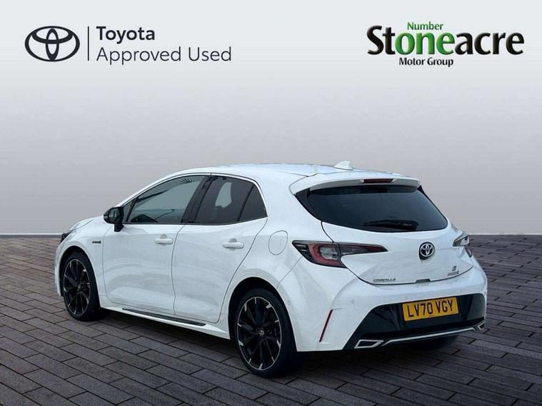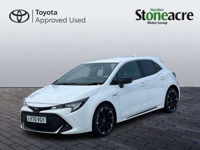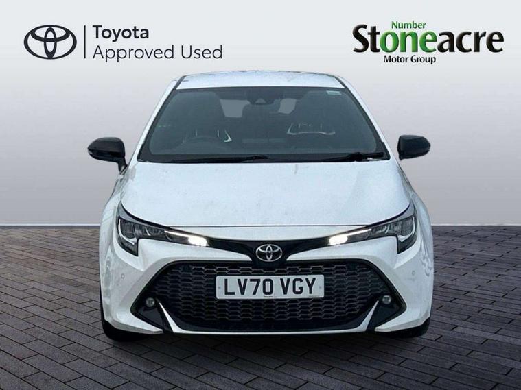 3D Colour multi information display, Bluetooth telephone connectivity, E-call, Electrically assisted power steering, Head up Display, Intelligent park assist, Push button start, Reversing camera, Smartphone integration with Apple CarPlay and Android auto, Speed limiter, Voice activation, Vehicle Stability Control (VSC), 2 ring combimeters with 7" colour TFT screen, 6 speakers, 8" multimedia and back monitor, AM/FM radio, DAB Digital radio, Toyota touch 2 with go navigation system, USB and Aux in connectors + 12V front outlet, Anti-jam protection on power windows, Auto dimming inside rear view mirror, Auto up and down function on all power windows, Automatic folding mirrors, Automatic headlights, Body coloured bumpers, LED daytime running lights, LED front fog lights, LED Headlights, LED rear combi lights with LED lightguide, Power adjustable heated door mirrors, Power front windows, Power rear windows, Privacy glass, Rain sensing wipers, Rear window wiper, Reverse tilting door mirrors, Shark fin antenna, 3 rear headrests, 3 spoke leather steering wheel + gear knob, Alcantara/partial leather upholstery, Clean air filter, Dual zone automatic air conditioning with ECO mode switch, Front head restraints, Heated seats, ISOFIX seat fixing (2 fixings on rear outer seats), Pollen filter, Power lumbar support, Sports seats, Steering wheel switches, Tilt/telescopic steering column, Whiplash Injury Lessening (WIL) feature (active headrest) for seats, Parking pack - Corolla, Toyota safety sense 2 pack - Corolla, 3x3 point rear seatbelts, Adjustable front driver seat belt extender, Anti lock braking system + Electronic brake force distribution, Brake assist function, Electronic parking brake, Front passenger airbag on/off switch, Front seatbelt reminder, HAC - Hill start assist control, Rear seat belt reminder, Seatbelt pretensioners and force limiters, Supplemental restraint system (SRS) 7 airbags - dual driver, dual side curtain, side impact and driver knee airbags, Traction control, Tyre pressure warning system, Alarm/immobiliser, Remote central locking + deadlocks, Tyre repair kit,