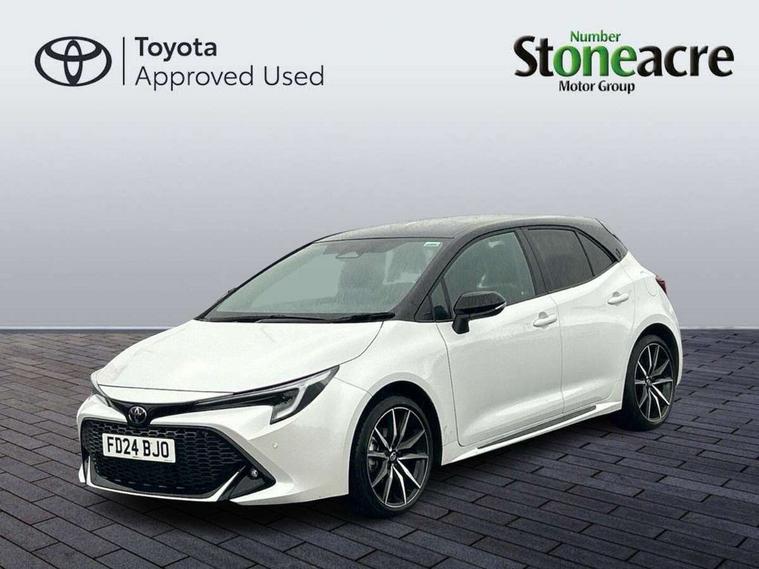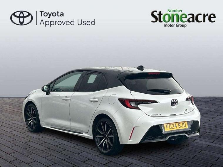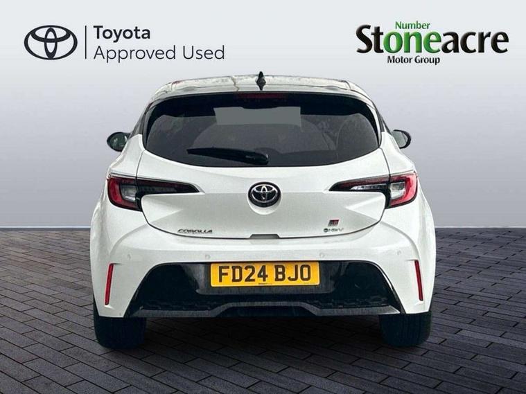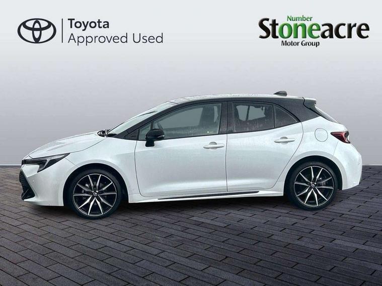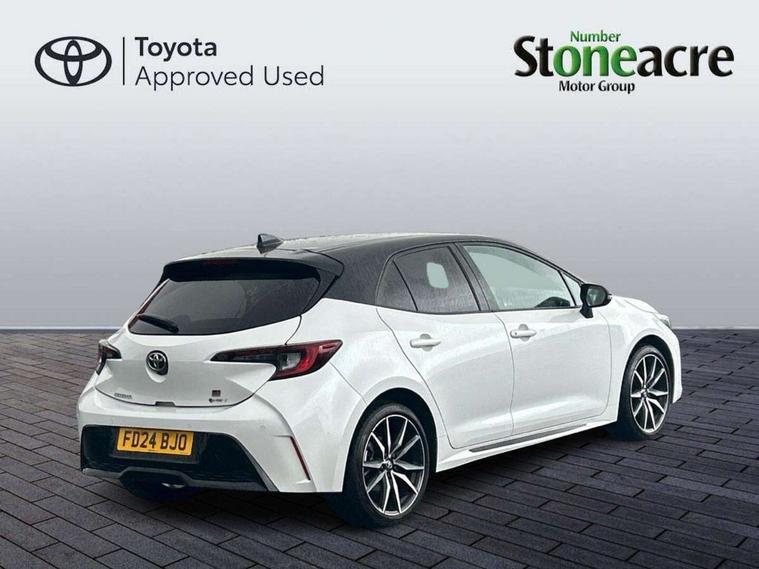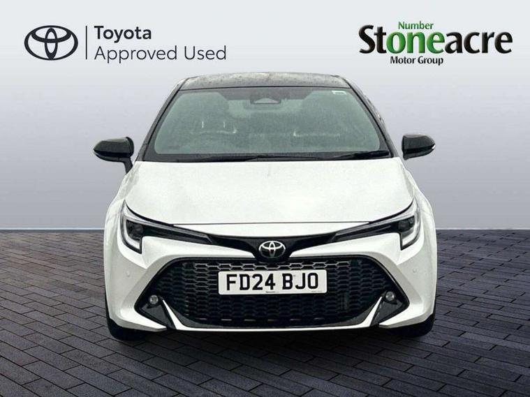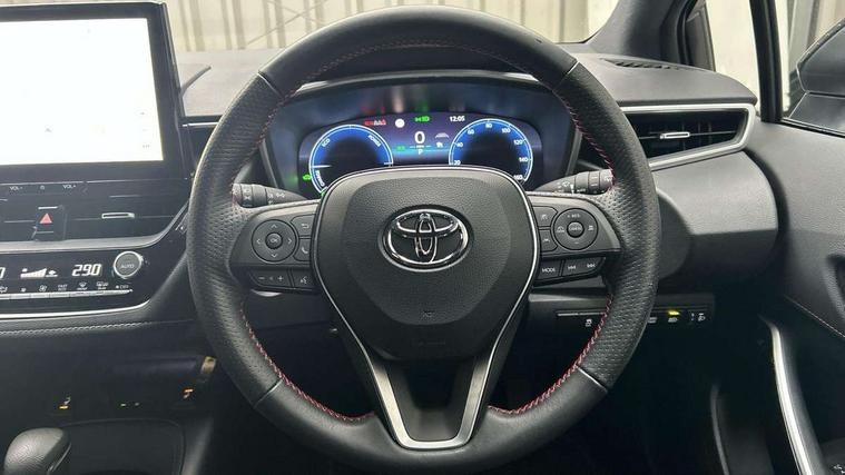 10.5" Multimedia display screen, Bluetooth telephone connectivity, Connected car functionality upgrade, tracker, remote status and e-care, Drive mode select (Eco, Normal), E-call, Electrically assisted power steering, EV drive indicator, Front and rear parking sensors with auto brake, Full Digital 12.3" TFT Digital Combimeter, Key reminder warning, Lane Departure Alert (LDA) switch on steering wheel, Memory on adjustable speed limiter, MyT connected services, Proactive driving assist (PDA), Reversing camera, Smart entry and push button start with GR Logo, Smartphone integration with Apple CarPlay and wired android auto, Tailgate, Toyota remote services, Toyota smart connect navigation, Wireless charger, Gasoline particulate filter, Vehicle Stability Control (VSC), 6 speakers, AM/FM radio, DAB Digital radio, Front USB-C in centre console, Front USB-C in dashboard, Smart voice assist/ Voice recognition, USB and Aux in connectors + 12V front outlet, Anti-jam protection on power windows, Auto up and down function on all power windows, Automatic folding mirrors, Automatic headlights with high beam assist, Black centre and side air vents, Black toyota logo in front, Body coloured bumpers, Body coloured door mirrors, Body coloured outside door handles, Dark chrome lower grille, Electrochromatic mirror, Follow me home headlights, GR Sport dark chrome front mesh grille and black rear grille, GR Sport exclusive under guard, GR sport scuff plates, LED daytime running lights, LED dual beam projector headlights, LED front fog lights, LED High mounted stop light, LED rear combi lights with LED lightguide, Manual headlight levelling system, New grille pattern, Noise reduction layer on windscreen, Piano black diffuser, Power adjustable heated door mirrors, Power front windows, Power rear windows, Privacy glass with UV filter, Rain sensing wipers, Rear side wing doors, Rear window defogger, Rear window wiper, Reverse tilting door mirrors, Rocker and door lower moulding, Roof spoiler, Satin chrome insert on front air vents, Satin chrome insert on front door assist grips, Satin silver front spoiler, Shark fin antenna, Tailgate release with push button, Time adjustment on intermittent wiper, Turning signal integrated indicators in door mirrors, Unique lower skirt, Unique side rocker with black insert, UV-filter on driver and passenger windows, 2 Shopping bag hooks in luggage compartment, 3 rear headrests, 3 seat bench in 2nd row, 3 spoke leather steering wheel with satin insert/red stitching + gear knob, 4 tie down hooks in luggage compartment, 60/40 split folding rear seat, Adaptive cruise control (ACC) switch on steering wheel, Adjustable speed limiter switch on steering wheel, Audio, multimedia and telephone switches on steering wheel, Black armrest on centre console box, Black gear shift console, Boot light, Centre room light, Driver and front passenger personal light, Driver and passenger assist grip, Driver and passenger seatback pockets, Driver and passenger sun visor with mirror and light, Dual zone automatic air conditioning with ECO mode switch, Fabric/synthetic leather upholstery, Front and rear cup and bottle holders, Front door pockets, Front head restraints, Front passenger seat, Front sliding synthetic leather armrest, GR Sports seats with partial leather bolsters, Heated seats, Illuminated entry system in room lamp, ISOFIX seat fixing (2 fixings on rear outer seats), Manual height adjustable for driver and front passenger seat, Manually tilt with sliding driver and front passenger seat, Nanoe-X air purifier, Parcel shelf, Pollen filter, Power window switches with satin chrome inserts, Rear armrest with 2 cupholders, Rear passenger coat hooks (2), Red stitching on gear shift, Remote air conditioning, Satin chrome inside door handles, Satin chrome surround on speedometer, Sliding armrest on centre console box, Slow opening glovebox with lights, Textile floor mats, Tilt/telescopic steering column, Voice recognition switch on steering wheel, Whiplash Injury Lessening (WIL) feature (active headrest) for seats, White ambient lighting on open tray and front cup holder, Toyota safety sense 3 pack - Corolla, 3x3 point rear seatbelts, Adjustable driver and front passenger seat belt extender to top anchor point, Anti lock braking system + Electronic brake force distribution, Brake assist function, Child locks on rear doors, Downhill Assist Control (DAC), Electronic parking brake, Emergency brake light signal (EBS), Front passenger airbag on/off switch, Front seatbelt reminder, HAC - Hill start assist control, Rear seat belt reminder, Seatbelt pretensioners and force limiters, Supplemental restraint system (SRS) 7 airbags - dual driver, dual side curtain, side impact and driver knee airbags, Traction control, Tyre pressure warning system, Acoustic vehicle alert system (AVAS), Alarm with motion sensor and immobilizer, Power passenger window lock, Remote central locking + deadlocks, GR Sport interior styling with accents and exterior styling, Satin chrome dash trim, Soft touch texture on upper dashboard, Stitching on lower dashboard, 18" Black machined face 10 spoke alloy wheels, Tyre repair kit, Unique wheel finish with red wheel cap,