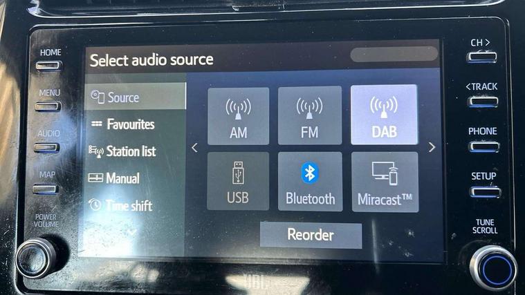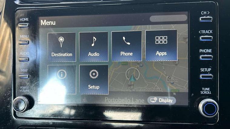 Piano black centre console, 15" Two tone alloy wheels, Tyre repair kit, Alarm, Child safety door lock, Driver power door lock, Immobiliser, Keyless smart entry with push button start, Power passenger window lock, Remote central locking, 2 x 4.2'' screen for multi information display, Audio switch on steering wheel, DAB Digital radio, JBL premium sound system with 10 speakers, USB and Aux in connectors + 12V front outlet, 3 point seatbelts on all seats, ABS, Acoustic vehicle alerting system, Electronic brake force distribution, Electronic parking brake, ESP, Hill start assist control (HAC), Manual on-off switch for passenger airbag, Pre collision system with pedestrian detection, SRS Airbags - Driver + Front passenger, front side, front and rear curtain and driver's knee airbags, Traction control, Tyre pressure warning system, Anti-jam protection on power windows, Auto headlight levelling, Auto up and down function on all power windows, Automatic rain sensing wipers, Automatically retractable door mirrors, Black centre pillar design, Black diffuser, Black rear pillar design, Body coloured bumpers, Body coloured door handles, Body coloured door mirrors, Electrochromatic rear view mirror, Front and rear power windows, Front fog lamps, Heated door mirrors, LED daytime running lights, LED front light guide, LED headlights with auto high beam, LED High mounted stop lamp, LED rear brake lights, LED rear combination lights, LED rear light guide, Light remind warning with auto cut off, Monotone body colour roof, Power adjustable door mirrors, Rear window demister with timer, Retractable tonneau cover, Shark fin antenna, Turn indicators in side mirrors, 2 cup holders in front, 2 rear adjustable headrests, 3 spoke leather steering wheel, 60/40 split folding rear seat, Boot lamp, Chrome inside door handles, Data Communication Module (DCM) connected services, Driver and front passenger personal lamps, Driver and front passenger Whiplash Injury Lessening seats, Driver and passenger assist grip, Driver and passenger seatback pockets, Driver and passenger sun visor with mirror and light, Dual zone automatic air conditioning, Electric height adjustable driver seat, Electric lumbar support, Front and rear door pockets, Front head restraints, Glovebox with internal light, Heated driver and front passenger seats, Hooks for lugggage holding belt, Illuminated entry and foot lamp, Illumination on door trim, Isofix on 2nd row outer seats, Leather upholstery, Multi function steering wheel, Occupant detection, Rear passenger 12V power outlet, Rear passenger footwell heating vents, Rear room light, Shopping bag hooks, Soft cabin plastics, Sunglasses holder, Tilt/telescopic steering column, Adjustable speed limiter, Blind spot monitor, Bluetooth handsfree system, Colour head up display, Cyclist Detection, Dusk sensor, Electric gear shift, Electric power steering, Intelligent adaptive cruise control, Intelligent parking assist with front & rear parking sensors, Lane departure warning system, Lane trace assist, Multimedia switches on steering wheel, Rear cross traffic alert, Rear view camera with display, Road sign assist - RSA, Smartphone integration with Apple CarPlay and Android auto, Telephone switch on steering wheel, Touch 2 Go navigation system, Toyota touch 2 MM19 multimedia with 8" colour touchscreen, Wireless Smartphone charger, Gasoline particulate filter, Vehicle Stability Control (VSC),