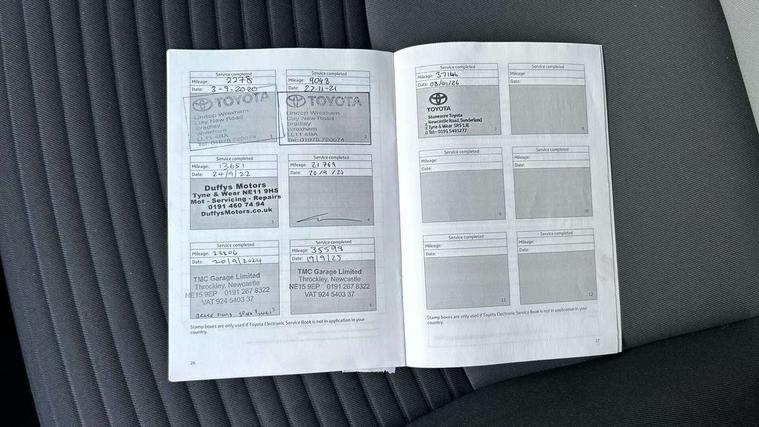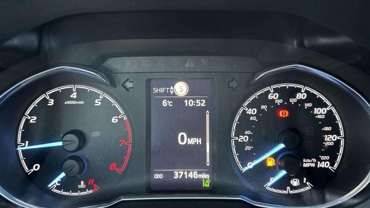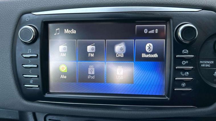 4.2" coloured LED TFT multi information display, Adjustable speed limiter with switch on steering wheel, Analogue speedometer, Analogue tachometer, Bluetooth connectivity, Cruise control with switch on steering wheel, Electric power steering, External temperature gauge, Fuel indicator with low level warning, Key reminder warning, Lights on warning, Multi information display switches on steering wheel, Rear parking sensor, Reversing camera, Road sign assist - RSA, Touch 2 Go navigation system, Touch 2 multimedia system with 7" display, Trip computer, 6 speakers, DAB Digital radio, Steering wheel mounted audio/telephone switches, USB connection, Auto up and down function on drivers window, Automatic wipers, Body colour bumpers, Body colour door handles, Body coloured door mirrors, Chrome fog light surround, Daytime running lights, Electric adjustable heated door mirrors, Electric front windows, Follow me home headlights, Front fog lights, Green tinted glass, Headlight cut-off reminder, LED High mounted stop lamp, Projector headlights, Rain sensitive windscreen wipers, Rear combination lights bulb type, Rear window defogger, Rear wiper, Turning signal integrated indicators in door mirrors, 12v power outlet - front, 3 adjustable rear headrests, 3 spoke leather steering wheel, 60/40 split folding rear seat, Active headrests, Boot light, Driver and front passenger personal light, Driver and front passenger Whiplash Injury Lessening seats, Driver/passenger vanity mirrors with covers, Front and rear cup holders, Front map reading lights, Front seats with lumbar support, Glovebox, Height adjustable driver's seat, Height adjustable front head restraints, Illuminated entry system, Isofix seat fixing, Leather gearshift, Manual air conditioning, Removable rear parcel shelf, Sliding front seats, Spirit fabric upholstery, Tilt/telescopic steering column, 3 point seatbelts on all rear seats, ABS+EBD+Brake assist, Collision mitigation braking system, Emergency brake light system (EBS), Front passenger airbag on/off switch, Front seatbelt reminder, Height adjustable front seatbelts with pre-tensioners and load limiters, Hill start assist control (HAC), Rear child proof door locks, Rear seat belt reminder, Road sign information display, Seatbelt warning lamp and buzzer, Supplemental restraint system (SRS) airbags - 7 airbags including driver, front passenger, curtain, side and knee airbags, Toyota safety sense including Road sign assist, Pre collision system, auto high beam and lane departure alert), Tyre pressure warning system, Vehicle stability control VSC + traction control, Engine immobiliser, Power and remote door locking, Instrument panel in grey, Space saver spare wheel,