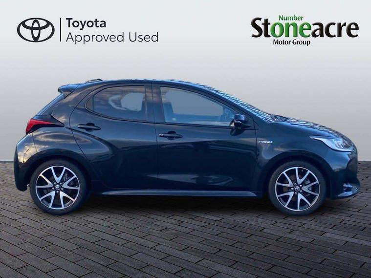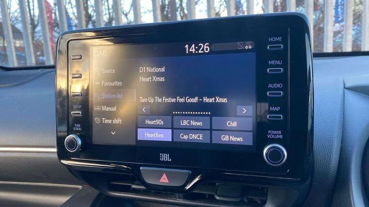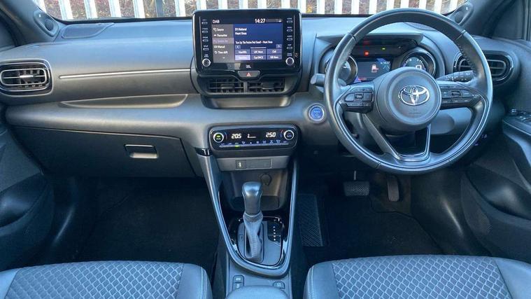 Adaptive cruise control, Adjustable speed limit with speed warning, Bluetooth connectivity, Colour binocular inspired displays with digital speedometer, E-call, Electric power steering, Hybrid energy display, Multi information display switches on steering wheel, Reversing camera, Smartphone integration with Apple CarPlay and Android auto, Vehicle Stability Control (VSC), 8" Multimedia display touch screen, JBL Premium sound system with 8 speakers, Toyota Touch 2 with DAB, USB connection, Acoustic windscreen glass, Auto windscreen wipers, Automatic headlights, Body coloured door mirrors, Electric adjustable heated door mirrors, Follow me home headlights, Front auto power windows with anti jam protection, Full LED rear lights, LED daytime running lights, LED front fog lights, LED Headlights, LED High mounted stop lamp, Painted front grille, Rear auto power windows with anti jam protection, Rear privacy glass, Rear spoiler, Shark fin antenna, Turning signal integrated indicators in door mirrors, 3 adjustable rear headrests, 3 spoke leather steering wheel, 60/40 split folding rear seat, Active headrests, Adjustable boot height, Coat hooks in rear grab handles, Cup holders (2 front & door), Data Communication Module (DCM) connected services, Dual zone automatic air conditioning, Fabric seat with partial synthetic leather upholstery, Front armrest, Front sport seats, Glovebox, Height adjustable driver's seat, Height adjustable passenger seat, Isofix seat fixing, Leather gearshift, Map pockets on the backs of the front seats, Pollen filter, Shopping bag hooks, Tilt/telescopic steering column, 3 point seatbelts on all rear seats, ABS+EBD+Brake assist, Electronic parking brake, Emergency brake light system (EBS), Front passenger airbag on/off switch, Front seatbelt reminder, Hill start assist control (HAC), Rear child proof door locks, Rear seat belt reminder, Supplemental Restraint System (SRS) 8 airbags: Driver & passenger's airbags, dual side curtain airbags, side impact airbags, front centre airbag, Toyota Safety Sense 2, Precollison + Night time Pedestrian & Cyclist Detection, Lane Trace Assist, Auto High Beam, Intelligent ACC & Road Sign Assist, Tyre pressure warning system, Alarm/immobiliser, Keyless smart entry with push button start, Remote powered central double locking doors, Piano black interior trim, Soft touch instrument panel, Space saver spare wheel,