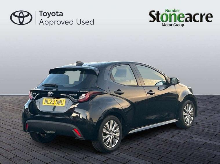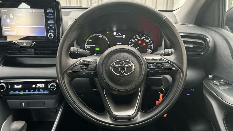 4.2" coloured TFT multi information display with analogue speedometer, Adaptive cruise control, Adjustable speed limit with speed warning, Bluetooth connectivity, E-call, Electric power steering, Hybrid energy display, Multi information display switches on steering wheel, Reversing camera, Smartphone integration with Apple CarPlay and Android auto, Tailgate, Voice recognition, Vehicle Stability Control (VSC), 4 speakers, 7" Multimedia display touch screen, Toyota Touch 2 with DAB, USB connection, Acoustic windscreen glass, Auto windscreen wipers, Automatic headlights, Body coloured door mirrors, Bulb indicators, Chequered front grille, Daytime running lights, Electric adjustable heated door mirrors, Follow me home headlights, Front auto power windows with anti jam protection, Halogen projector headlights, LED High mounted stop lamp, Manual headlight levelling, Rain sensor, Rear side wing doors, Rear spoiler, Rear wiper, Shark fin antenna, Turning signal integrated indicators in door mirrors, Variable front intermittent wipers, 3 adjustable rear headrests, 3 seat bench in 2nd row, 3 spoke leather steering wheel, 60/40 split folding rear seat, Active headrests, Adjustable boot height, Auto air conditioning, Coat hooks in rear grab handles, Cup holders (2 front & door), Data Communication Module (DCM) connected services, Fabric upholstery, Front armrest, Glovebox, Grey roof lining, Height adjustable driver's seat, Isofix seat fixing, Leather gearshift, Pollen filter, Shopping bag hooks, Single front passenger seat, Tilt/telescopic steering column, 3 point seatbelts on all rear seats, ABS+EBD+Brake assist, Electronic parking brake, Emergency brake light system (EBS), Front passenger airbag on/off switch, Front seatbelt reminder, Hill start assist control (HAC), Rear child proof door locks, Rear seat belt reminder, Supplemental Restraint System (SRS) 8 airbags: Driver & passenger's airbags, dual side curtain airbags, side impact airbags, front centre airbag, Toyota Safety Sense 2, Precollison + Night time Pedestrian & Cyclist Detection, Lane Trace Assist, Auto High Beam, Intelligent ACC & Road Sign Assist, Tyre pressure warning system, 2x Master key, Alarm/immobiliser, Remote powered central double locking doors, Soft touch instrument panel, Space saver spare wheel,