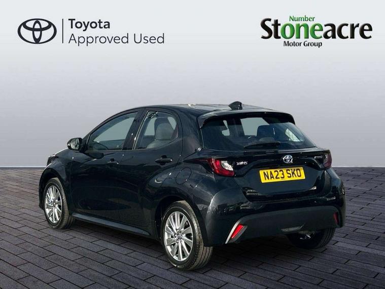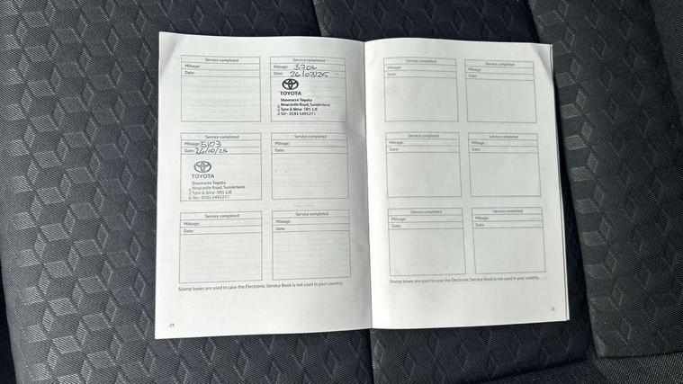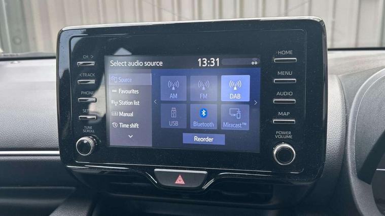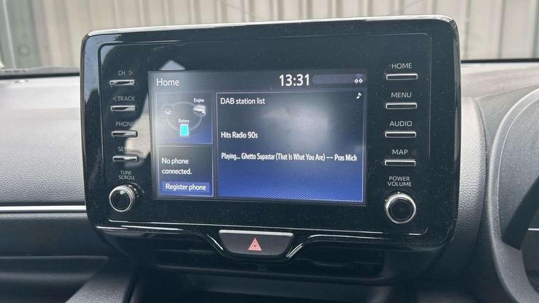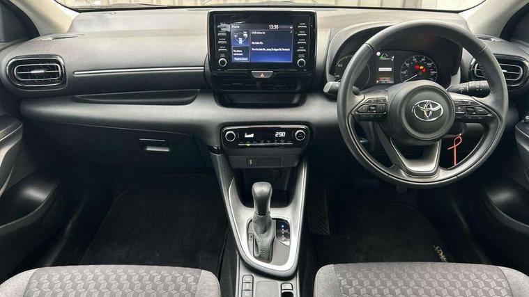 4.2" coloured TFT multi information display with analogue speedometer, Adaptive cruise control, Adjustable speed limit with speed warning, Bluetooth connectivity, E-call, Electric power steering, Hybrid energy display, Multi information display switches on steering wheel, Reversing camera, Smartphone integration with Apple CarPlay and Android auto, Tailgate, Voice recognition, Vehicle Stability Control (VSC), 4 speakers, 7" Multimedia display touch screen, Toyota Touch 2 with DAB, USB connection, Acoustic windscreen glass, Auto windscreen wipers, Automatic headlights, Body coloured door mirrors, Bulb indicators, Chequered front grille, Daytime running lights, Electric adjustable heated door mirrors, Follow me home headlights, Front auto power windows with anti jam protection, Halogen projector headlights, LED High mounted stop lamp, Manual headlight levelling, Rain sensor, Rear side wing doors, Rear spoiler, Rear wiper, Shark fin antenna, Turning signal integrated indicators in door mirrors, Variable front intermittent wipers, 3 adjustable rear headrests, 3 seat bench in 2nd row, 3 spoke leather steering wheel, 60/40 split folding rear seat, Active headrests, Adjustable boot height, Auto air conditioning, Coat hooks in rear grab handles, Cup holders (2 front & door), Data Communication Module (DCM) connected services, Fabric upholstery, Front armrest, Glovebox, Grey roof lining, Height adjustable driver's seat, Isofix seat fixing, Leather gearshift, Pollen filter, Shopping bag hooks, Single front passenger seat, Tilt/telescopic steering column, 3 point seatbelts on all rear seats, ABS+EBD+Brake assist, Electronic parking brake, Emergency brake light system (EBS), Front passenger airbag on/off switch, Front seatbelt reminder, Hill start assist control (HAC), Rear child proof door locks, Rear seat belt reminder, Supplemental Restraint System (SRS) 8 airbags: Driver & passenger's airbags, dual side curtain airbags, side impact airbags, front centre airbag, Toyota Safety Sense 2, Precollison + Night time Pedestrian & Cyclist Detection, Lane Trace Assist, Auto High Beam, Intelligent ACC & Road Sign Assist, Tyre pressure warning system, 2x Master key, Alarm/immobiliser, Remote powered central double locking doors, Soft touch instrument panel, Space saver spare wheel,
