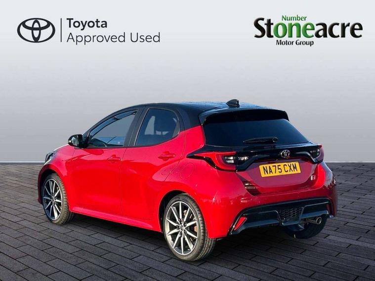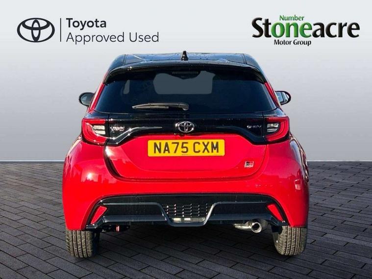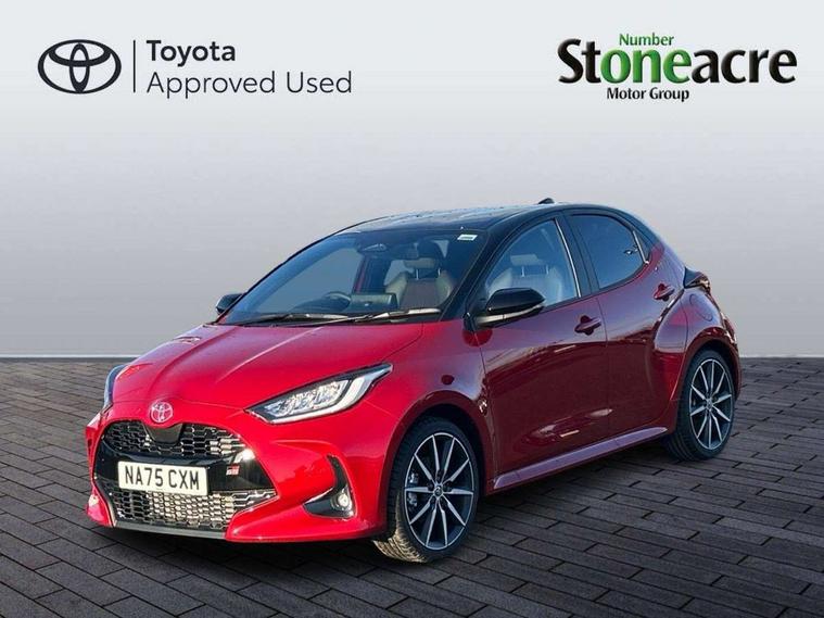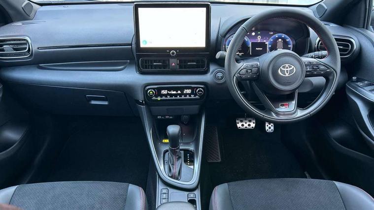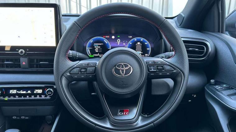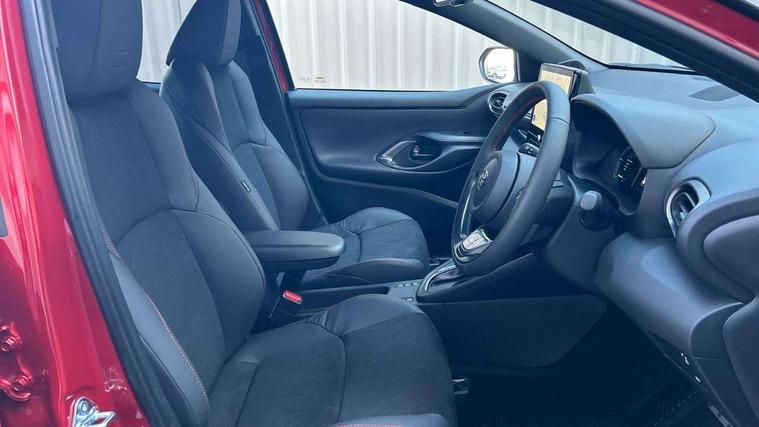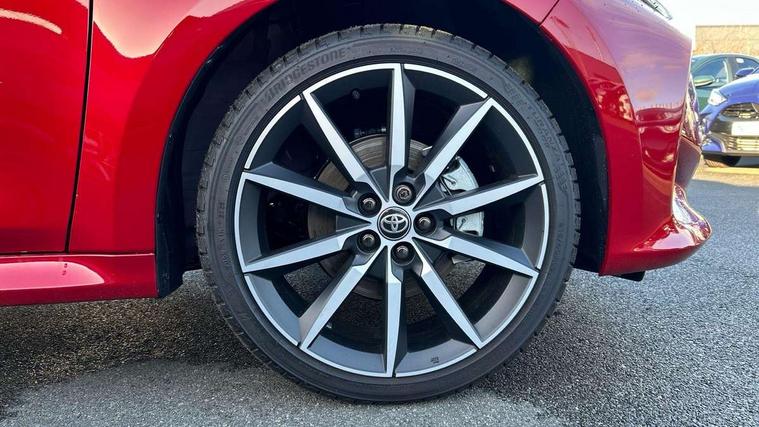 12.3" Digital Combimeter, Adaptive cruise control, Adjustable speed limit with speed warning, Bluetooth connectivity, Colour binocular inspired displays with digital speedometer, E-call, Electric power steering, Hybrid energy display, Lane trace assist, Multi information display switches on steering wheel, Pre-collision system (PCS), Reversing camera, Tailgate, Voice recognition, Wireless charger, Vehicle Stability Control (VSC), 10.5" Toyota smart connect multimedia with wireless smartphone integration incl apple car play and cloud Navigation, 6 speakers, Toyota Touch 3 system with DAB radio, USB connection, Acoustic windscreen glass, Auto high beam assist, Auto windscreen wipers, Automatic headlights, Dark chrome lower front grille, Electric adjustable heated door mirrors, Follow me home headlights, Front auto power windows with anti jam protection, LED daytime running lights, LED front fog lights, LED front light guide, LED Headlights, LED High mounted stop lamp, LED Indicators, LED rear light guide, Manual headlight levelling, Painted chequered front grille with hot stamp in mesh design, Rain sensor, Rear auto power windows with anti jam protection, Rear privacy glass, Rear roof spoiler, Rear side wing doors, Rear wiper, Shark fin antenna, Turning signal integrated indicators in door mirrors, Variable front intermittent wipers, 3 adjustable rear headrests, 3 seat bench in 2nd row, 3 spoke leather steering wheel, 60/40 split folding rear seat, Active headrests, Adjustable boot height, Ambient lighting, Black roof lining, Coat hooks in rear grab handles, Cup holders (2 front & door), Data Communication Module (DCM) connected services, Dual zone automatic air conditioning, Front armrest, Front sport seats, Glovebox, GR embossed in headrests, Height adjustable driver's seat, Height adjustable passenger seat, Isofix seat fixing, Leather gearshift, Map pockets on the backs of the front seats, Pollen filter, Shopping bag hooks, Single front passenger seat, Suede upholstery, Tilt/telescopic steering column, 3 point seatbelts on all rear seats, ABS+EBD+Brake assist, Electronic parking brake, Emergency brake light system (EBS), Front passenger airbag on/off switch, Front seatbelt reminder, Hill start assist control (HAC), Rear child proof door locks, Rear seat belt reminder, Supplemental Restraint System (SRS) 8 airbags: Driver & passenger's airbags, dual side curtain airbags, side impact airbags, front centre airbag, Toyota Safety Sense 3 with over the air updates, Tyre pressure warning system, 2x Master key, Alarm/immobiliser, Keyless smart entry with push button start, Remote AC via MyT, Remote locking via MyT, Remote powered central double locking doors, GR Sport interior styling with accents and exterior styling, Piano black interior trim, Soft touch instrument panel, 18" Black Machined-face, 10 spoke alloys wheels, Space saver spare wheel,