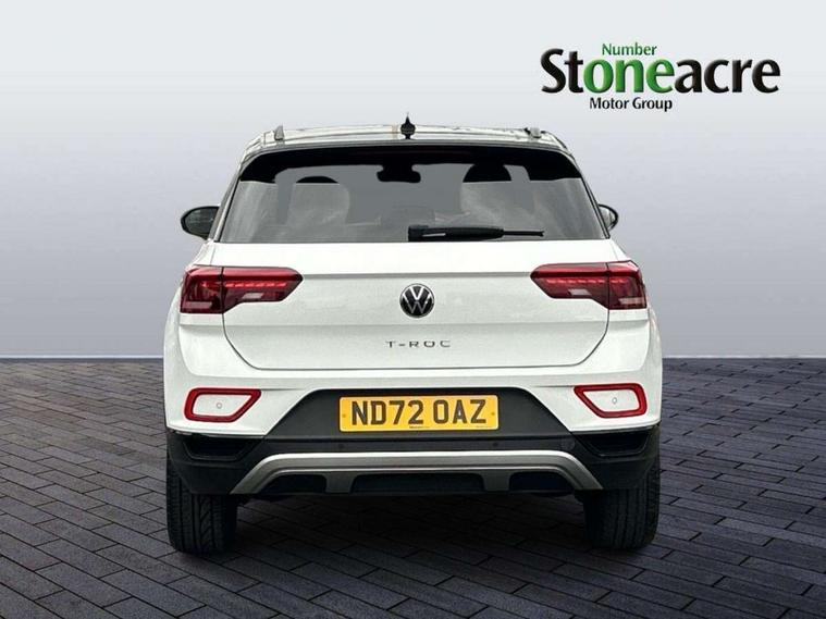 10.25" Digital cockpit pro, Bluetooth mobile phone interface, Driver alert system with fatigue detection, Driver tips and journey analysis, Emergency call service, Lane keeping system Lane Assist, Modified key software - reduce switch off time for key status change to Long no motion, Online services, Park assist including front and rear parking sensors, Service interval indicator, Tailgate/trunk lid release from outside, Think blue trainer driver tips and journey analysis, Warning sound and light for front seatbelts unfastened, Wireless app connect, Battery regeneration during braking, Start/stop function with battery regeneration, Diversity antenna for FM reception, Front and rear 6 speakers, Music playback - MP3, WMA and AAC files, Premium USB cable in choice of either Apple or Android smartphone compatibility, SD card slot, Simultaneous pairing of 2 compatible mobile devices, Title and cover art display, We Connect and We Connect Plus functionality, 3rd brake light, Auto dimming interior rear view mirror, Automatic hazard lights activation under emergency braking, Automatic headlight control with LED separate daytime running lights with coming/leaving home function, Body colour sports bumpers with silver metallic underbody fascia, Dynamic headlight range control with self adjusting whilst driving, Extended roof spoiler, Exterior mirrors aspherical on driver side, convex on front passenger side, External USB type C socket and charging sockets, Front windscreen wiper with intermittent wipe and 4 position delay, Heated rear window, LED Plus headlamps, LED rear combination lamps, LED rear number plate lights, LED tail lamp rear comination lamps, Light mode for poor weather, rain, fog or snow, Power windows with comfort operation and circuit breaker, Rain sensor, Rear exhaust tailpipe, Rear fog light on one side and reversing lights on both sides, Rear side wing doors, Rear wash/wipe with intermittent wipe setting, Remote electrically foldable door mirrors, puddle lights and reverse activated passenger's door mirror, 12V power socket in centre console, 3 rear head restraints, 3 seat bench in 2nd row, 4 load lashing points in luggage compartment, Air care climatronic air conditoning system with active combination filter and 2-zone temperature control, Chrome plated radiator grille inserts, air vent surrounds and light switch surrounds, Door and side trim panel with leatherette insert, Drawer under drivers seat, Front + rear carpet mats, Front centre armrest, Front comfort sports seats, Front cupholders x 2, Front footwell illumination, Instrument lighting, white adjustable panel illumination, Interior ambient lighting and surround lighting, Interior light delay, Isofix child seat preparation, Leather gearshift handle, LED interior light with switch off delay/dimmer and 2 front/rear LED reading lights, Load-through provision with cup holder when folded down ('Unsplit rear seat bench, split folding backrest, with centre armrest), Luggage compartment lighting, Non-folding front passenger seat backrest, Single front passenger seat, Storage compartment in left and right luggage area, Storage compartment in rear doors, Storage compartments in driver and front passenger doors, Sunvisors with illuminated vanity mirrors, Variable boot floor, height adjustable and removable, Driver assistance pack without proactive passenger protection - T-Roc, 3 point height adj front seatbelts + pretensioners, 3 point seatbelts in outer rear with ECE label, ABS, Child locks on rear doors, Driver and front passenger airbag with front passenger airbag deactivation, Driver and front passenger safety-optimised head restraints, Drivers seatbelt reminder, Electronic parking brake, Electronic Stability Control (ESC) inc EDL (Electronic Differential Lock) and ASR (Traction Control), Front and rear passengers curtain airbag system including front side airbags, Front assist with city emergency braking and pedestrian monitoring, Front seat side impact airbags, Predictive pedestrian protection, Rear disc brakes, Single tone horn, Tyre pressure loss indicator, Volkswagen roadside assistance, Alarm with interior protection, Anti-theft alarm system with interior monitoring, backup horn, and towing protection, Remote central locking with SAFELOCK, radio remote control with 2 remote control folding keys, Trims for alloy wheels,