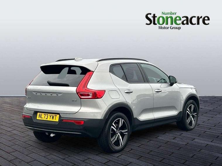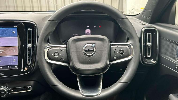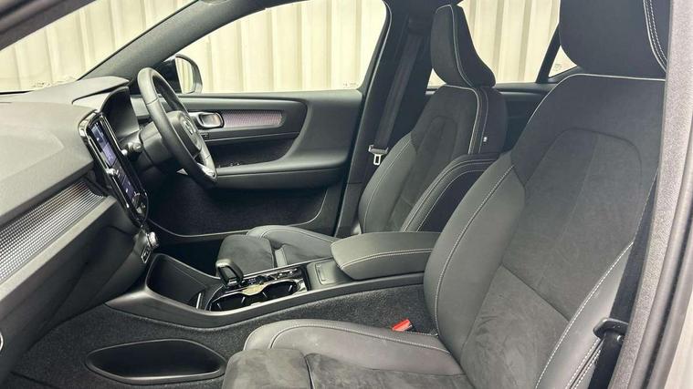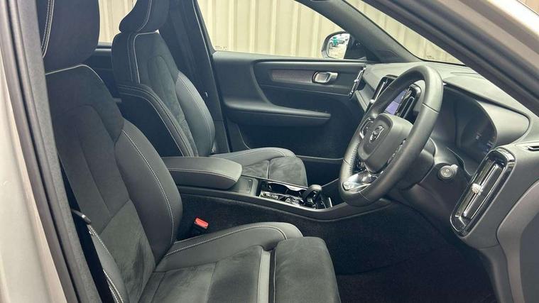 12.3" Progressive Driver Display, 360 degree surround view parking camera with side proximity sensors, 9" centre console portrait touch screen, Adjustable steering wheel force, Bluetooth hands free telephone kit, Cruise control, E-call, Front park assist, Google automatic services - Nav with google maps, apple carplay/android auto, voice recognition with google assistant, Hands free power tailgate, Lane keep assist with driver alert control, Oncoming Lane Mitigation, Rear park assist, Speed limiter, Speed sensitive steering, Wireless/Inductive Mobile Phone Charging, Dynamic chassis, DAB Digital radio, High performance sound, 8 speakers/250W, front USB and 2 rear type C USB, Steering wheel mounted remote controls, Adaptive brake lights with high level LED brake lights, Auto dimming feature for exterior door mirrors, Auto dimming interior mirror, Automatic headlamp levelling, Automatic LED Headlights + Active high beam incorporating daytime running lights, Front aluminium tread plates, Front and rear electric windows, High gloss black front and rear skid plate, High gloss black mesh front grille with high gloss black surround, High gloss black window trim, Home safe and approach lighting, Integrated roof rails in high gloss black, LED front fog lights, Puddle lights, Rain sensor with automatic windscreen wiper activation, Rear side wing doors, Rear wiper, Roof antenna, Roof spoiler, Visible VIN plate, 12V socket in front tunnel console and luggage compartment, 2-Zone electronic climate control with CleanZone air quality system and pollen filter, 3 seat bench in 2nd row, 3 Spoke tailored steering wheel with chrome trim, 60/40 versatile split folding rear seat, A-pillar parking ticket holder, Centre console cupholders and storage, Flexible load floor and grocery bag holder, Floor mats, Front door pocket, front cupholder, ambient front door, rear reading, rear courtesy, instrument panel and tailgate lighting, Front footwell illumination, Front headrests, Front reading light and theatre lighting, Front seat cushion extensions, Front tunnel pocket, Glovebox bag hook, Heated front seats, Height adjustable passenger seat, Height/reach adjustable steering column, High gloss centre tunnel deco, Illuminated glovebox, Illuminated luggage compartment, Illuminated vanity mirrors, Integrated waste bin, Isofix attachments on outer rear seats, Load protection net, Multi directional lumbar support, Power driver seat with memory + exterior mirrors memory, Rear armrest / integral cup holders / storage tray, Rear headrests, Single front passenger seat, Underfloor cargo storage, Climate pack without heated front seats - XC40, 3x3 point rear seatbelts, City safety with steering support with Pedestrian + cyclist + front collision warning with full auto brake and rear auto brake, Drivers knee airbag, Dual stage driver/passenger airbags, Electronic parking brake with auto hold, First aid kit, Front and outer rear seatbelt reminder and pretensioners, Front seats SIPS airbags, Hill descent control, Hill start assist, Inflatable curtain, Passenger airbag cut-off device, Power child locks on rear doors, Road sign information display, Run off Road Mitigation, Run off Road Protection, SIPS (Side Impact Protection System), Slippery road and hazard light alert, Stability and Traction Control with Spin control, Engine Drag Control and Corner Traction Control, Tyre pressure monitoring system, Vehicle deceleration control with Anti-lock Brake System, Electronic Brake Distribution and Emergency Brake Assist, Warning triangle, WHIPS whiplash protection system - front, Anti-theft alarm including immobiliser/volume sensor + level sensor, Key integrated remote control central locking + fuel flap with deadlocking system and auto open/close power windows, Keyless drive includes keyless entry and keyless start, Locking wheel nuts,