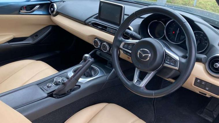 7" touchscreen with multimedia commander, Cruise control + speed limiter, Engine start/stop button, Integrated bluetooth with steering wheel mounted controls, Lane departure warning system, PAS, Rear parking sensor, Remote boot release, Satellite navigation system, Trip computer, Water temperature gauge, Limited slip differential, Sports suspension, 9 speakers, Auxiliary input socket, Bose Premium Audio system, DAB Digital radio, MP3 compatible radio/single CD player, USB/iPod connection, Adaptive front lighting system, Auto dimming rear view mirror, Automatic headlamp levelling, Body colour bumpers, Body coloured door mirrors, Coming/leaving home lighting function, Dual exhaust pipes, Dusk sensitive headlamps, Electric front windows/one touch facility, Electrically heated door mirrors, LED daytime running lights, LED Headlights, Premium cloth soft top with integrated heated glass window and soft top cover, Rain sensing front wipers, 12V socket, Body coloured inner door trims, Centre console storage box, Climate control air conditioning, Cupholders, Front centre armrest, Front head restraints, Heated front seats, Height adjustable front seats, ISOFIX front passenger seat child seat compliance, Leather gear knob, Leather handbrake lever, Leather steering wheel, Lockable rear storage box, Sports seats, Tilt/slide reclining front seats, Windblocker, 3 point ELR front seatbelts with pretensioners, ABS+Electronic Brake force Distribution, DSTC-Dynamic Stability and Traction Control, Dual front airbags, Fasten seatbelt reminder, Hill hold assist, Manual passenger airbag deactivation function, Side airbags, Tyre pressure monitor, Alarm with interior movement sensor, Immobiliser, Remote central door locking, Smart keyless entry, Superlocking, Black vinyl leather dashboard panel, 17" Bright alloy wheels, Tyre puncture repair kit,