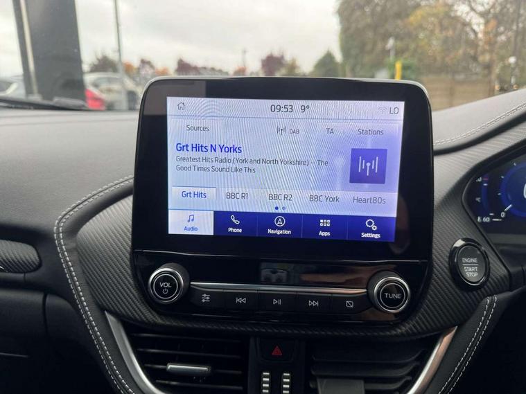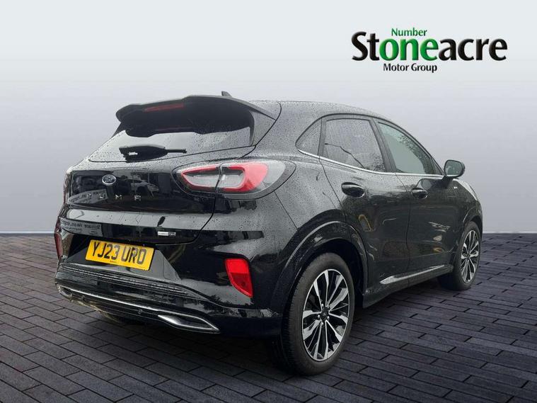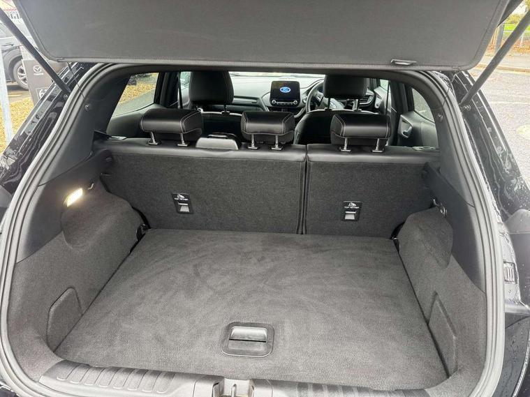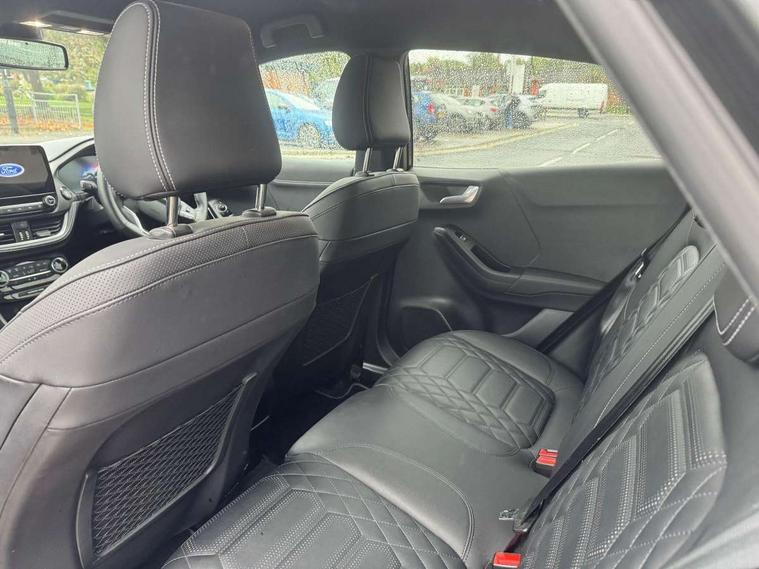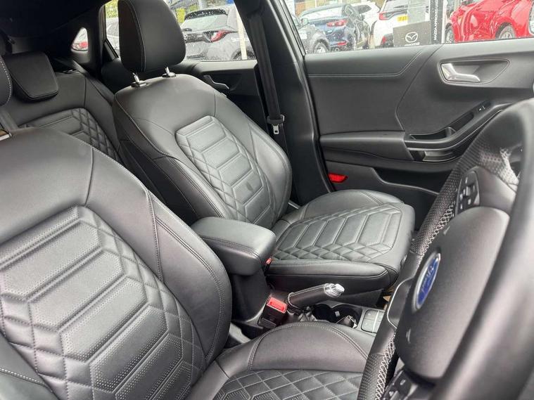 Driver impairment monitor, Emergency call service, Ford easy fuel, Front and rear parking sensors, Full digital 12.3" instrument cluster, Lane keeping aid with lane departure warning, Power assist steering, Selectable drive modes(Normal, sport, Eco, trail, slippery), Speed sign recognition, Sport suspension, Automatic headlights with auto high beam, Automatic rain sensing wipers, Bodyside chrome styling, Fixed LED signature headlamps, Front fog lamps, Gloss black with chrome elements on front and rear bumpers, High chrome waistline, LED daytime running lights, LED rear lamps, Power foldable heated door mirrors with puddle lamps and puma logo protection, Privacy glass to side rear windows and tailgate glass, Quickclear heated windscreen, Rear side wing doors, Rear wiper, Third brake light, Vignale body styling kit with unique grille and large body colour rear spoiler, 3 seat bench in 2nd row, Centre console with armrest and stowage, Ford megabox extended bootspace, Front and rear floor mats, Front and rear head restraints, Manual 4 way driver seat adjust with lumbar adjustment and massage function, Manual 4 way passenger seat adjust with lumbar adjustment and massage function, Premium sensico leather upholstery with metal grey stitching, Premium sensico perforated flat bottomed steering with metal grey stitching, Premium sensico wrapped instrument cluster, Single front passenger seat, Wireless charging pad with electronic air temperature control (EATC), B&O Premium Audio system + Ford SYNC 3 navigation pack - Puma, Winter pack - Puma, 3 rear seatbelts, Child safety lock, Electronic stability control (ESC) and hill start assist, Pedestrian/cyclist detection & post-collision braking, Pre collision assist system, Tyre pressure monitoring system (TPMS), Keyless entry and power start button, Thatcham alarm, Carbon look interior deco spears,