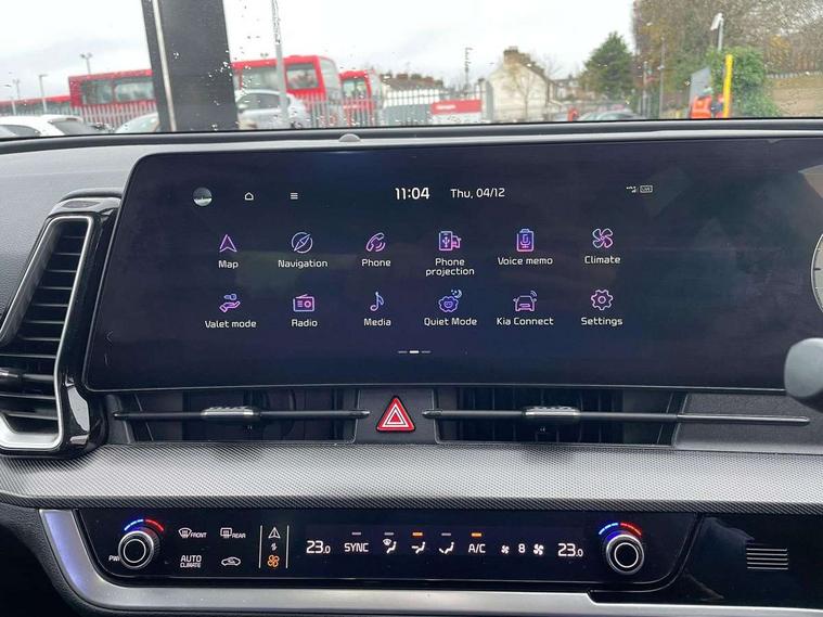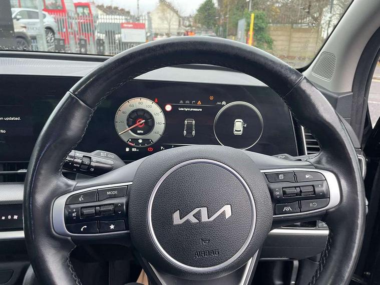 12.3" Display with navigation, 12.3" supervision colour cluster display, Apple car play/Android Auto with voice control, Cruise control + speed limiter, Drive mode selector, E-call, Forward collision avoidance assist (FCA) - city/pedestrian/cyclist/junction covering, Front and rear parking sensors, Intelligent speed limit assist, Kia Connect (UVO), Lane Following Assist (LFA), Lane keep assist, Low washer fluid warning, Rear view monitor, Reversing camera system integrated into centre fascia screen, Speed sensitive power steering, Trip computer, Windscreen washer level indicator, Intelligent Stop and Go, 6 speaker audio system, Bluetooth audio streaming, DAB Radio with MP3, Rear USB port, Steering wheel mounted audio controls, USB port for connection of a media device, All round electric windows with drivers and front passenger auto up/down function, Automatic headlight control system, Automatic window defogger, Backlite glass heated with timer, Black side sill and wheel arch body mouldings, Body colour and black bumper with silver accents, Body colour door mirrors, Body colour exterior door handles, Electrically adjustable/heated/folding door mirrors with LED indicators, High beam assist, Interior electrochromic mirror, LED daytime running lights, LED front fog lamps, LED headlamps (low and high beam - MFR type), LED High mounted stop light, Rain sensing wipers with aero blades, Rear fog lamp, Rear privacy glass, Rear side wing doors, Rear skid plate - silver, Rear spoiler, Rear wiper, Satin finished beltline, Silver radiator upper garnish and door garnish, Silver roof rack, Trailer stability assist, 12V power socket in front centre fascia and luggage compartment, 2nd row personal lamps, 3 seat bench in 2nd row, 3 x passenger assist grips, 40/20/40 split folding rear seat, All-round height adjustable headrests, Centre console storage box, Cloth/faux leather upholstery, Cupholders in rear armrest, Door courtesy lamps, Drink holder at centre armrest, Driver and front passenger side sunvisors with illuminated vanity mirrors, Drivers seat power lumbar support, Electric height adjustable front seats, Front and rear door storage, Front seat and rear pockets, Front/rear centre armrests, Gear shift indicator, Glovebox illumination, Heated front and outer rear seats, Heated steering wheel, Interior door lock/unlock function, ISOFIX Child seat top tethers and anchor fixings outer rear seats, Leather steering wheel, Luggage area light, Luggage area load cover, Luggage net with hooks, Metal paint interior door handles, Overhead console lamp, Rear coat hooks, Single front passenger seat, Three zone climate control, Tilt/telescopic adjustable steering wheel, Ventilation ducts to rear compartment, Active front headrests, All round 3-point seatbelts, Anti-lock braking system (ABS), Dual front side airbags, Dual horn, Electronic parking brake, Electronic stability control with downhill brake control, Front passenger airbag cut-off switch, Front seatbelt pretensioners + load limiters, Height adjustable front seatbelts, Hill start assist control (HAC), Impact sensing auto door unlocking, Multi collision brake assist, Rear door child safety locks, Rear seat alert system, Traction control, Twin curtain airbags, Twin front airbags, Tyre pressure monitoring system, Advanced anti-theft system including immobiliser and alarm, Door deadlocks, Engine Start/Stop Button with Smart Entry System, Locking wheel nuts, Speed sensitive auto door locking, Visible vehicle identification number, Aluminium pattern finish centre fascia and door garnish, 18" Alloy wheels, Tyre mobility kit,