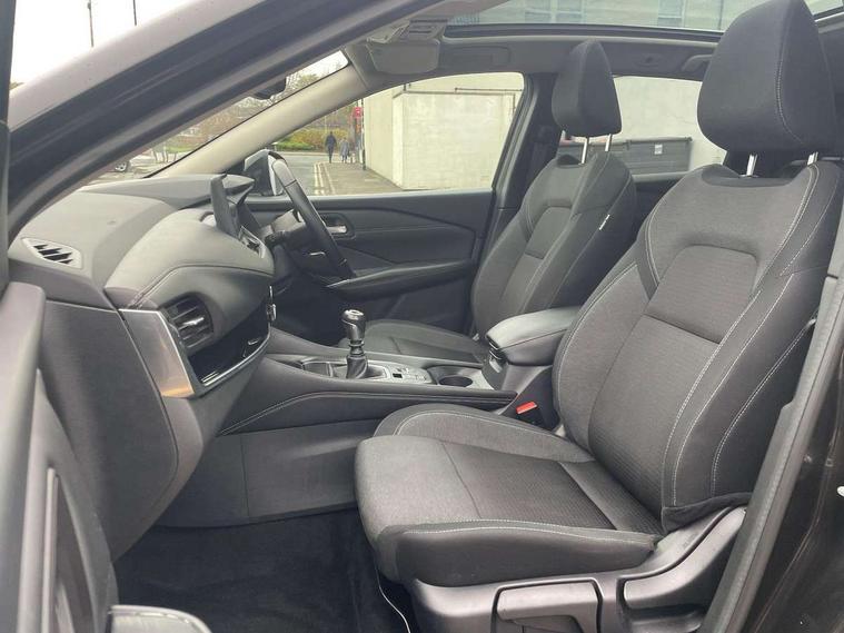 Android auto/Apple CarPlay (Wired), Blind spot warning, Drive modes (sport, normal, eco), Electric speed sensitive power steering, Emergency and breakdown call, Front and rear parking sensors, Full Digital 12.3" TFT Digital Combimeter, Google maps services - search, weather, 3D maps and Google street view, Idle stop/start system, Intelligent around view monitor, Intelligent Cruise control (ICC), Intelligent driver alert system, Intelligent forward collision warning, Intelligent lane intervention, Lane departure prevention, Lane departure warning system, Maximum speed limiter, Moving object detection, Nissan connect 12.3 inch touchscreen infotainment system, Nissan connect navigation, Push button starter, Rear cross traffic alert, Rear view camera, Remote control services - door locks, lights, horn and car locator, Telematics - notifications and connectivity services, TomTom live traffic services, Traffic sign recognition with legal speed adjustment, Trip computer, Virtual personal assistant and firmware over the air capability, Wireless apple carplay, 6 speakers, AM/FM audio system with DAB, Bluetooth audio streaming, Front USB connections (Type-A and Type-C), Rear USB charging only ports (Type-A and Type-C), Auto dimming rear view mirror, Auto rear wiper when reversing, Automatic hazard signal with emergency stop signal, Body colour mirror caps, Body coloured door handles, Bodyside mouldings, Chrome side window finisher, Door handle with button, Electric auto folding door mirrors, Electrically adjustable and heated door mirrors with LED turn indicator, Follow me home headlights, High beam assist, Intelligent auto headlights, LED daytime running lights, LED Headlights, LED rear lights, One touch front and rear electric windows with remote opening and closing, Partially body coloured bumpers, Privacy glass, Rear bumper with graphite insert, Rear reversing light (bulb lighting), Rear roof spoiler, Rear side wing doors, Rear styling plate, Shark fin antenna, Splash free rain sensing wipers, Super UV and infrared cut glass, Three blink turn signal, 12v power socket in dashboard and luggage, 2x Rear coat hooks, 3 bench rear seats in 2nd row, 3 rear headrests, 4 folding assist grip, 6 Luggage hooks - 4 on floor, 2 on side, 6-way manually adjustable driver's seat, 60/40 split folding rear seat bench, Ambient lighting around centre console, Centre console storage tray, Chrome interior door handles, Cloth monoform upholstery, Driver and front passenger sunvisors with illuminated vanity mirrors, Driver seat back pocket, Dual zone automatic climate control with pollen filter, Electrically adjustable lumbar support for driver, Front and rear door storage, Front centre console and armrest, Front cupholders x 2, Front door with bottle holders, Glovebox with light, Hard trunk cover, Height adjustable driver's seat, Height adjustable front headrests, Height adjustable passenger seat, Leather shift knob, Leather steering wheel, Luggage board system, Luggage space lighting, Manually adjustable passenger (slide recline + lifter), Multifunction steering wheel, Passenger seat back pocket, Rear armrest with 2 cupholders, Rear door bottle holders, Single front passenger seat, Soft PVC kneepad, Steering wheel switches, Sunglasses holder, Tilt/telescopic adjustable steering wheel, Two rear isofix child seat anchorage points with top tether, Welcome light and console tray ambient lighting, 3x3 point rear seatbelt pretensioners + load limiters, ABS with EBD and brake assist, Active brake limited slip, Auto hold function, Child locks on rear doors, Curtain and front side, far side airbags, Driver and passenger airbags, Driver, passenger and 2nd row rear seat belt reminder, Electronic parking brake, Front seatbelt pretensioners + load limiters, Height adjustable front seatbelts, Hill start assist, Intelligent blind spot intervention, Intelligent front emergency braking with pedestrian, cyclist recognition and junction assist, Intelligent rear automatic braking, Tyre pressure monitoring system, Vehicle dynamic control, Capless fuel filler, Engine immobiliser, Intelligent Key, Remote central door locking with deadlocking, Thatcham Cat.1 alarm, Interior instrumental panel B finisher, 18" Diamond cut alloy wheels, Tyre puncture repair kit,