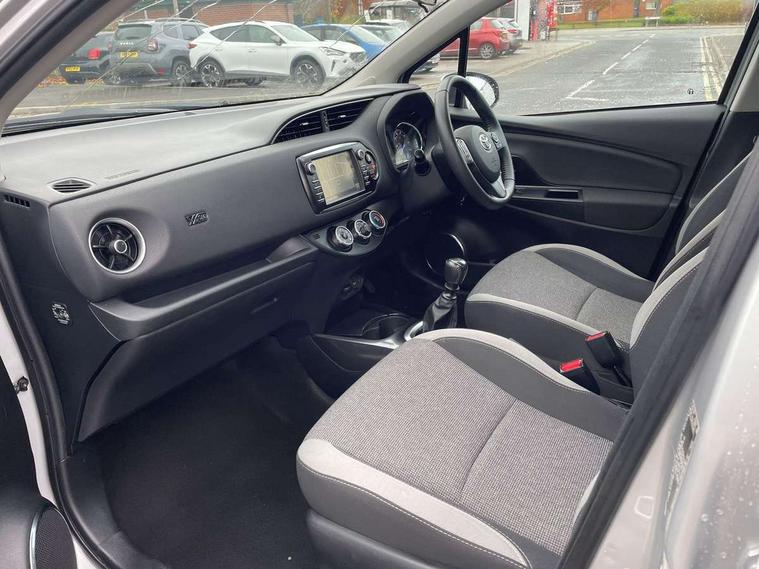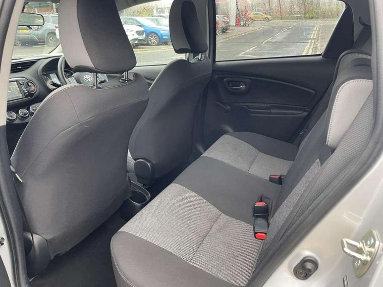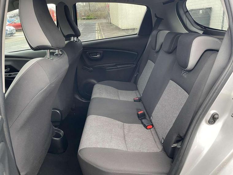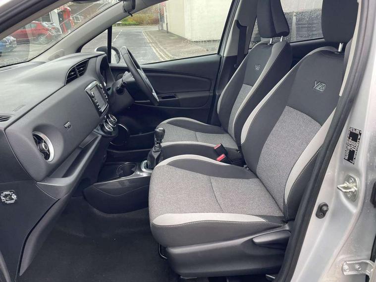 4.2" coloured LED TFT multi information display, Analogue speedometer, Analogue tachometer, Auto speed limiter, Bluetooth connectivity, Cruise control, External temperature gauge, Fuel indicator with low level warning, Key reminder warning, Lights on warning, Multi information display switches on steering wheel, Power Steering, Reversing camera, Toyota Touch 2 with DAB, Trip computer, 6 speakers, Auxiliary input socket, Steering wheel mounted audio/telephone switches, USB connection, Auto up and down function on drivers window, Automatic wipers, Bi-tone grey roof, Black lower front grille, Body colour bumpers, Body colour door handles, C pillar decal, Daytime running lights, Electric adjustable heated door mirrors, Electric front windows, Follow me home headlights, Front fog lights, Grey contrasting colour door mirrors, Grey door moulding, Grey door side sills, Grey front grille and fogs, Headlight cut-off reminder, LED High mounted stop lamp, Manual dimming rear view mirror, Privacy glass, Projector headlights, Rain sensitive windscreen wipers, Rear combination lights bulb type, Rear window defogger, Rear wiper, Turning signal integrated indicators in door mirrors, Y20 Badging, 12v power outlet - front, 3 adjustable rear headrests, 3 spoke leather steering wheel, 60/40 split folding rear seat, Boot light, Data Communication Module (DCM) connected services, Driver and front passenger personal light, Driver and front passenger Whiplash Injury Lessening seats, Fabric upholstery, Front and rear cup holders, Front map reading lights, Front seats with lumbar support, Glovebox, Height adjustable driver's seat, Height adjustable front head restraints, Illuminated entry system, Isofix seat fixing, Leather gearshift, Manual air conditioning, Map pockets on the backs of the front seats, Pollen filter, Removable rear parcel shelf, Sliding front seats, Soft touch inner door garnish, Tilt/telescopic steering column, Y20 badge interior and in seat trim, 3 point seatbelts on all rear seats, ABS+EBD+Brake assist, Active headrests, Collision mitigation braking system, Emergency brake light system (EBS), Front passenger airbag on/off switch, Front seatbelt reminder, Height adjustable front seatbelts with pre-tensioners and load limiters, Hill start assist control (HAC), Rear child proof door locks, Rear seat belt reminder, Road sign information display, Seatbelt warning lamp and buzzer, Supplemental restraint system (SRS) airbags - 7 airbags including driver, front passenger, curtain, side and knee airbags, Toyota safety sense including Road sign assist, Pre collision system, auto high beam and lane departure alert), Tyre pressure warning system, Vehicle stability control VSC + traction control, Engine immobiliser, Power and remote door locking, Interior satin accents, Soft touch instrument panel, 16" 10 spoke grey machined alloy wheels, Space saver spare wheel,