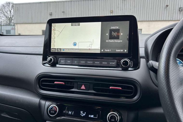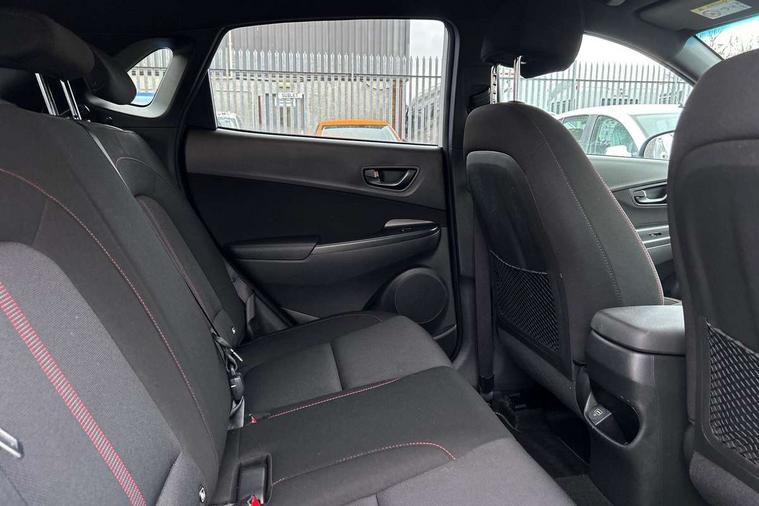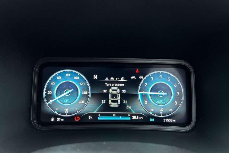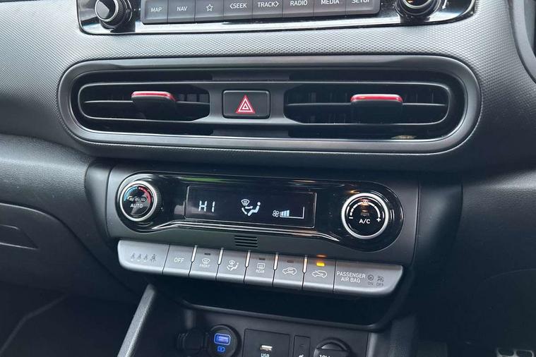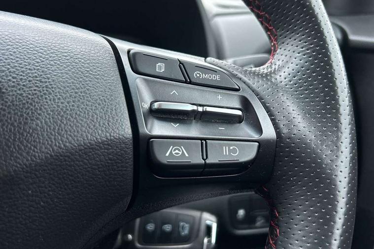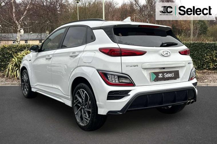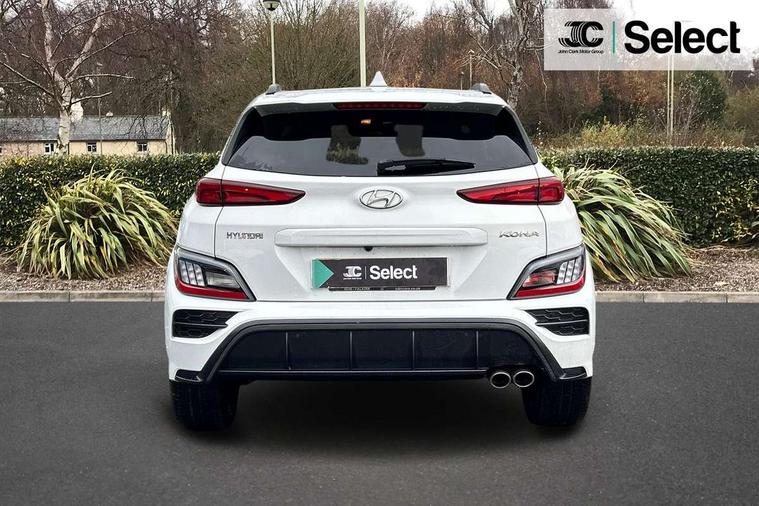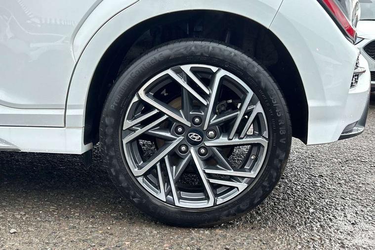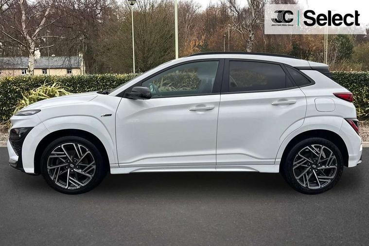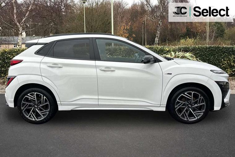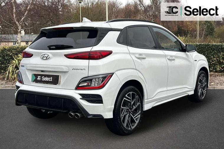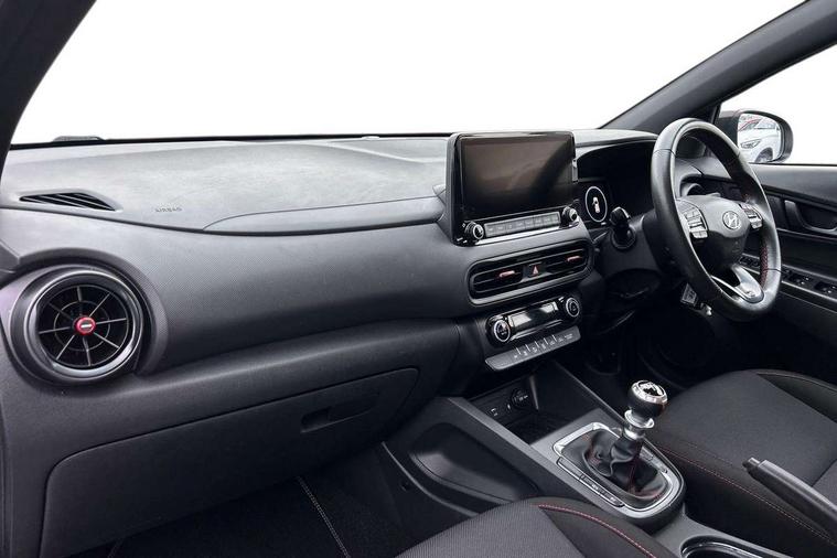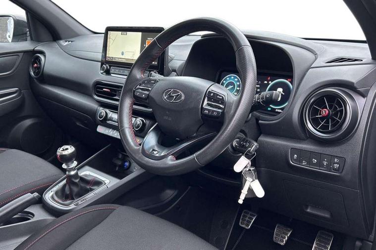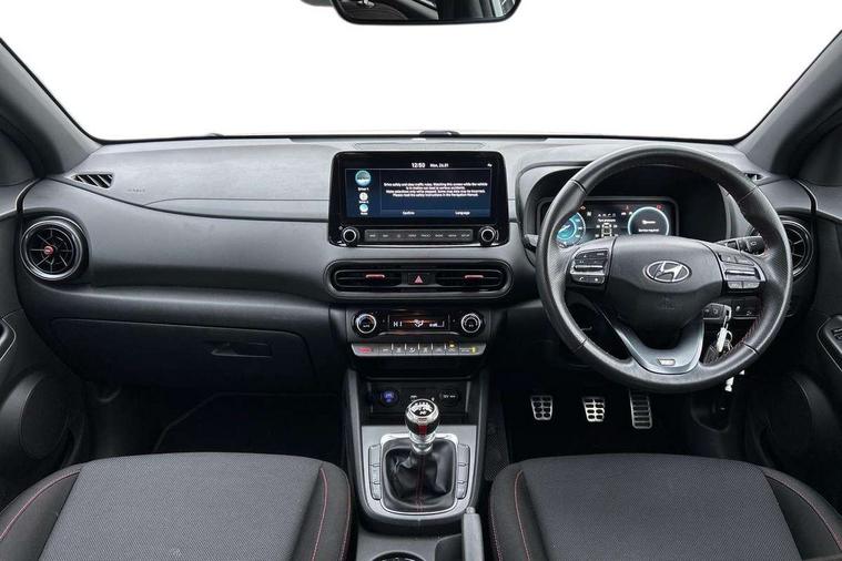 10.25" touchscreen centre console display satellite navigation with live services and mapcare, Bluetooth connectivity, Cruise control + speed limiter, Digital clock, Driver attention warning, Driver supervision instrument cluster with 10.25" LCD display, eCall emergency call system, Forward collision avoidance assist with pedestrian detection, Lane follow assist, Lane keep assist, Leading vehicle departure alert (LVDA), Parking system with rear camera and guidance system, PAS, Phone connection with apple carPlay and android auto, Rear parking sensor, Roadside assistance, Windscreen washer fluid sensor and warning indicator, Wireless phone charging pad, 6 speed intelligent manual transmission, Front and rear USB ports, Krell premium audio system with 8 speakers including external amplifier and subwoofer, RDS and Digital DAB, Steering wheel mounted audio/phone controls, Auto dimming rear view mirror, Automatic headlights with dusk sensor, Automatic windscreen wipers with rain sensor, Black radiator grille, Body colour bumpers, Body colour door mirrors and handles, Body colour side cladding, Body coloured garnish, Door mirror integrated indicators, Electric front/rear windows with drivers one touch/anti-trap, Electrically adjustable and heated door mirrors, Halogen headlights, LED daytime running lights, LED rear lights, Positioning Lights - LED, Power folding door mirrors, Privacy glass - Rear windows and tailgate, Rear roof spoiler with integrated LED brake light, Rear side wing doors, Rear skid plate - silver, Rear wiper, Roof rails, Solar glass with front door glass and windscreen shade band, Windscreen auto defog function, 12V power outlet in front console, 3 seat bench in 2nd row, 60/40 split folding rear seat, Adjustable head restraints, Air conditioning climate control, Ambient lighting, Centre interior light, Cloth upholstery, Door scuff plate, Driver and passenger front seat pockets, Driver's seat electric lumbar support, Driver's seat height adjustment, Driver/passenger sunvisors and illuminated vanity mirrors, Front interior light, Front passenger seat manual adjustments, Height/reach adjustable steering column, Isofix rear child seat fastenings, Leather wrapped steering wheel and gear knob, Luggage compartment lighting, Luggage hooks, Luggage net, Metal paint effect interior door handles, Metal pedals, N logo on the gear shift, Parcel shelf, Rear centre console with air vents, Single front passenger seat, Sunglasses holder, Vertical adjustment rear head restraints, Trailer wiring package - Kona, Airbags - front, front side and curtain airbags, Anti-lock brake system (ABS), Childproof rear door locks, Downhill brake control, EBD + Brake Assist, Electronic stability control, Fasten seatbelt reminder, Fixed 3 point for second row centre passenger seatbelt, Front seatbelt pretensioners, Height adjustable front seatbelts, Hill start assist control (HAC), Manual parking brake, Passenger airbag deactivate switch, Rear seat alert, Traction control, Tyre pressure monitoring system, Alarm/immobiliser, Deadlocks, Folding key, Locking wheel nuts, Remote central locking, 18" Alloy wheels,